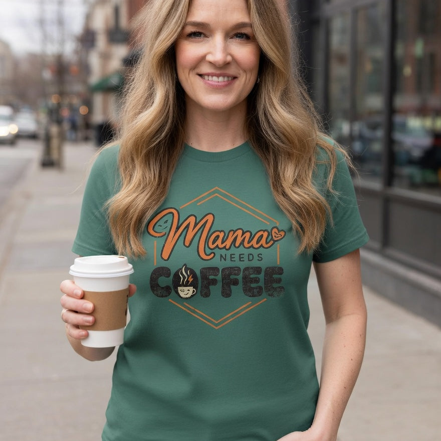 Distressed Print - Mama Needs Coffee - Vintage Wash Unisex Tee
