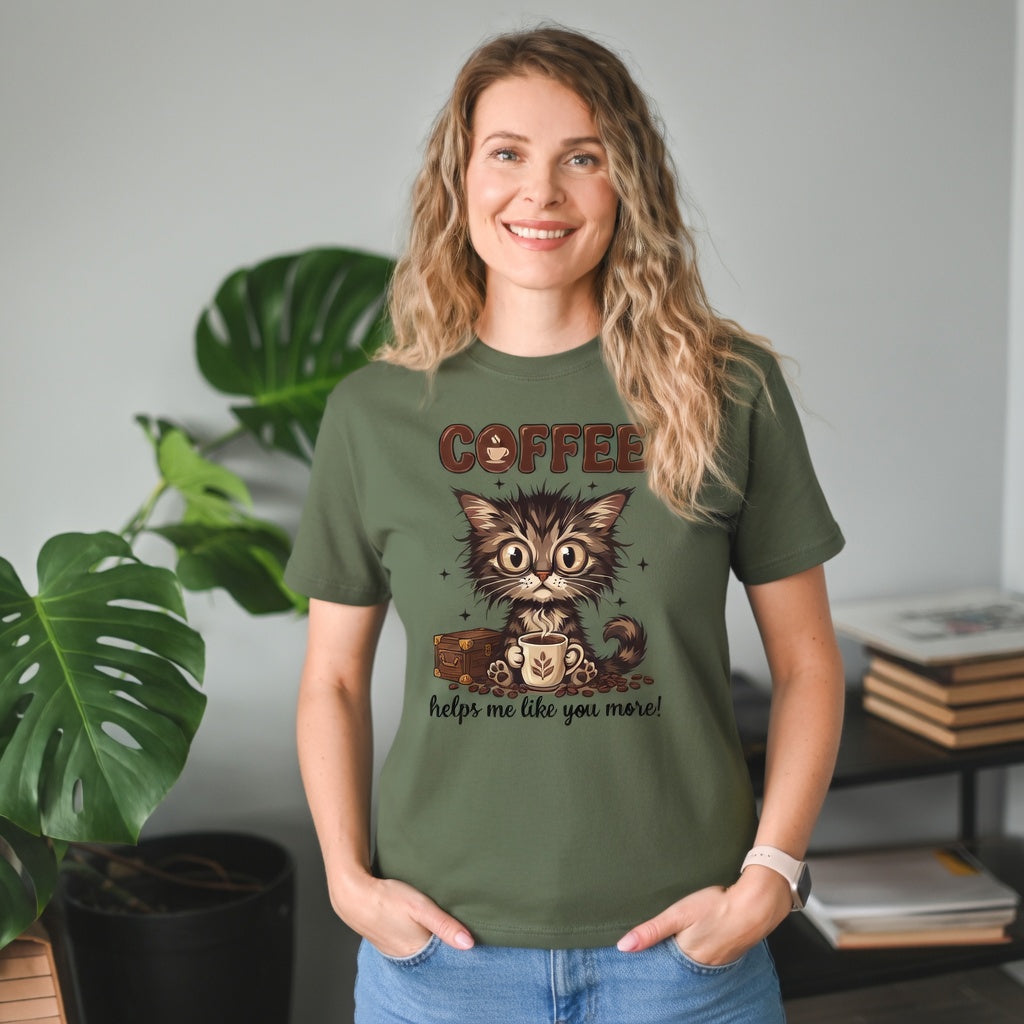 Funny Kitten Coffee Tee | Soft Relaxed Fit Unisex Cotton Shirt