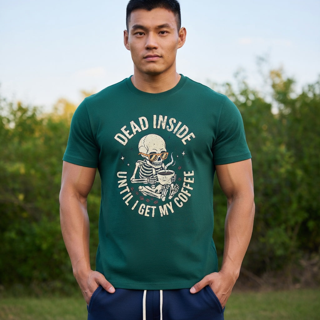 Distressed Print Dead Inside Until I Get My Coffee T-Shirt — Funny Skeleton Coffee Tee