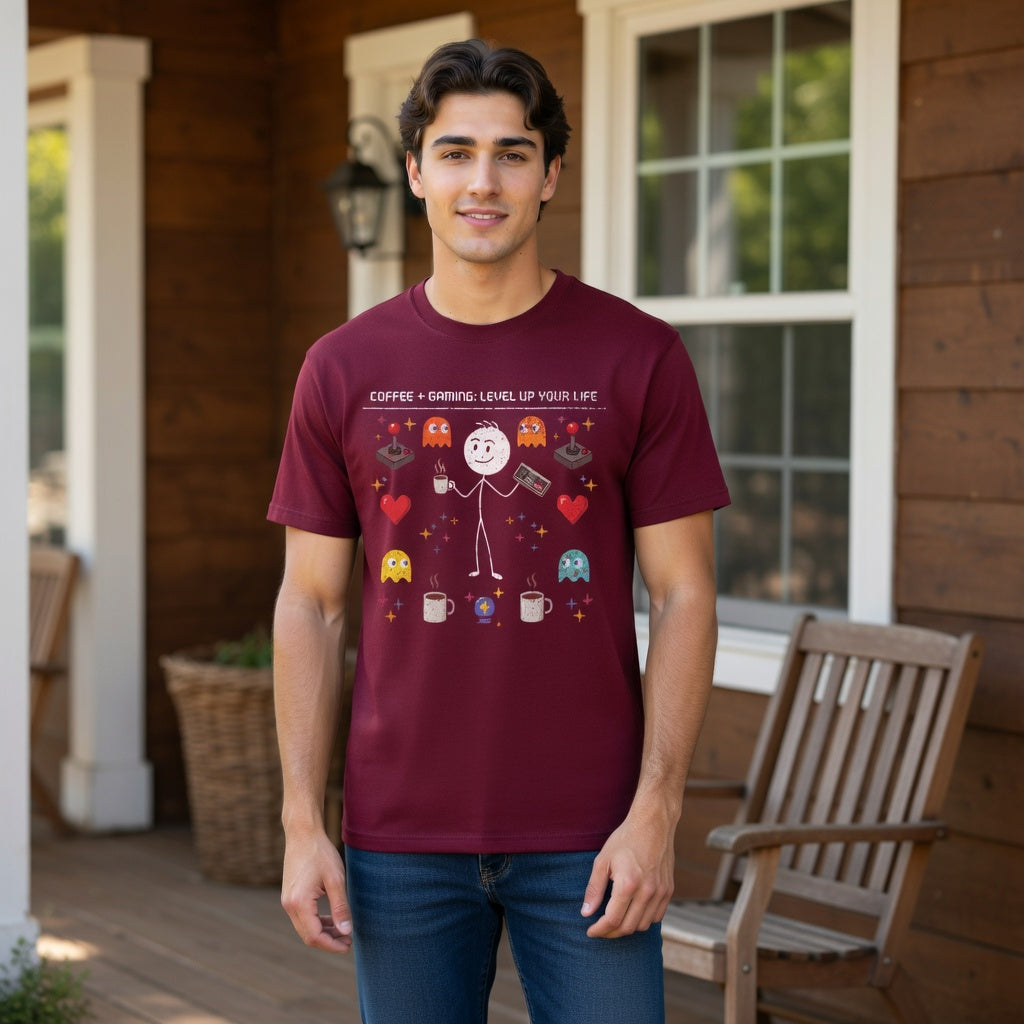 Distressed Print Gaming Stick Figure Unisex Cotton T-Shirt - Cute Gamers Graphic Tee