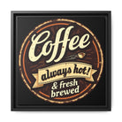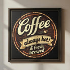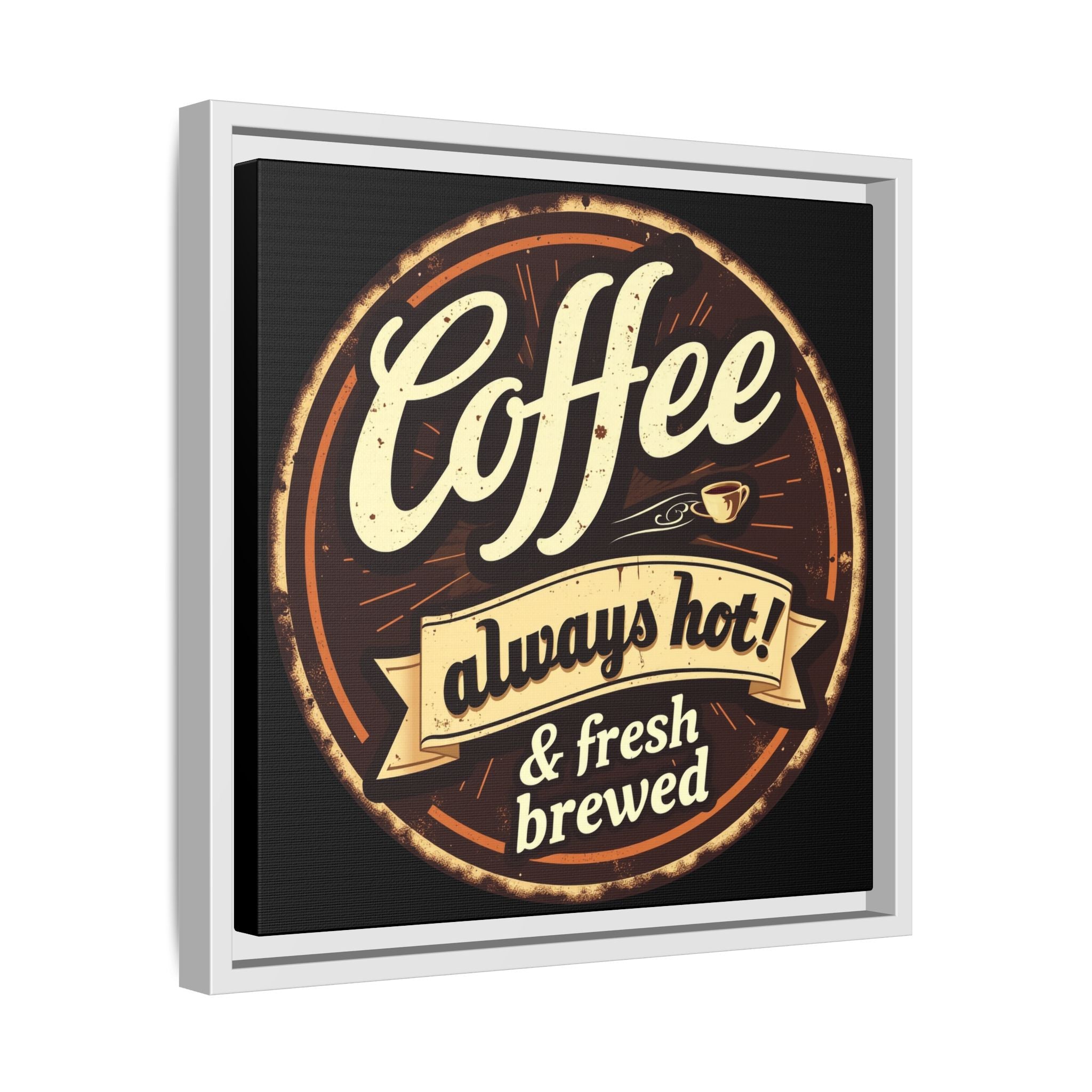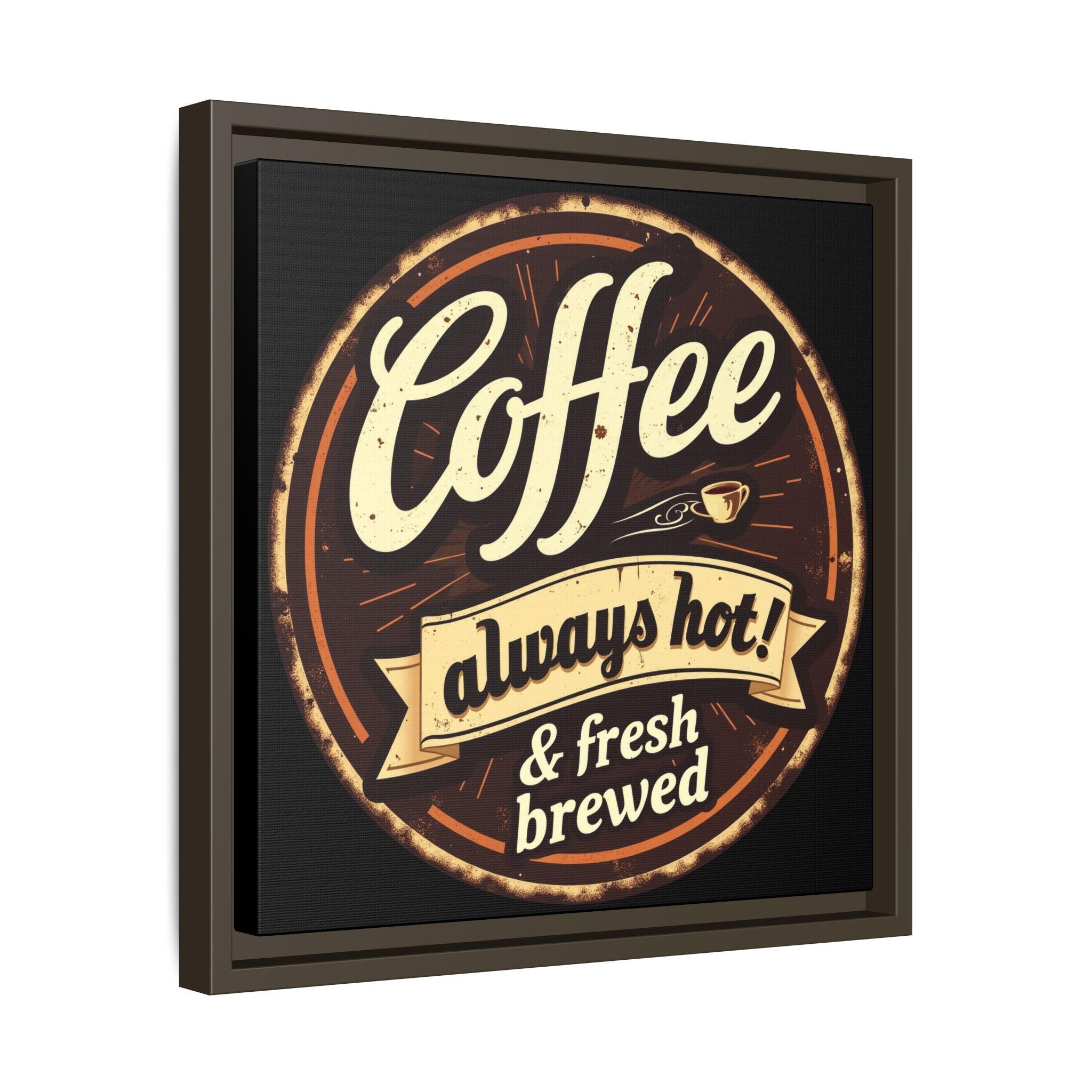 Coffee Always Hot! Vintage Framed Matte Canvas Wall Art | 14x14