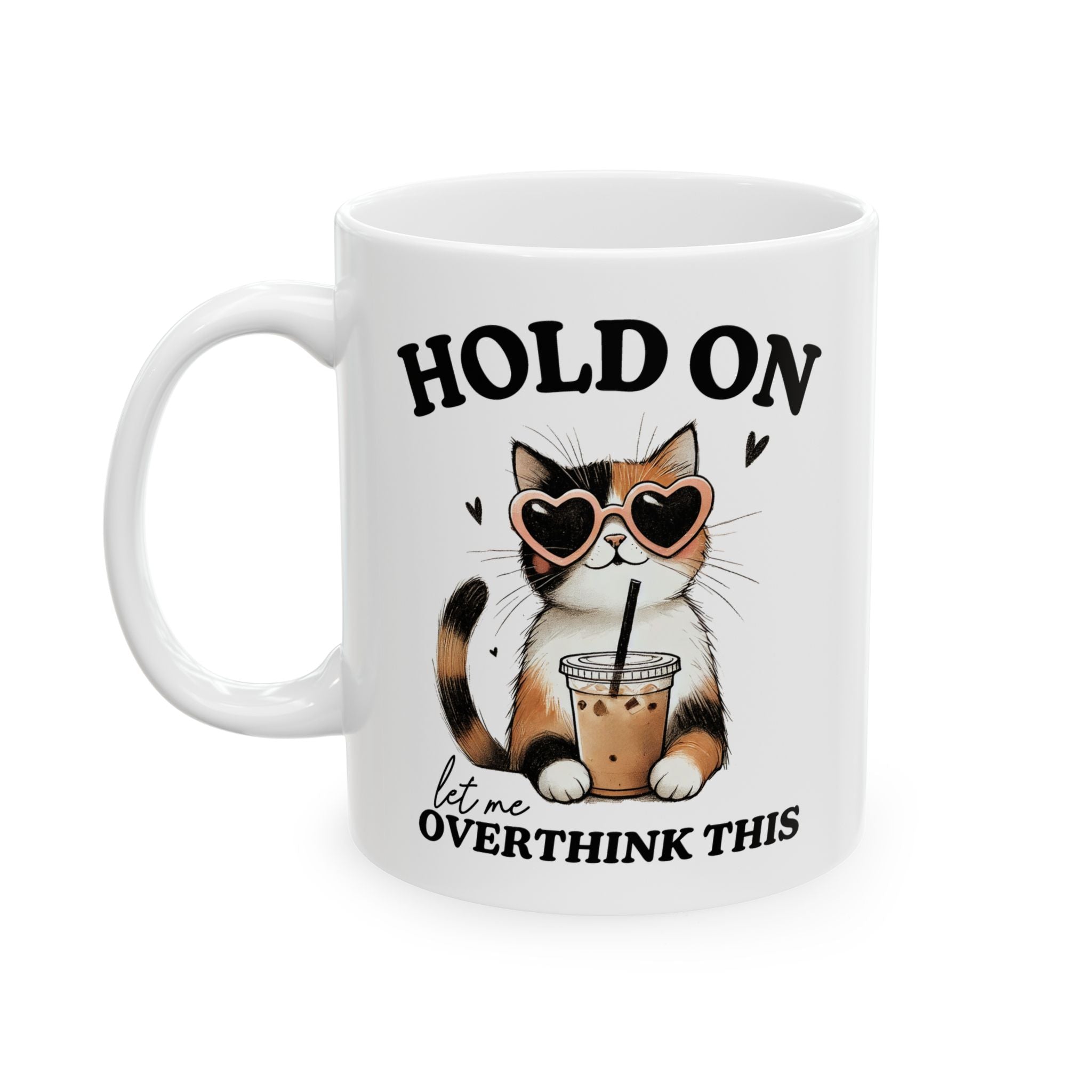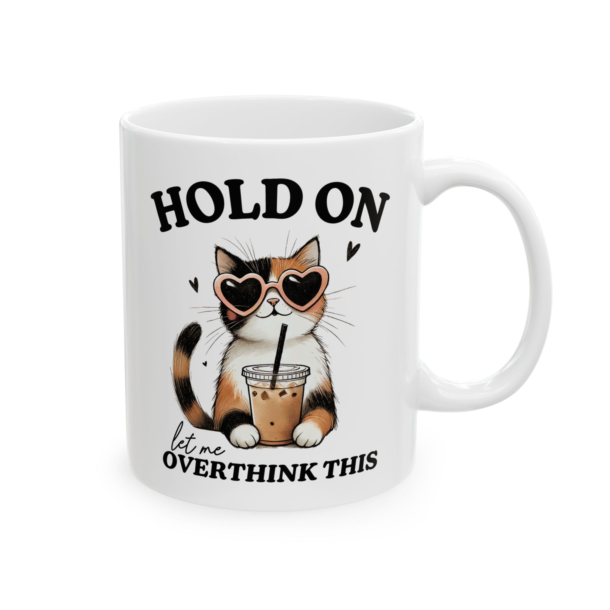 • Design: Features a funny cat with glasses and the relatable text "Hold On Let Me Overthink This."