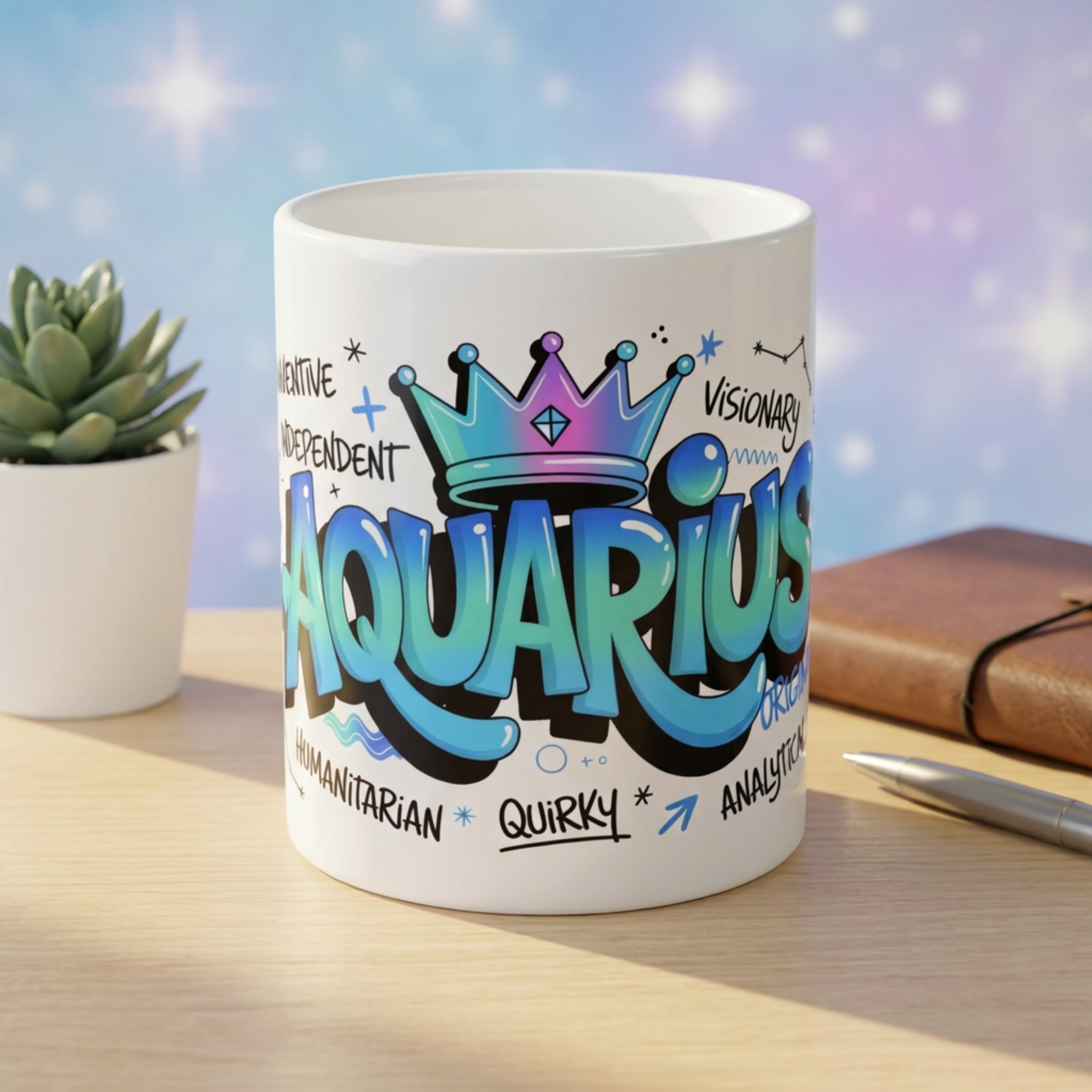 Brevity Brew Aquarius Zodiac Mug – Ceramic Horoscope Coffee Cup