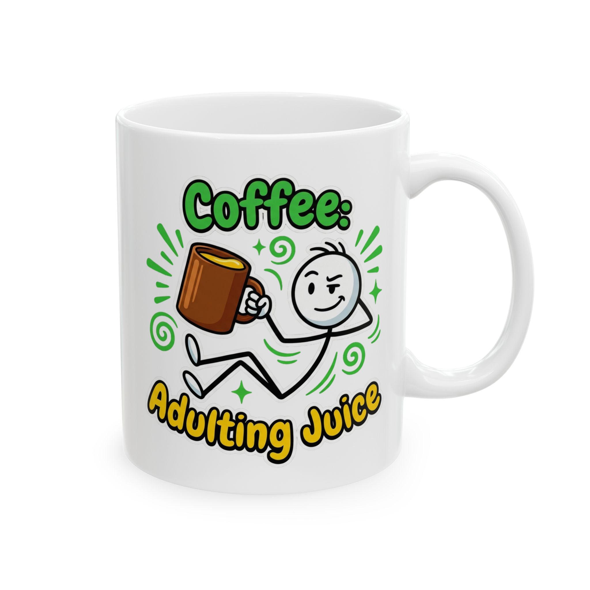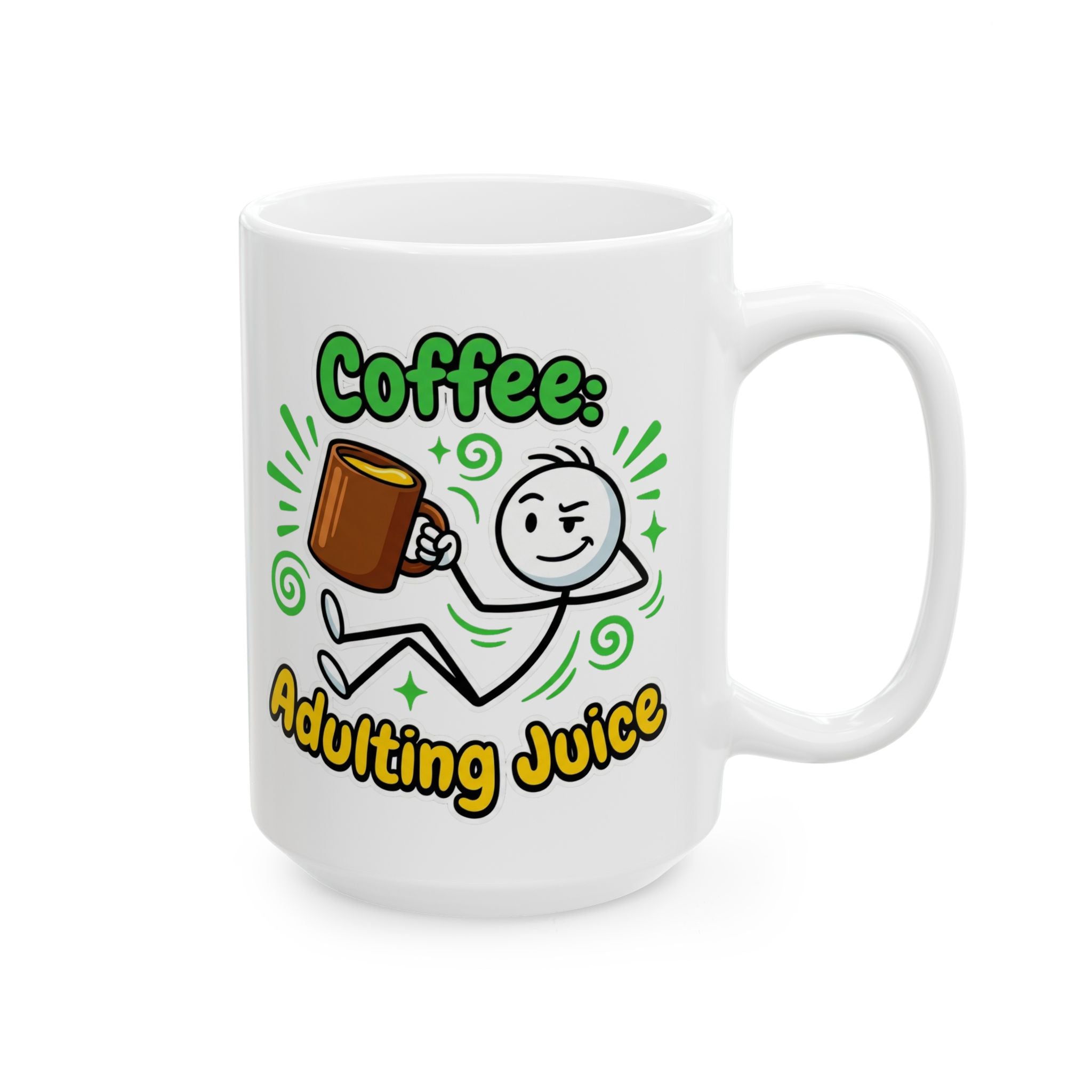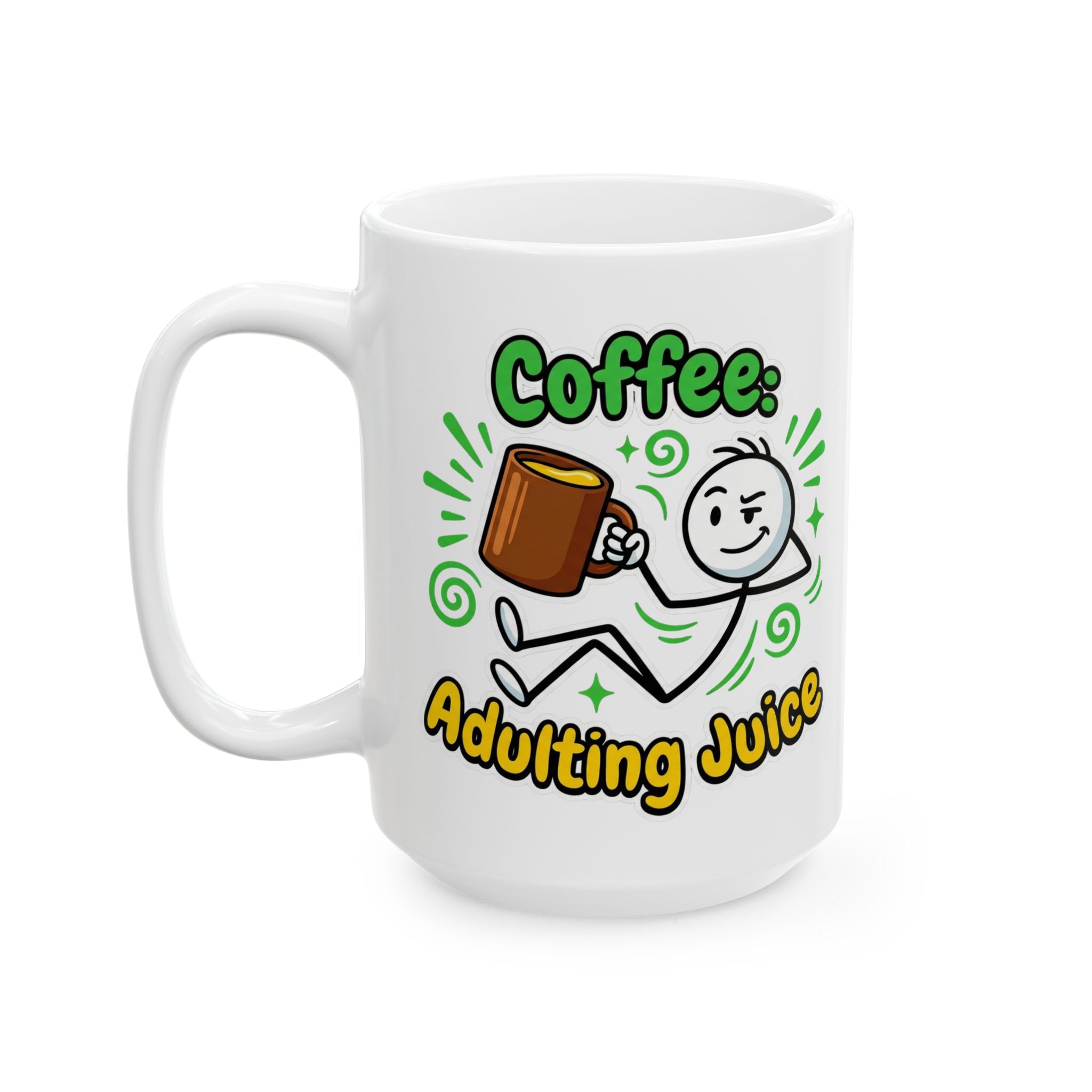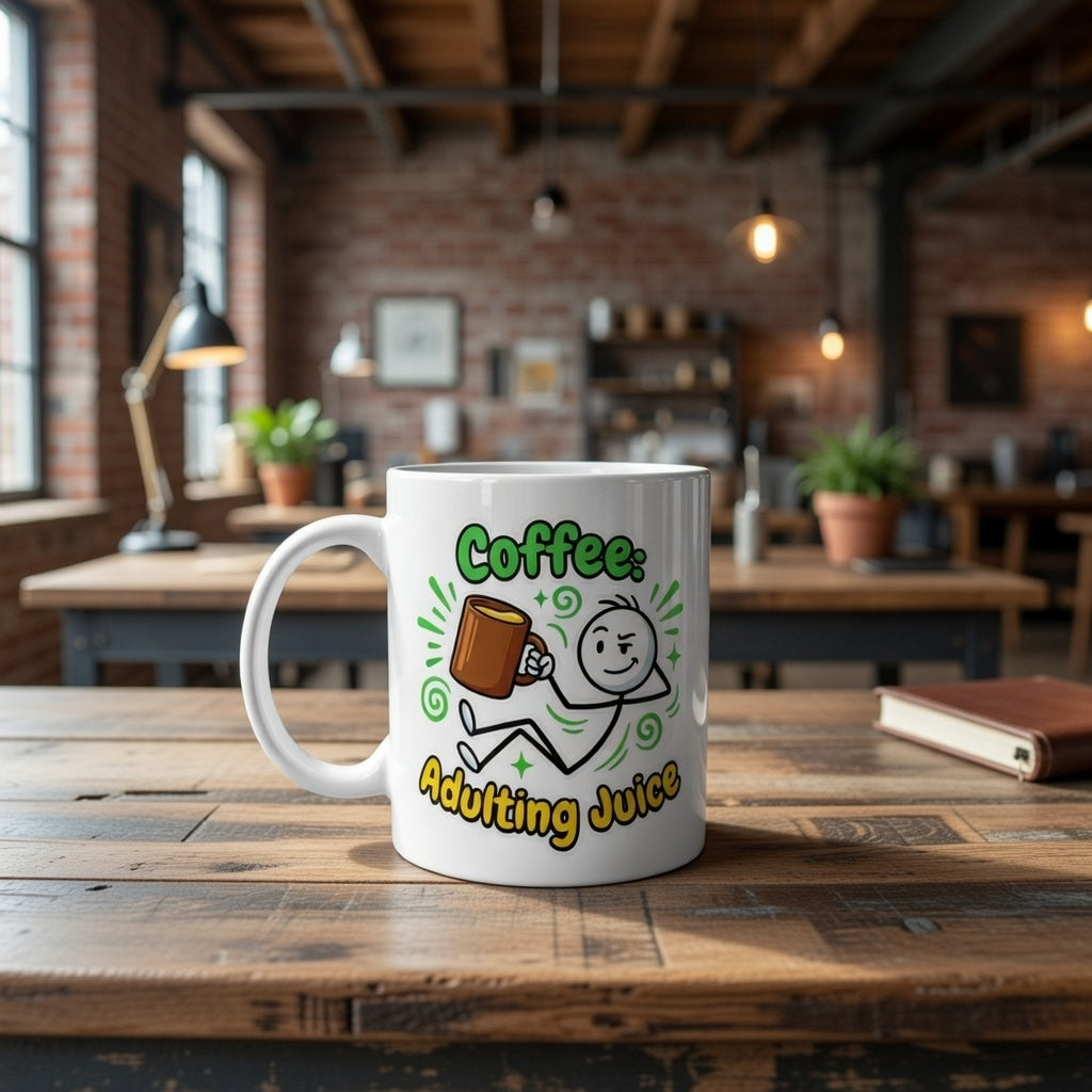 Coffee Adulting Juice White Ceramic Mug - Funny Coworker Gift (11oz, 15oz)