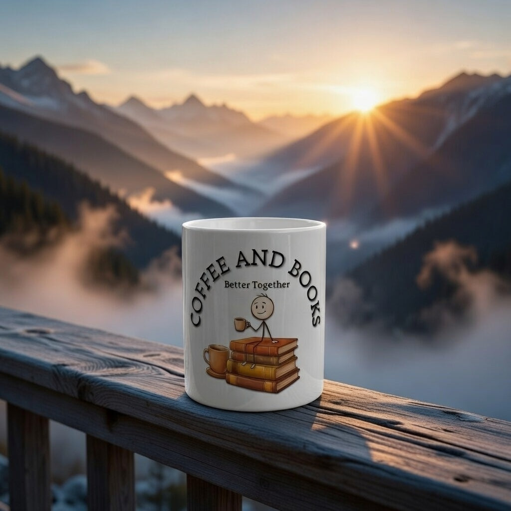 Celebrate your two favorite things with this "Coffee and Books Better Together" premium white ceramic mug. Designed for avid readers, bookworms, and caffeine enthusiasts, this mug features a cozy design that captures the simple joy of a morning brew and a great novel.