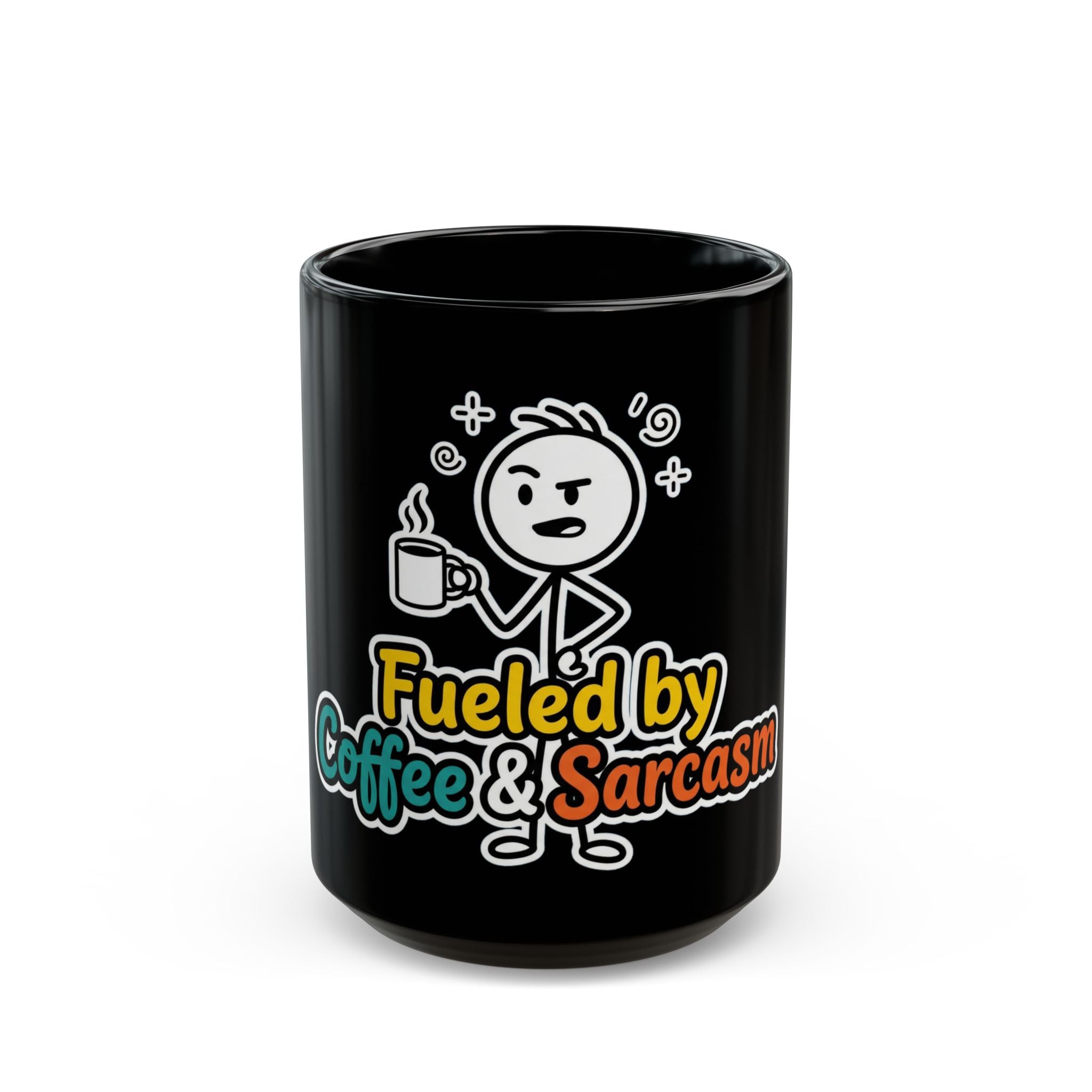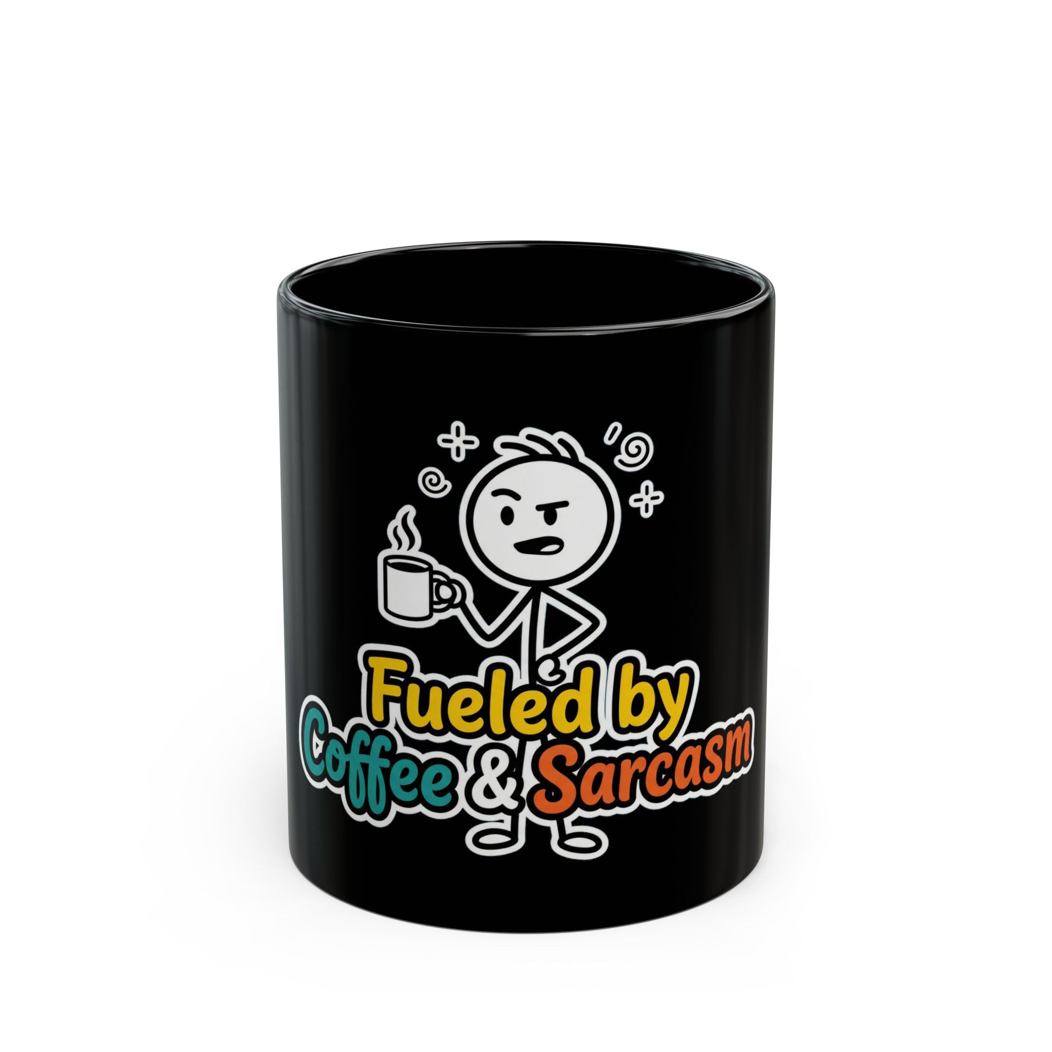 Start your morning with a dose of attitude with this "Fueled by Coffee and Sarcasm" premium black ceramic mug. Designed for the unapologetically witty, caffeine-dependent, and office pranksters, this mug features a bold design that pops perfectly against the deep black glaze.