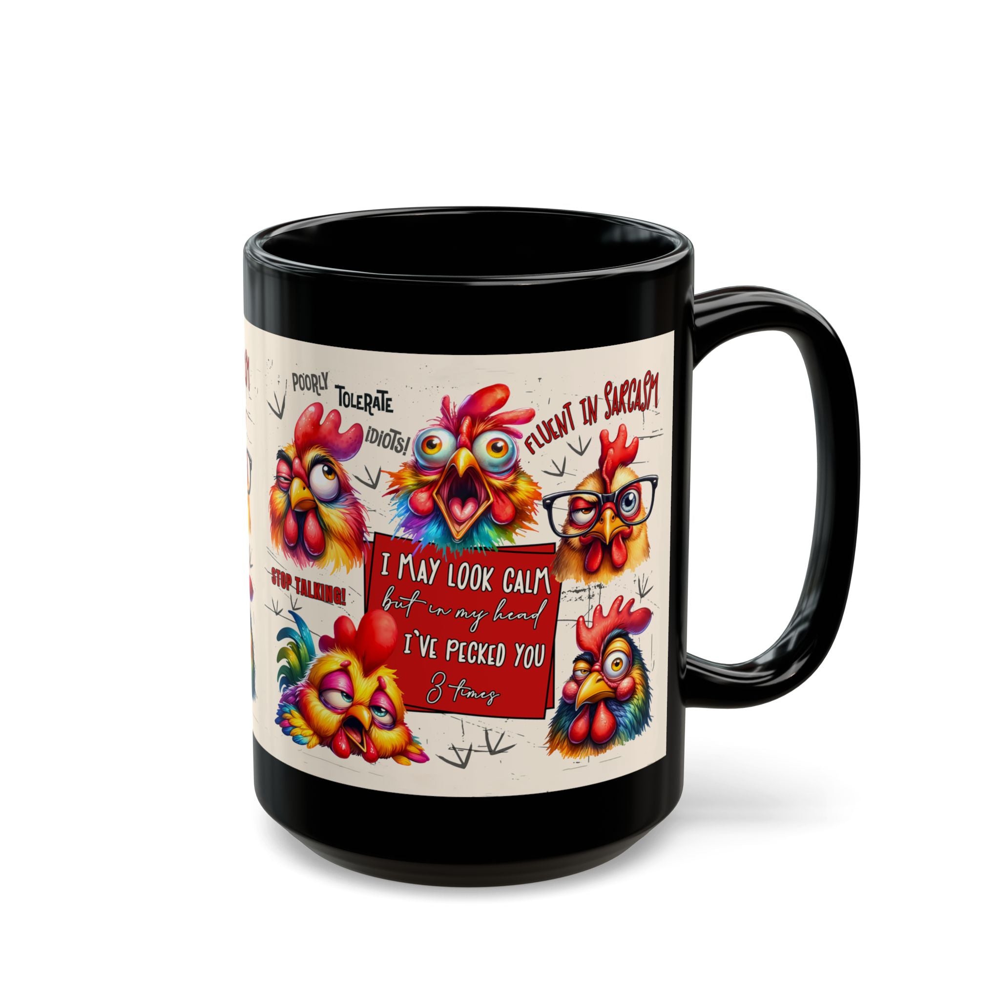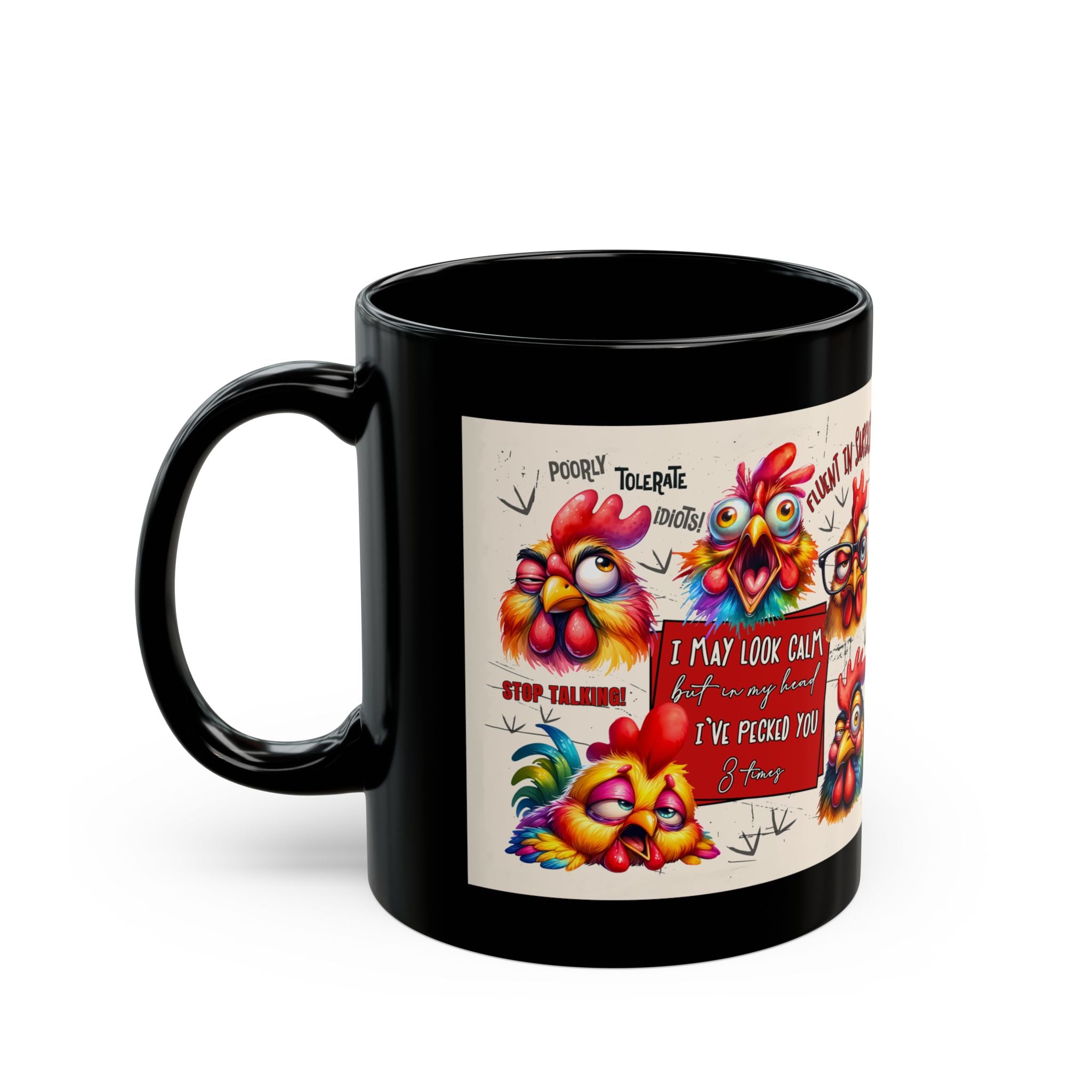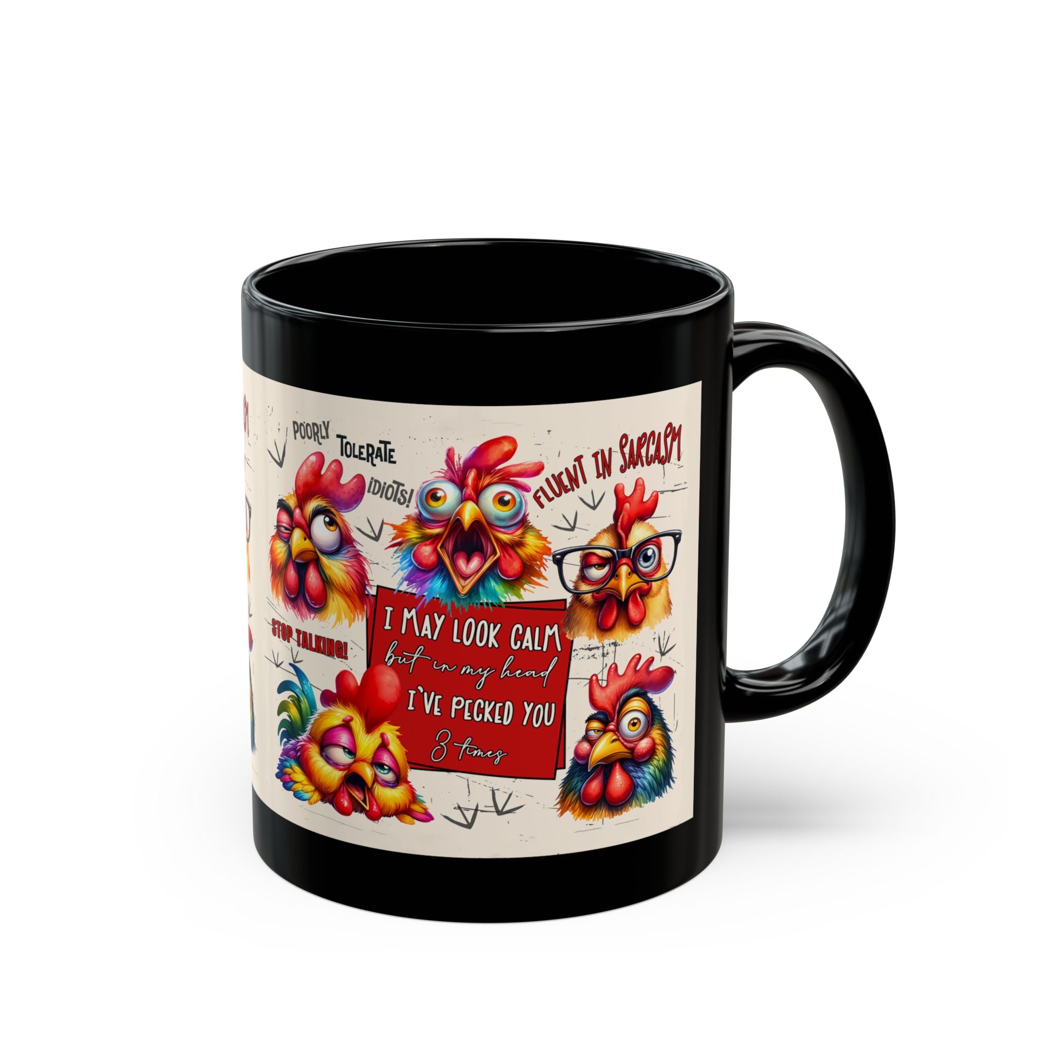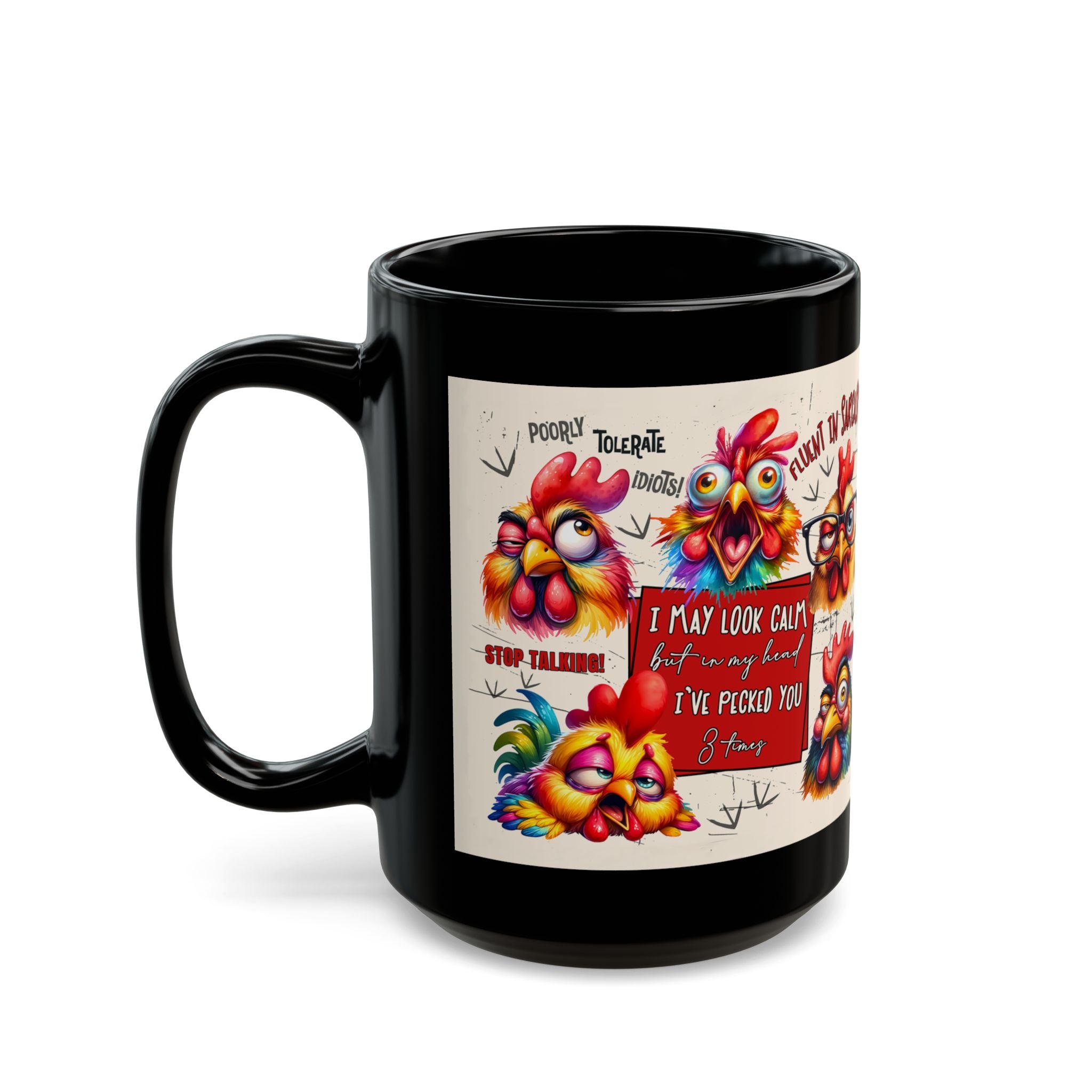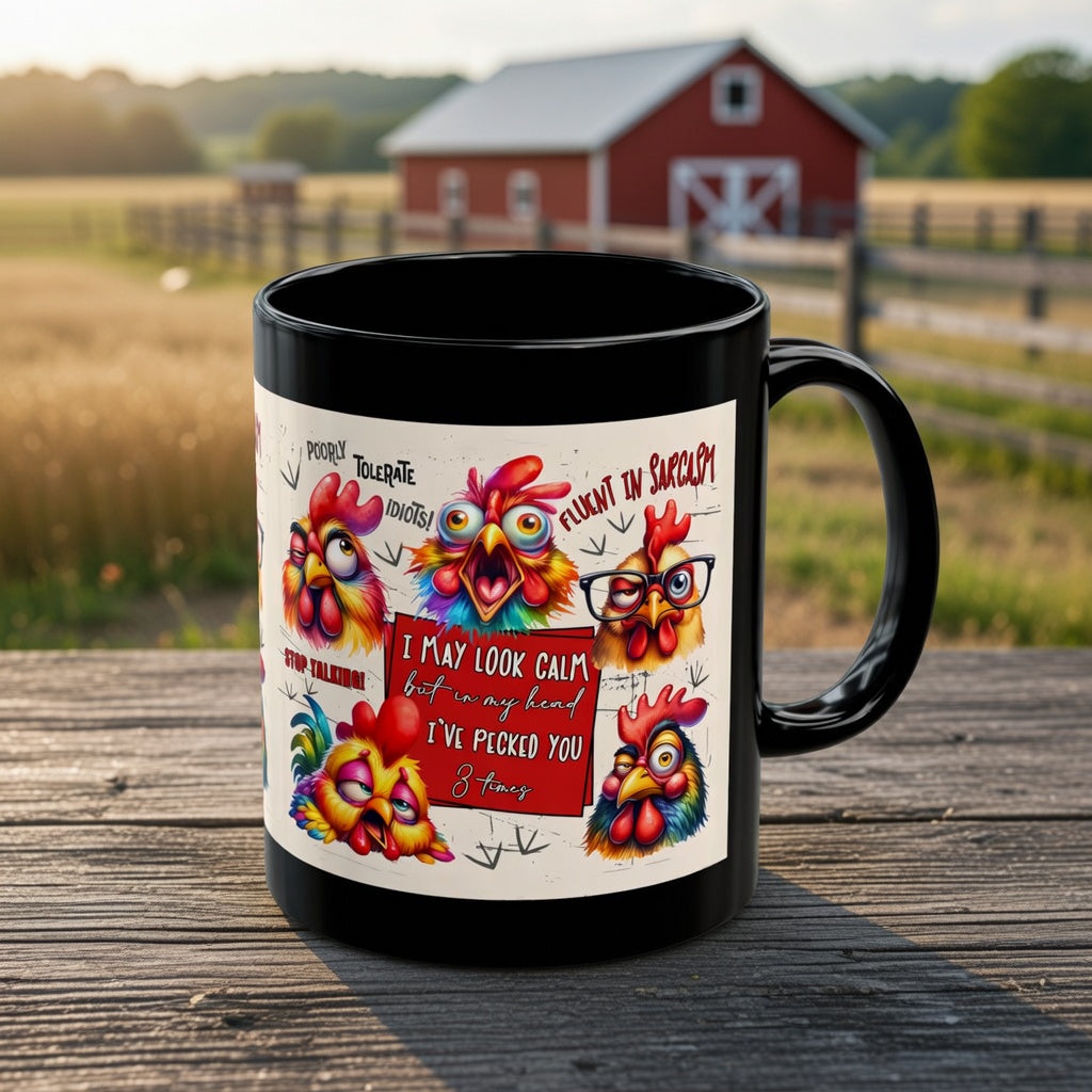 Brevity Brew Funny Chicken Black Ceramic Mug – Sarcastic Coffee Cup