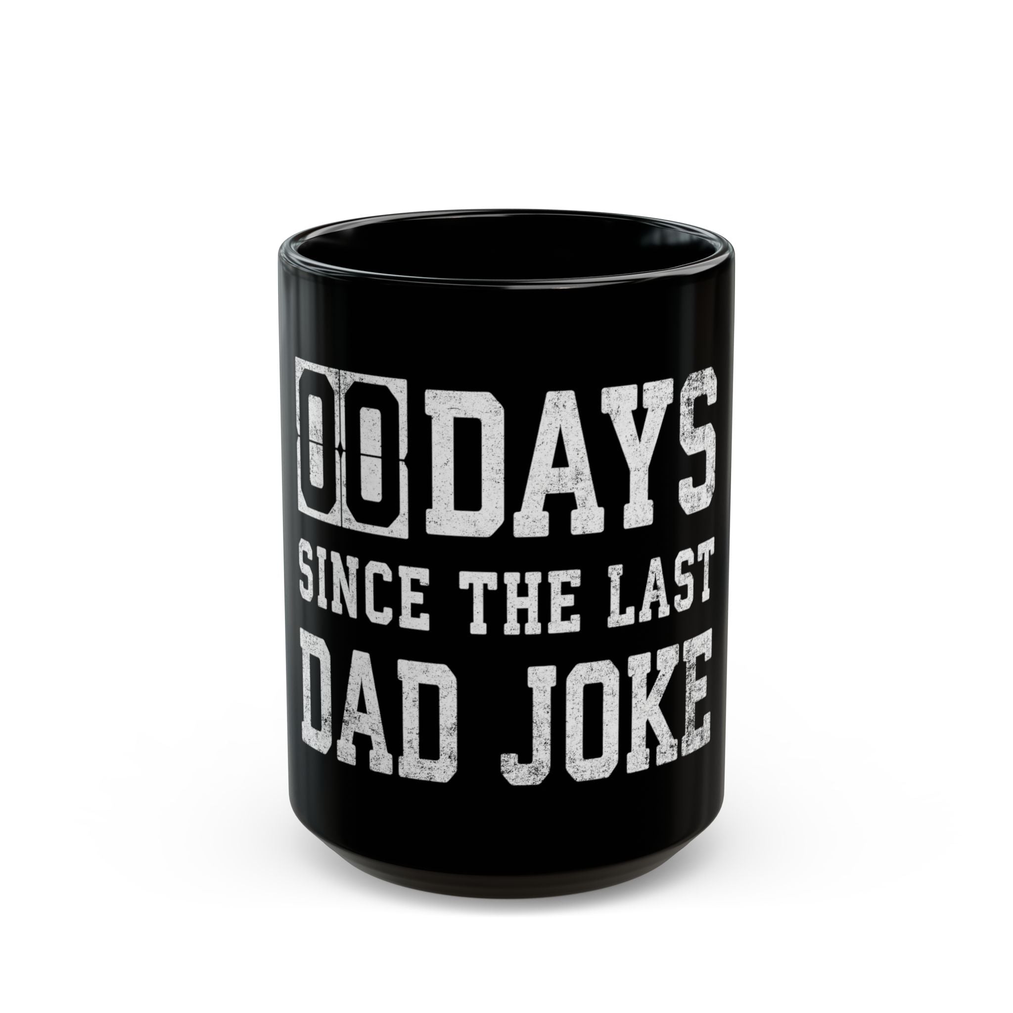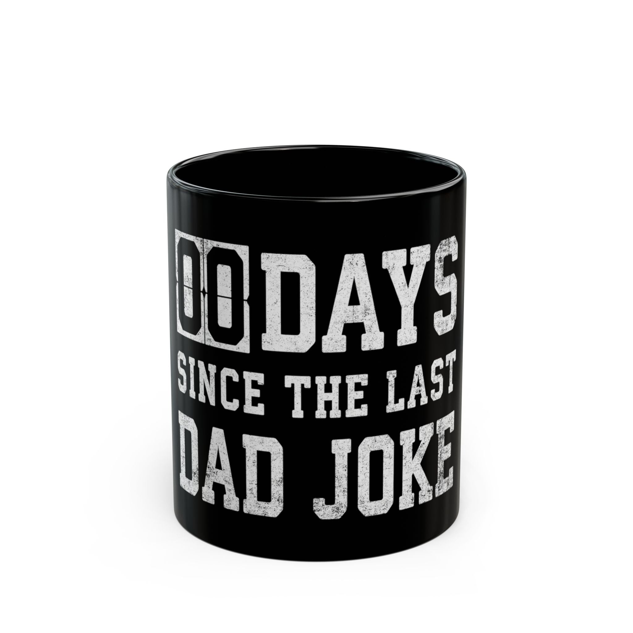 Time to reset the counter! This hilarious "00 Days Since The Last Dad Joke" coffee mug is the ultimate gag gift for the pun-loving dad, husband, or office jokester in your life. Featuring bold, distressed white lettering against a sleek black background, it cleverly mimics a workplace safety sign—a funny everyday reminder that a terrible (but great) dad joke is always imminent.