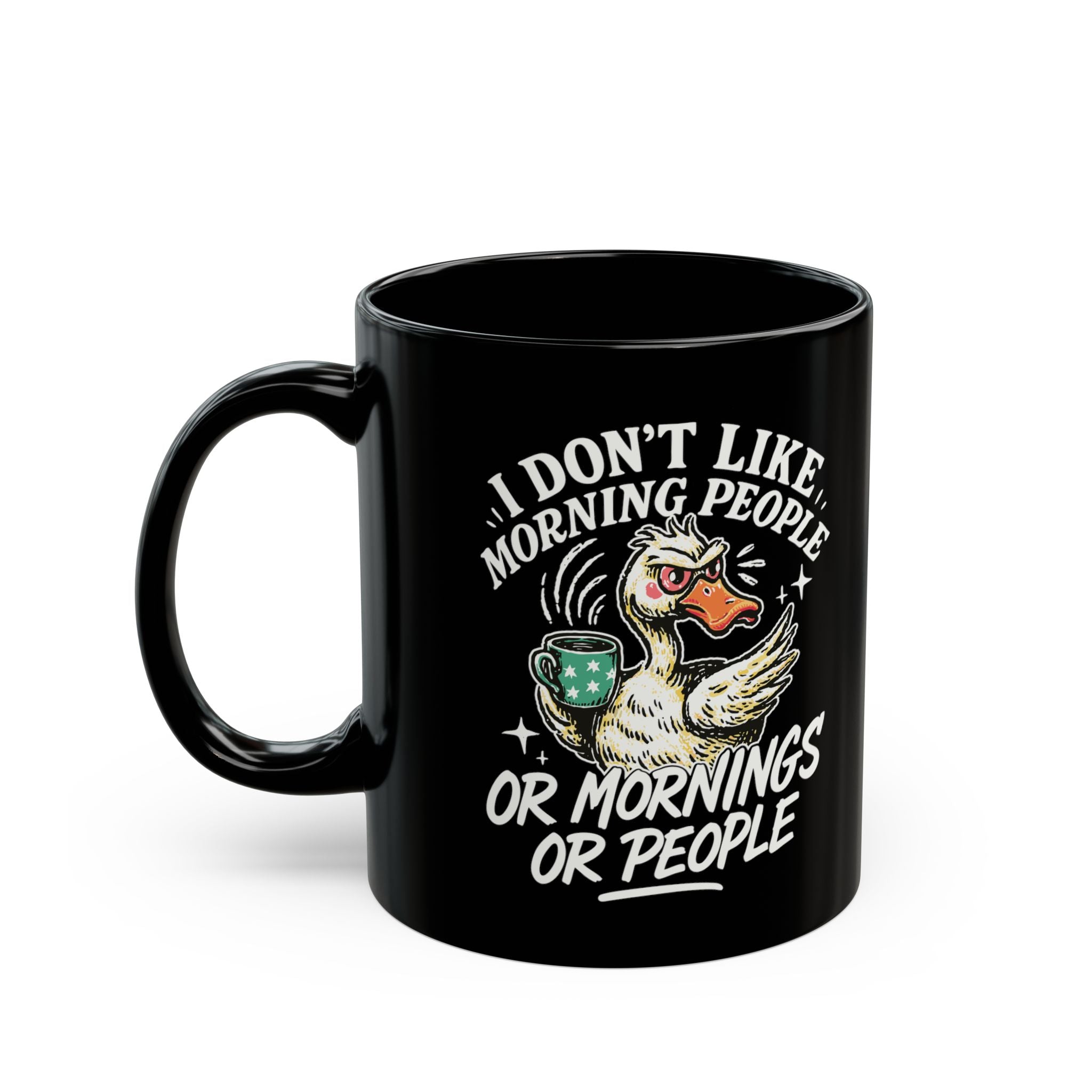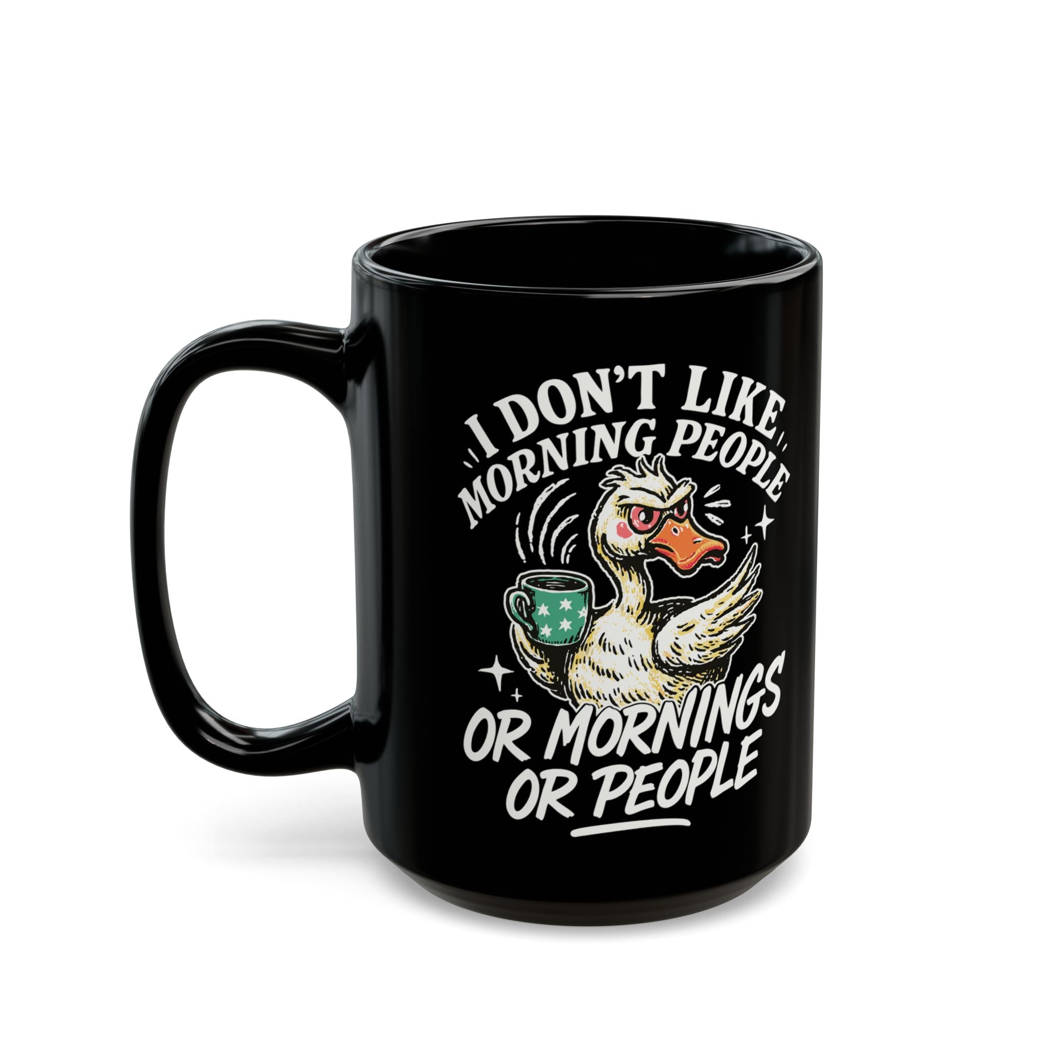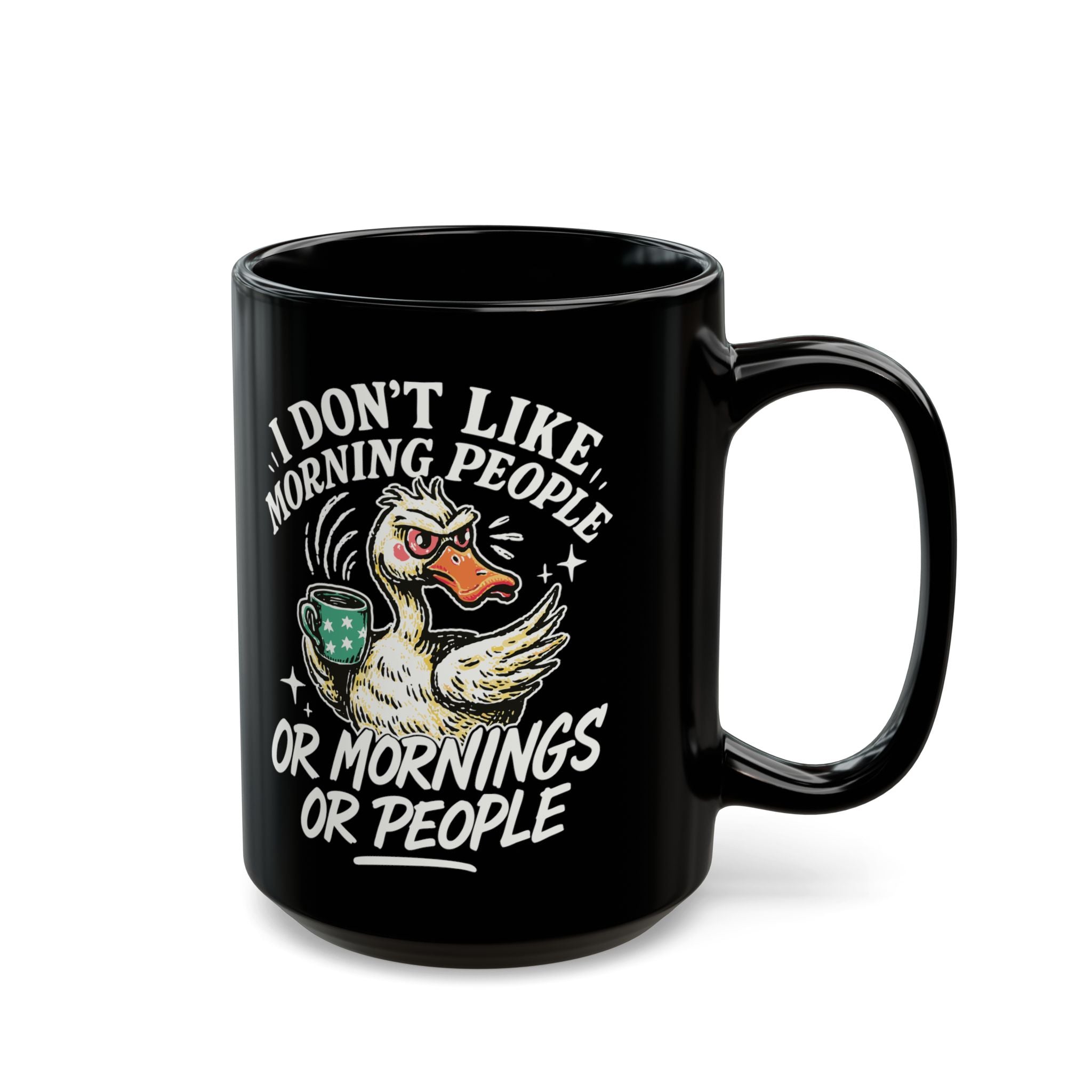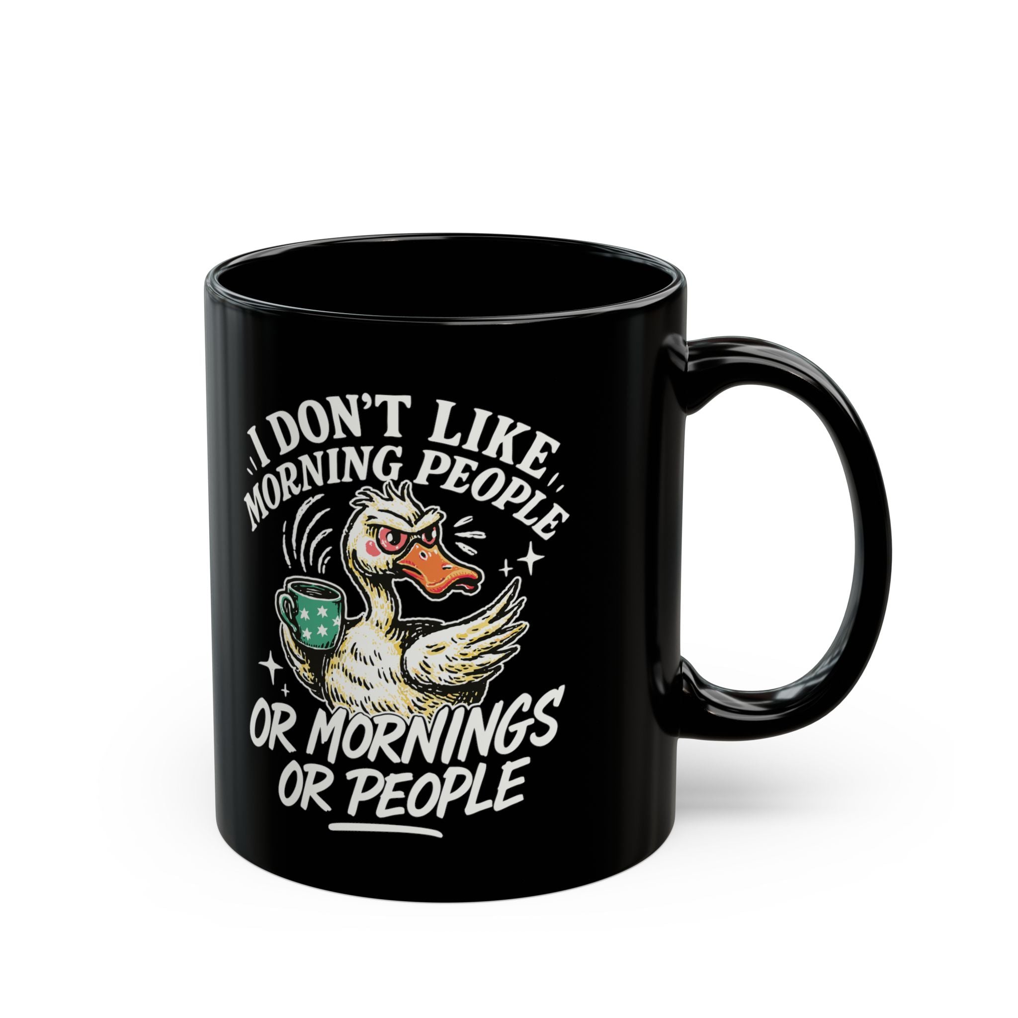 Funny Grumpy Duck I Dont Like Mornings Black Ceramic Coffee Mug