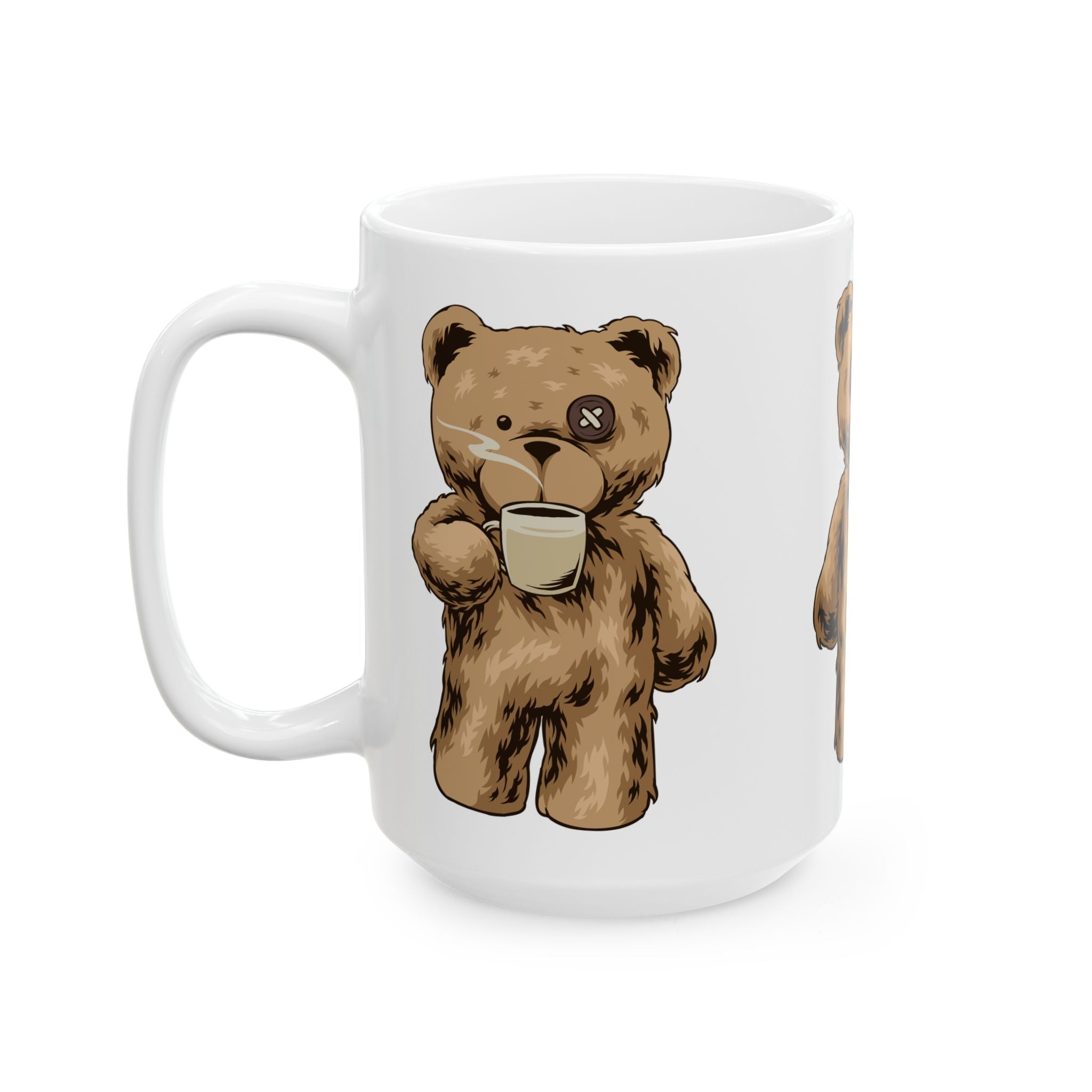 Brevity Brew Teddy Bear Ceramic Coffee Mug – Cute Plush Bear Design, 11oz/15oz