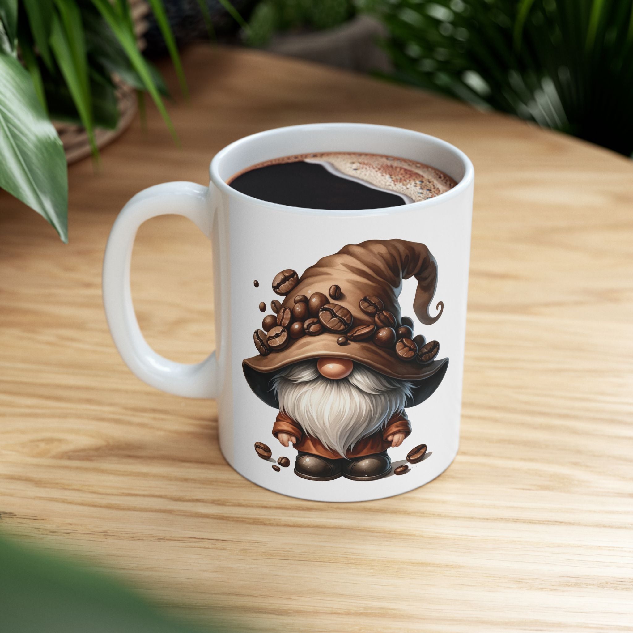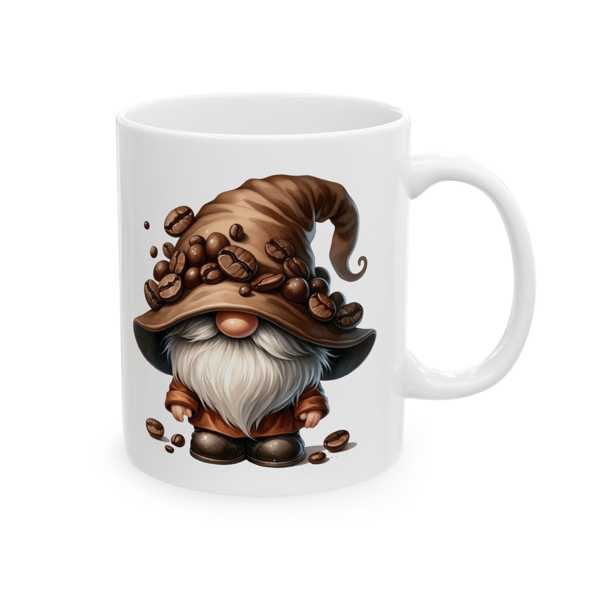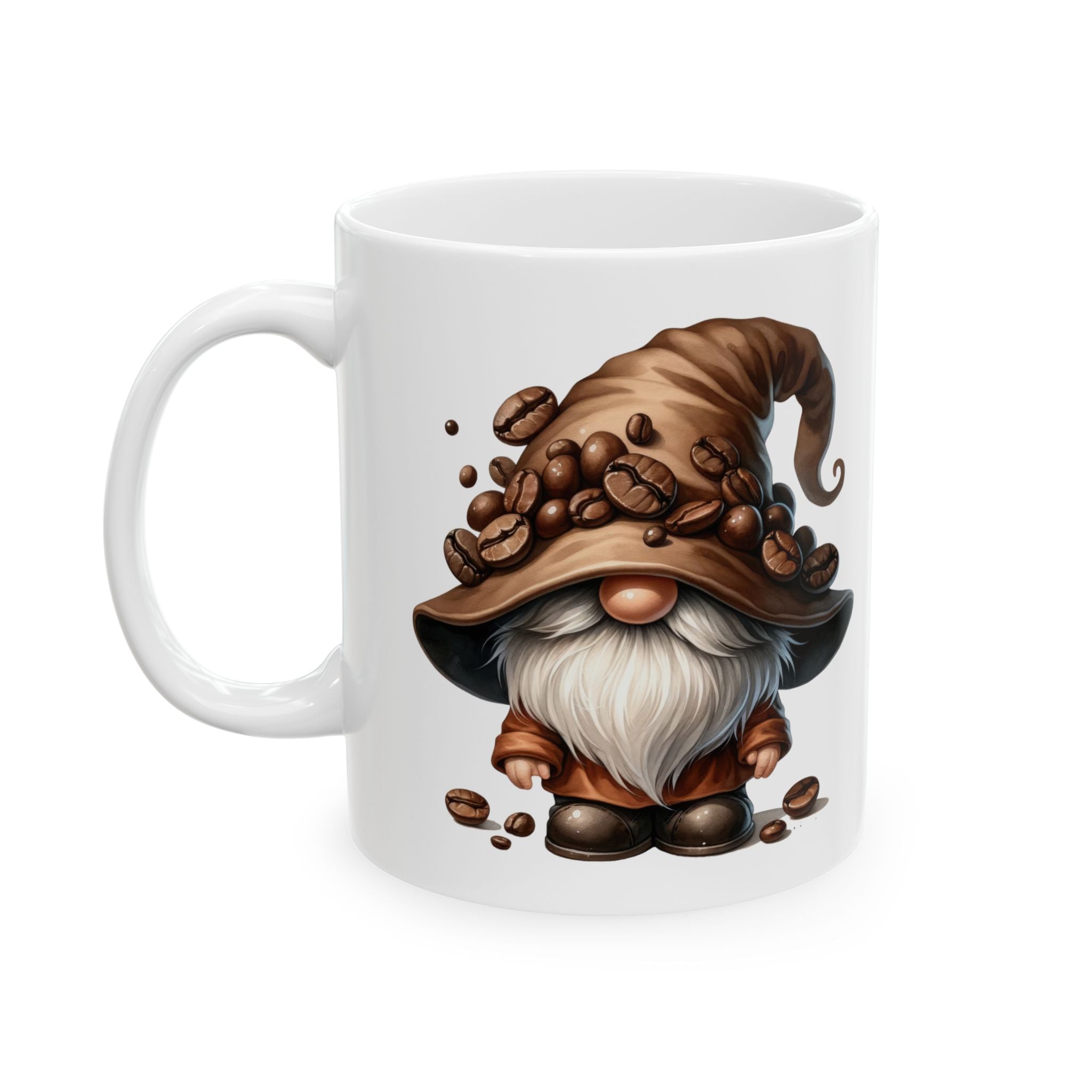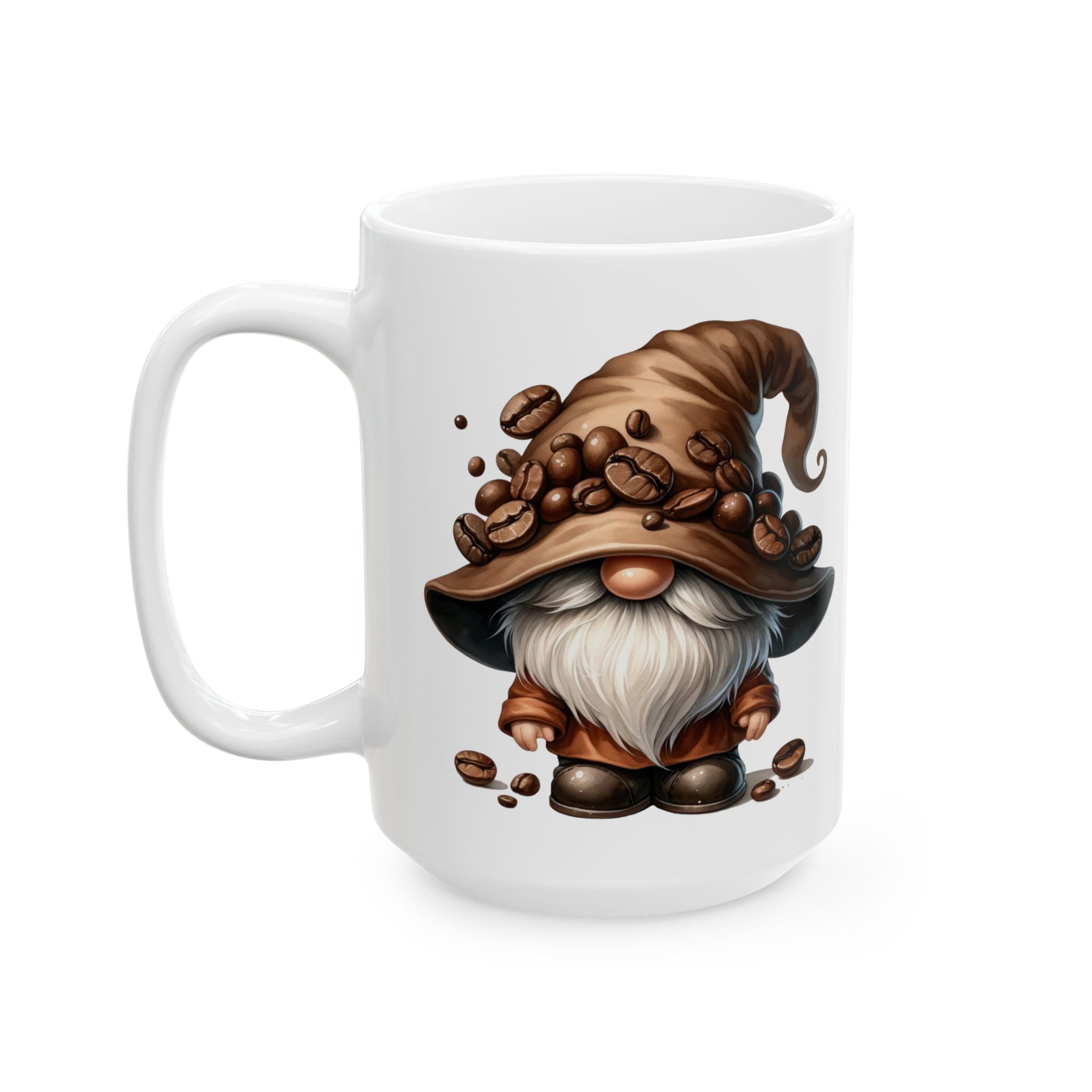 Brevity Brew Coffee Gnome Ceramic Mug – Whimsical White Cup, 11oz & 15oz
