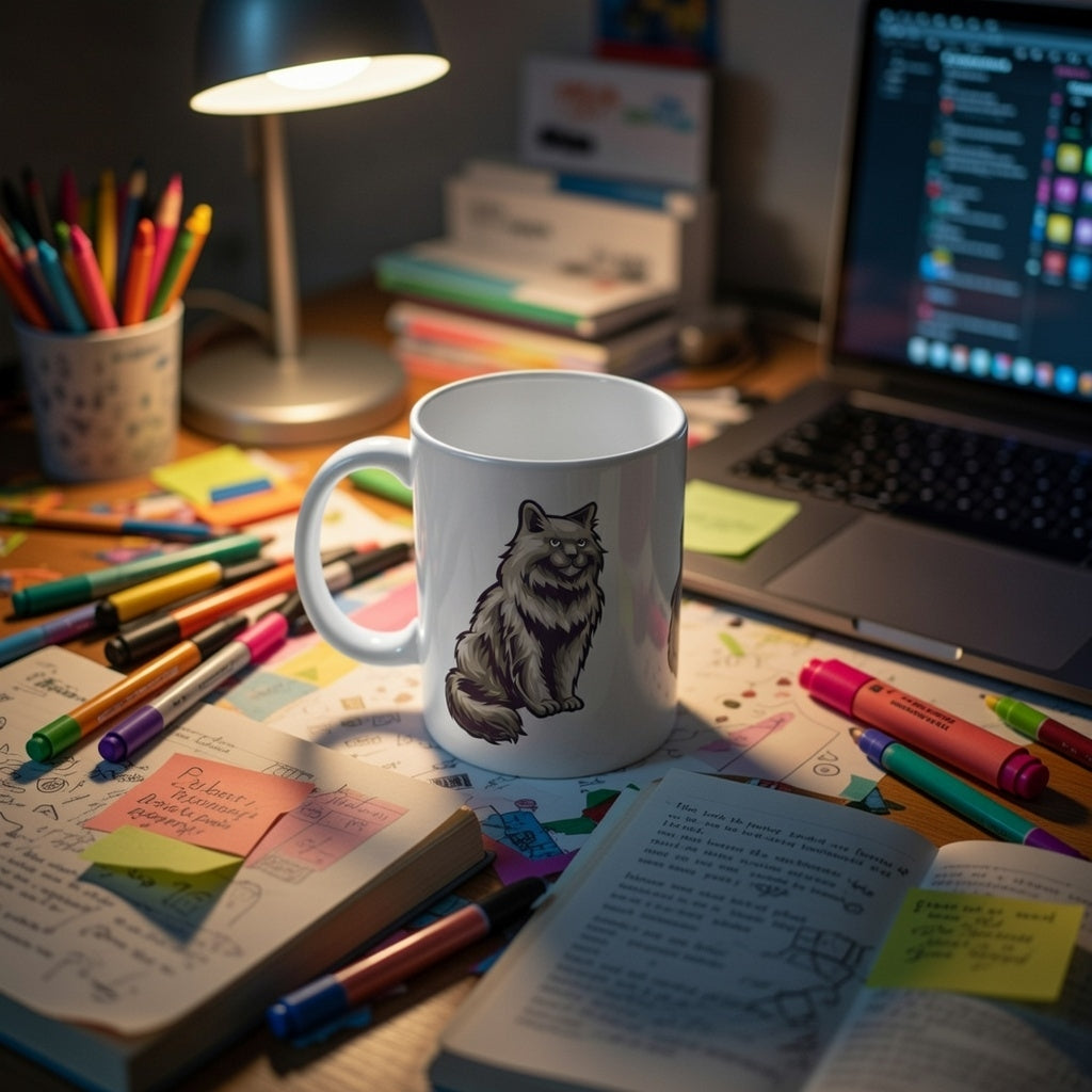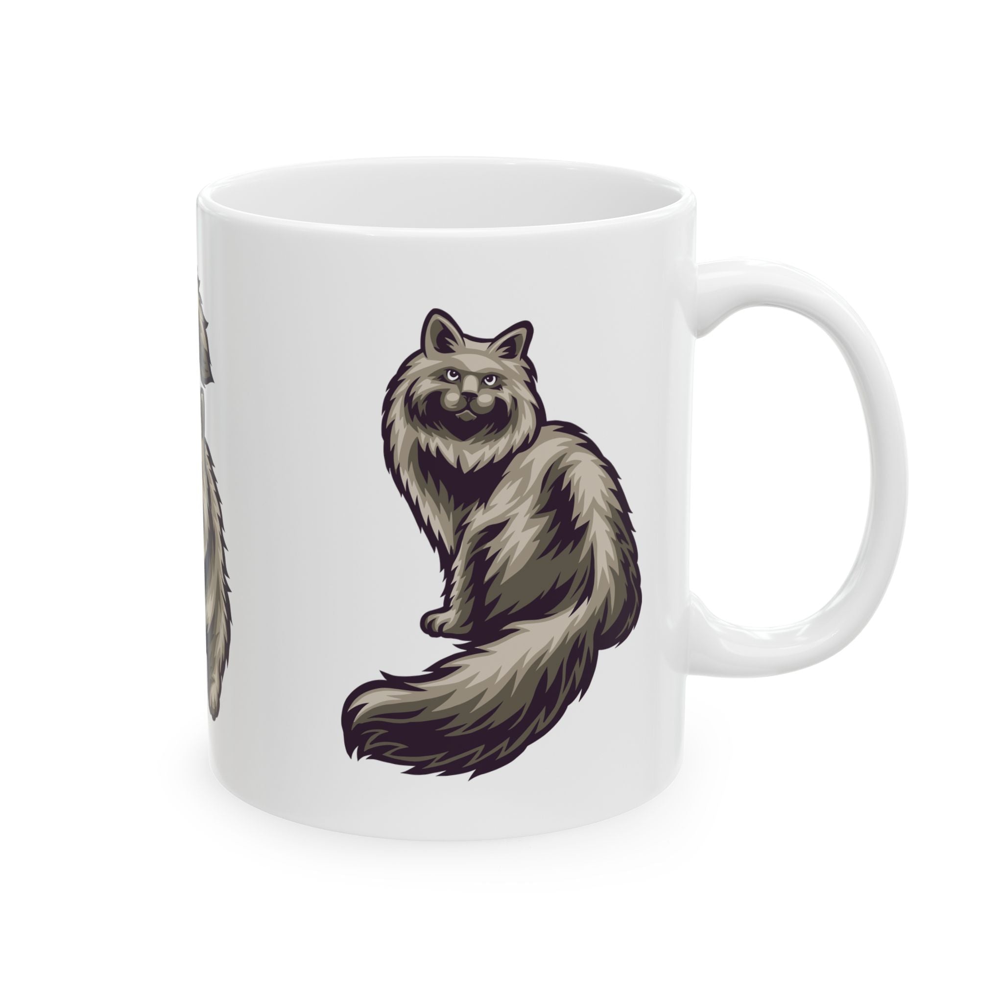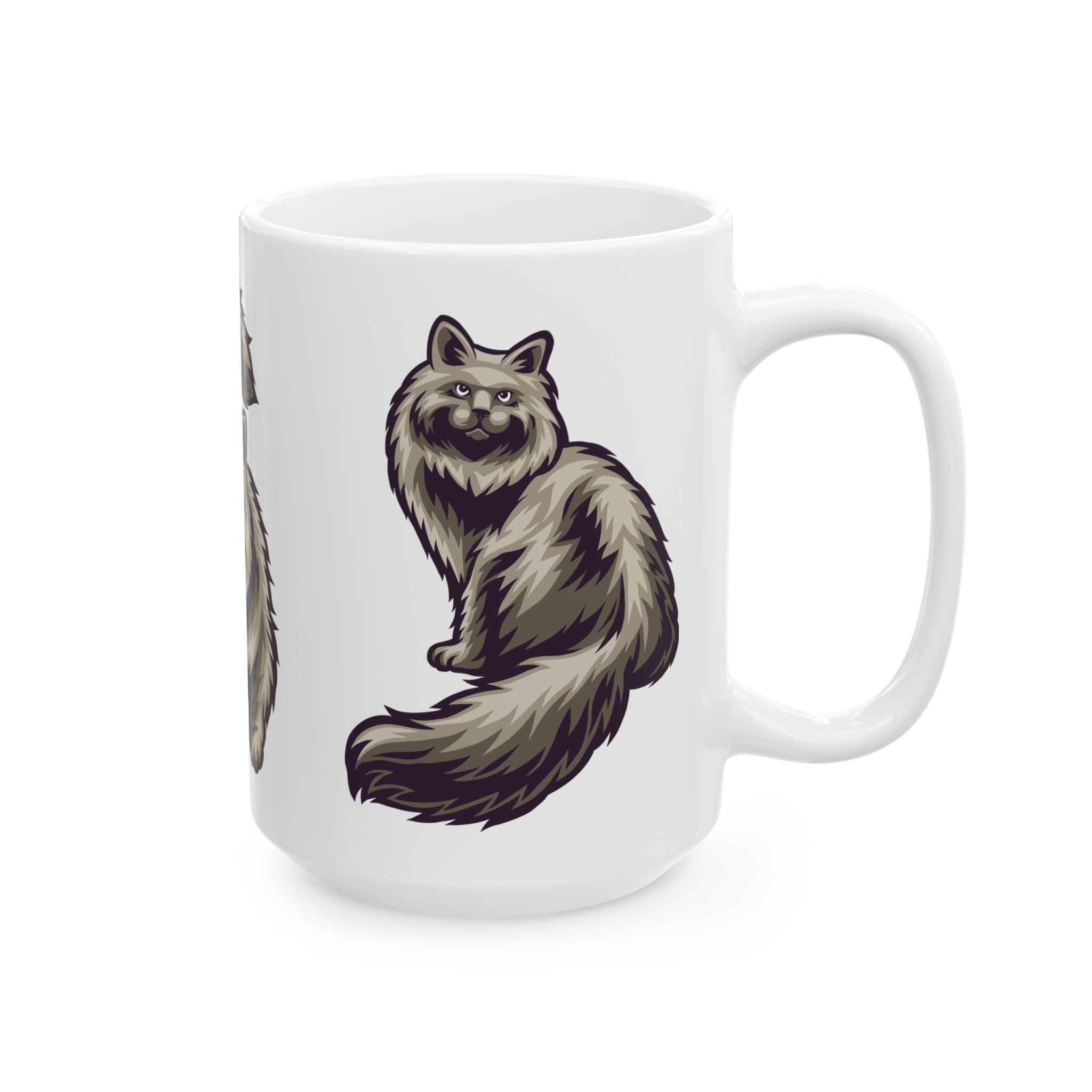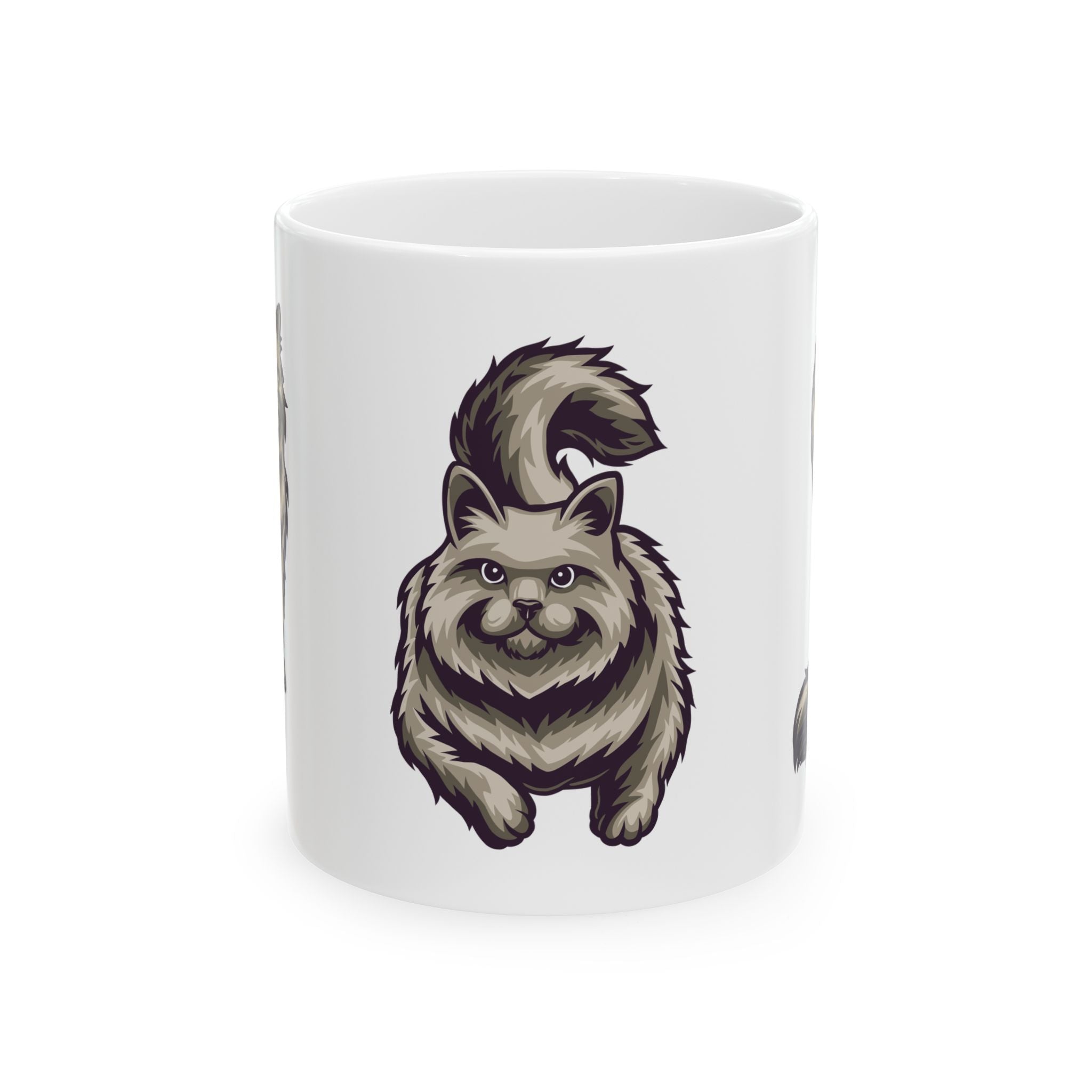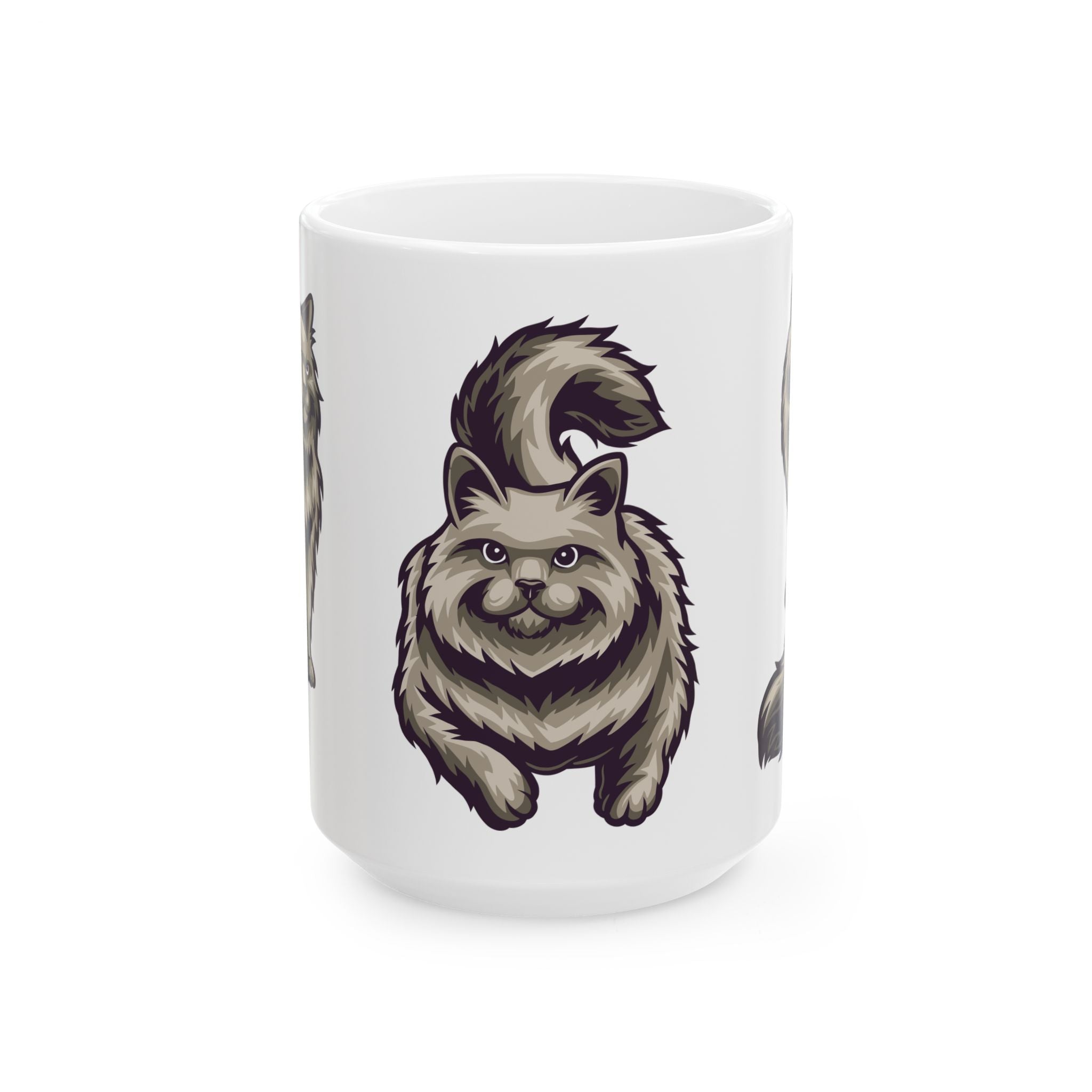 Fluffy Cat Ceramic Mug | Cute White Coffee Cup for Cat Lovers - 11oz/15oz