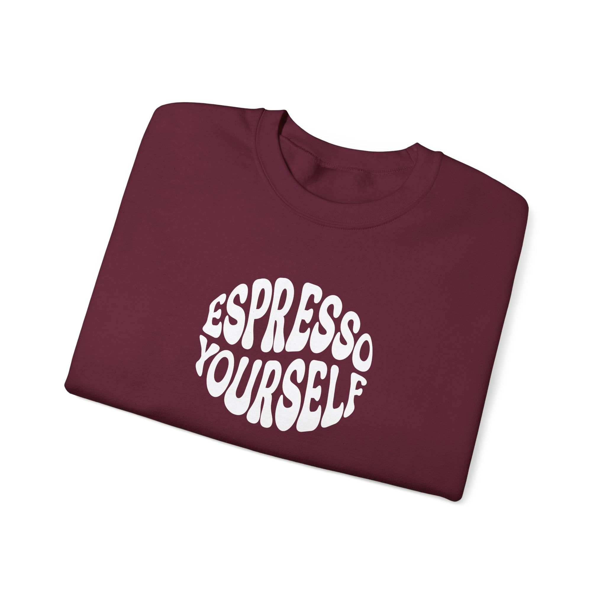 Start your morning with a smile in our "Espresso Yourself" Crewneck. Featuring a bold, retro-inspired graphic print, this sweatshirt is the perfect blend of cozy comfort and barista humor. The high-quality ink is printed directly into the fabric for a soft, vintage feel that won't crack or peel like cheap vinyl.