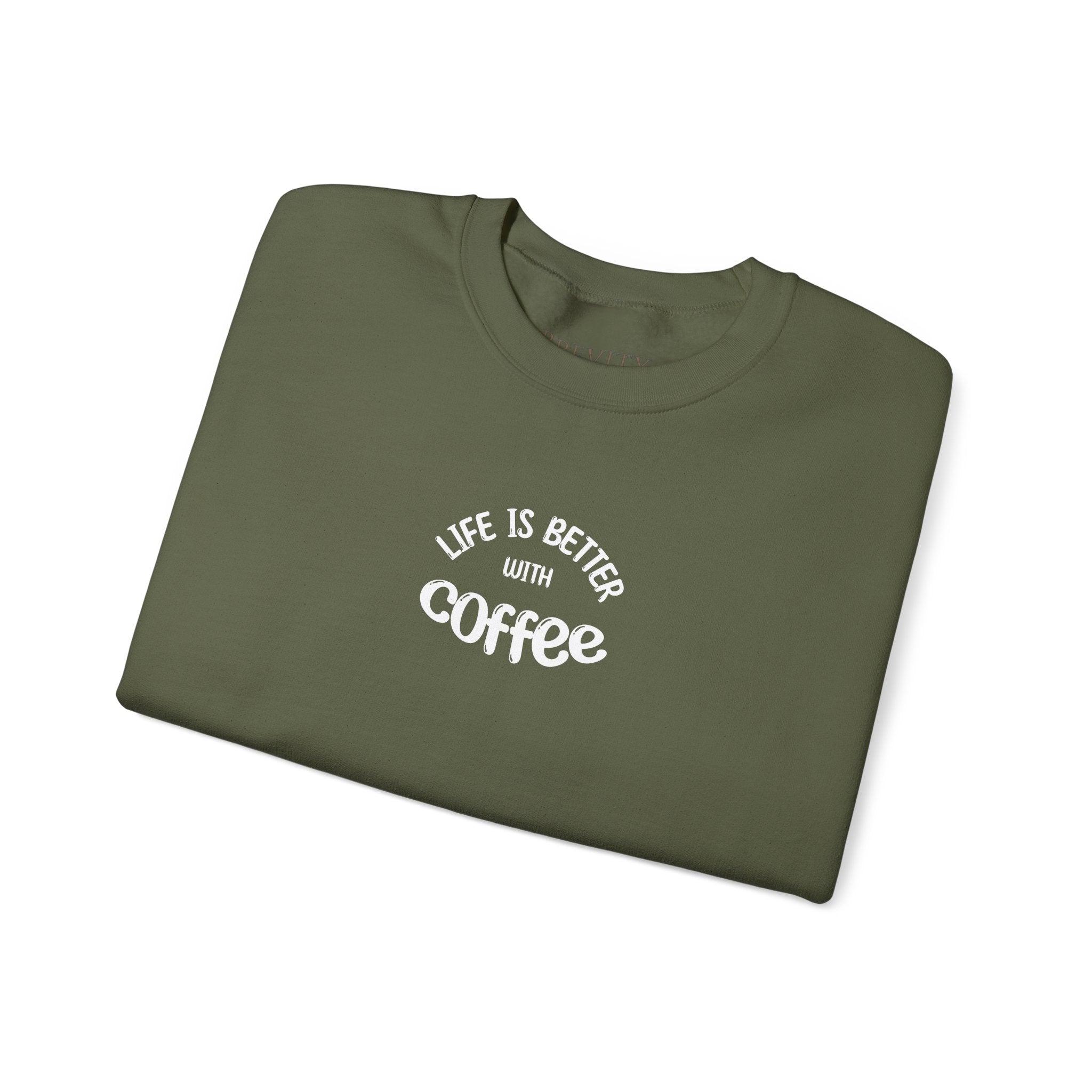 Let the world know your priorities with this "Life Is Better With Coffee" Crewneck. Featuring a cute, retro-style script design, this sweatshirt is a quiet declaration for those who believe the day doesn't start until the first sip.