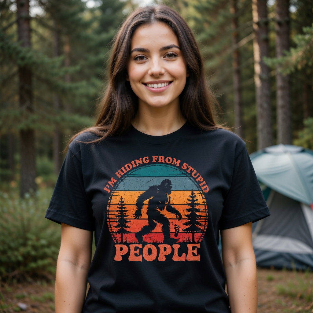 Distressed Print - Bigfoot "I'm Hiding From Stupid People" Shirt – Funny Introvert Sasquatch Tee