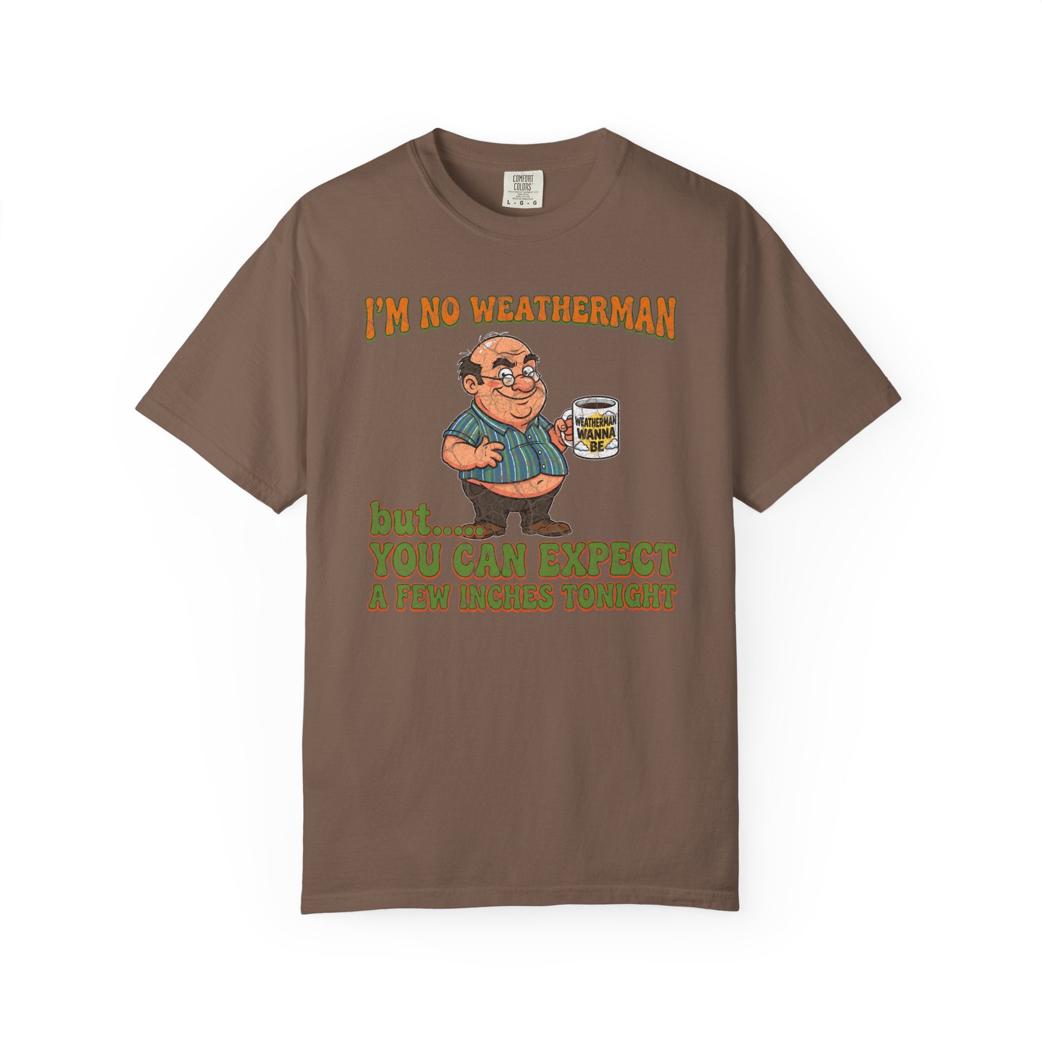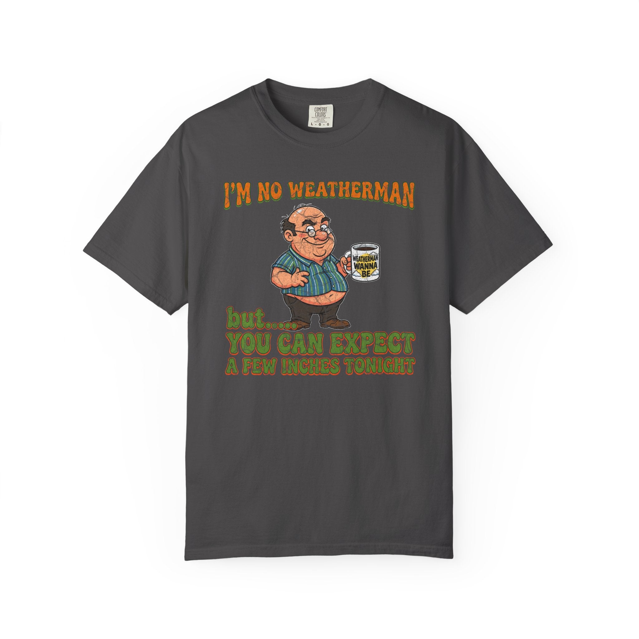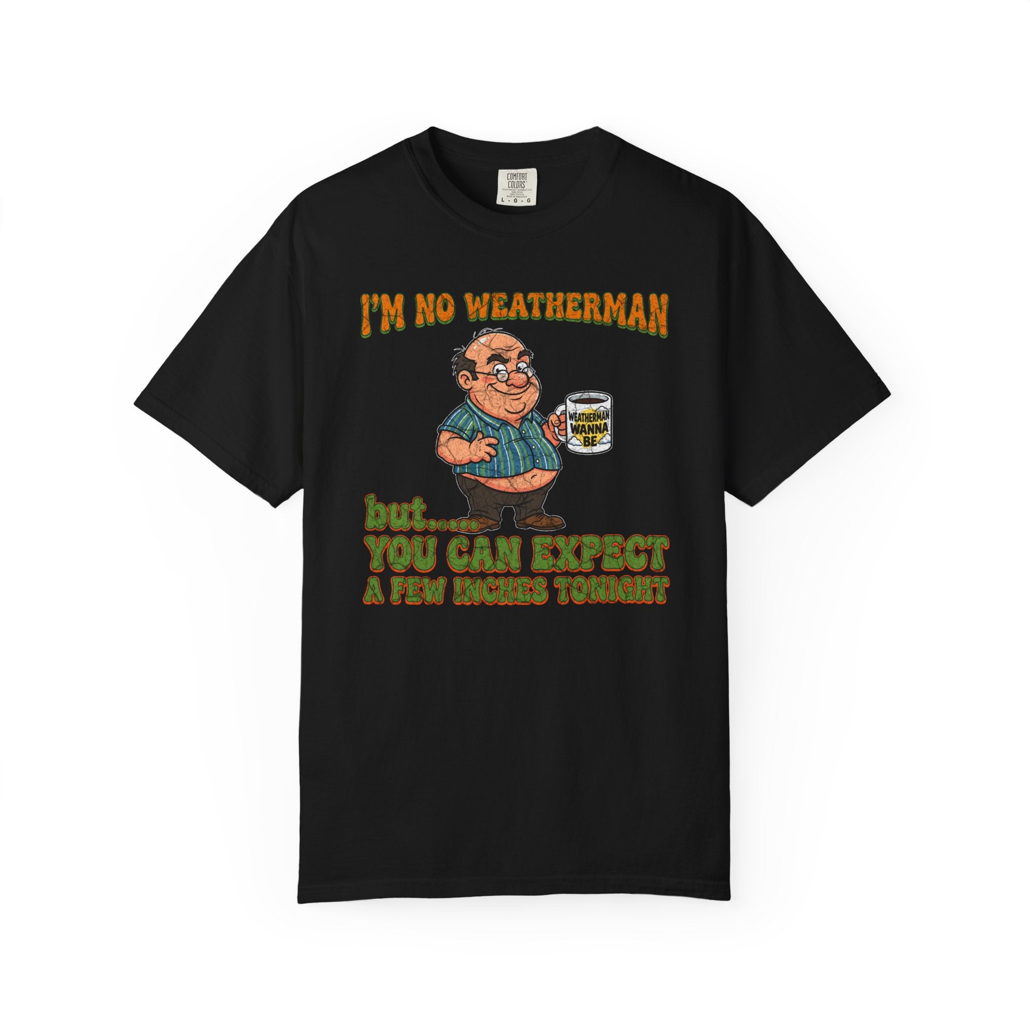 Bring a guaranteed laugh to your everyday wardrobe with our cheekily designed unisex cotton t-shirt. Featuring the hilariously playful phrase "I'm No Weatherman But You Can Expect A Few Inches Tonight," this novelty graphic tee perfectly balances a great sense of humor with unbeatable all-day comfort. Whether you are heading to a casual weekend barbecue, relaxing at a campsite, or simply looking to spark a fun conversation at your next get-together, this modern and casual shirt is an absolute must-have for anyone who appreciates a good, dry joke.