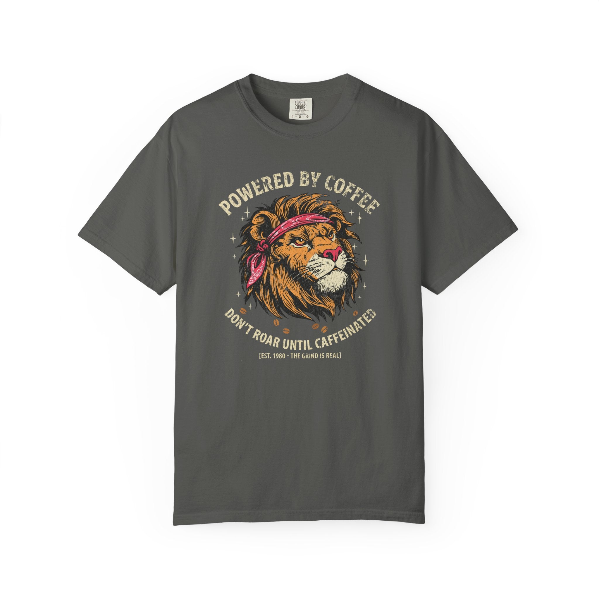 Start your morning with quiet confidence and ultimate casual comfort. Our bold "Powered by Coffee, Don't Roar Until Caffeinated" graphic tee perfectly captures the daily struggle before that first essential cup. Featuring a stunning, vintage-inspired lion design, this unisex cotton t-shirt effortlessly blends a fierce personality with premium everyday wear. Whether you are hunting down a strong espresso at your local cafe, powering through early meetings at the office, or simply lounging in your den on a lazy weekend, this highly versatile shirt delivers the exact cozy vibe you need to rule your day.