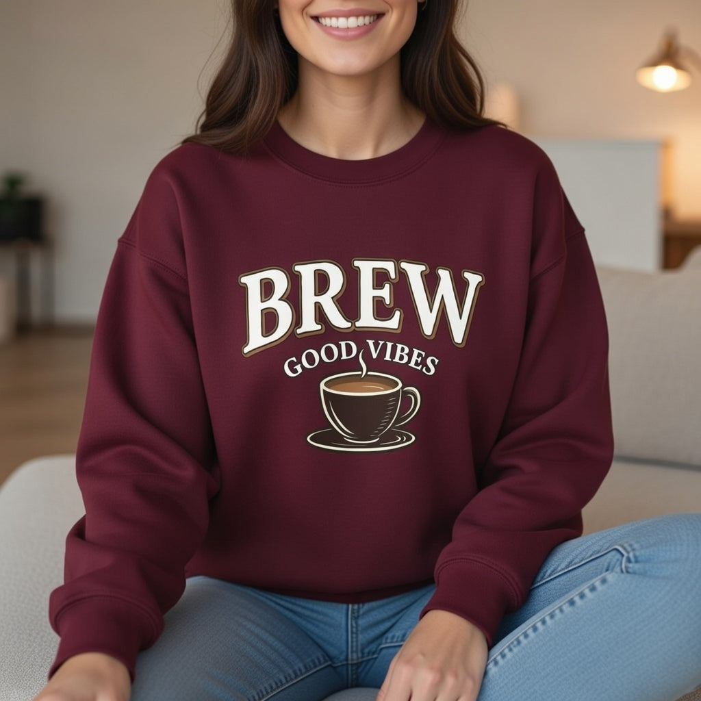 Capture that "Sunday morning at the local coffee shop" feeling every day of the week with this Brew Good Vibes Crewneck. Featuring a vintage-inspired "BREW" arch design and a steaming cup graphic, this sweatshirt is the ultimate uniform for caffeine enthusiasts, professional baristas, and anyone who believes coffee is a love language.