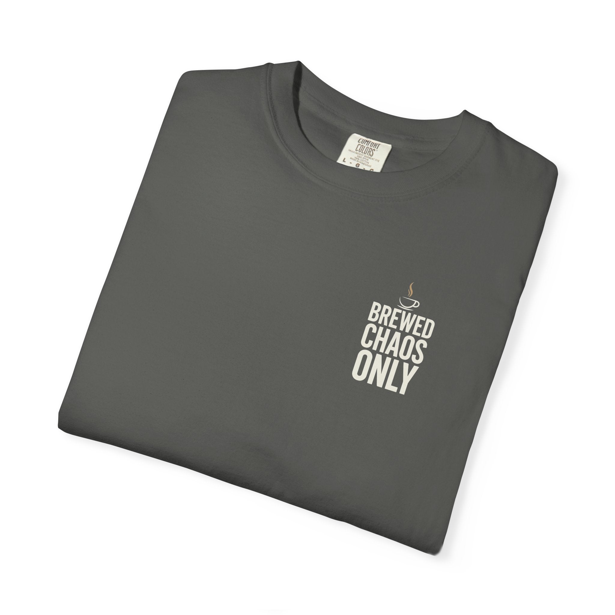 Brewed Chaos Only T-Shirt - Funny Coffee Pun Tee - Sarcastic Barista Shirt - Minimalist Aesthetic Graphic Top - Premium Comfort Colors 1717