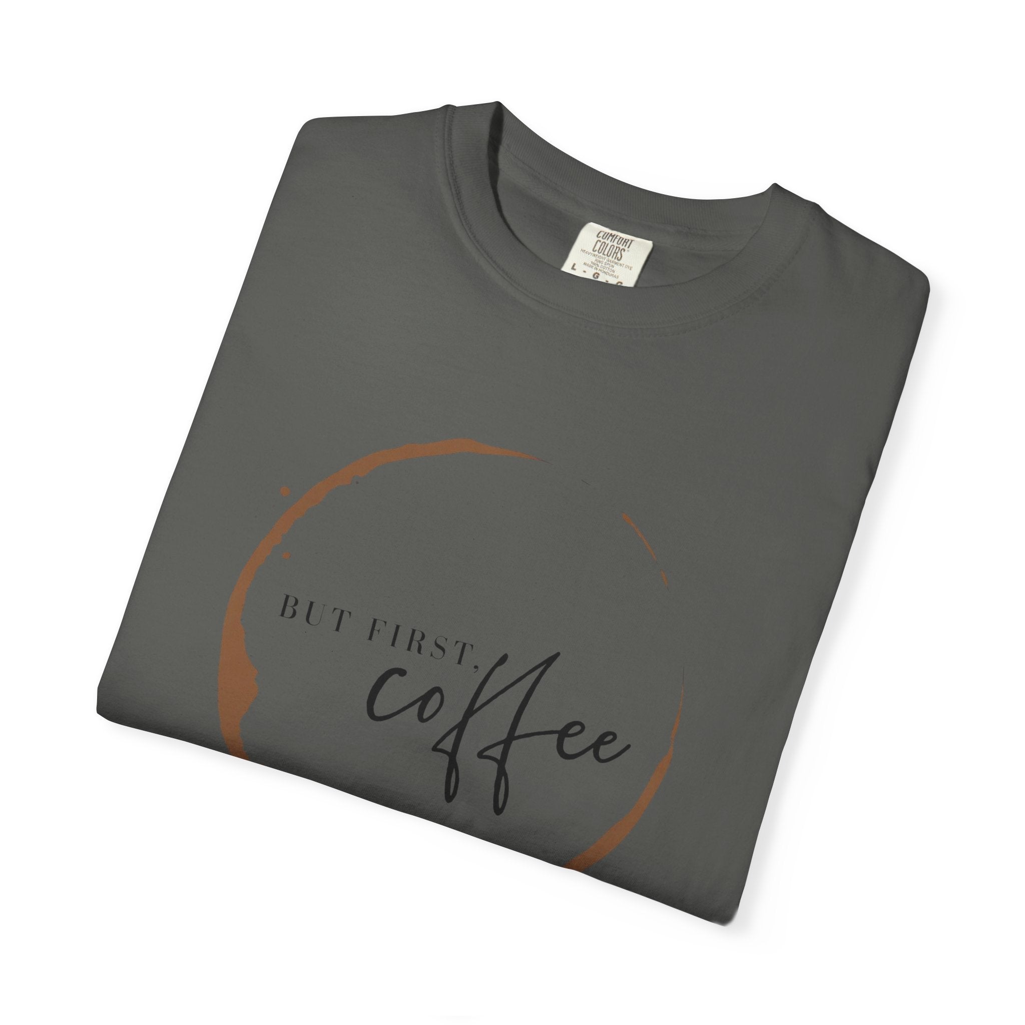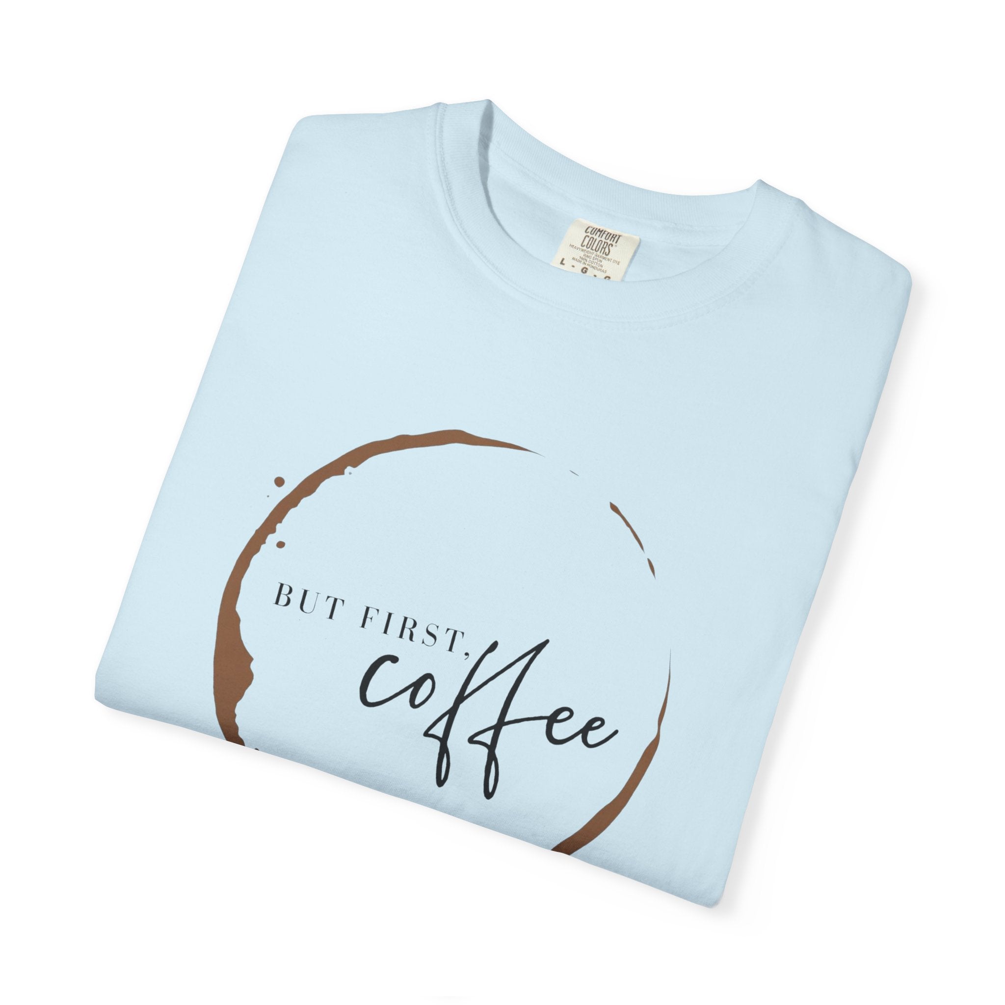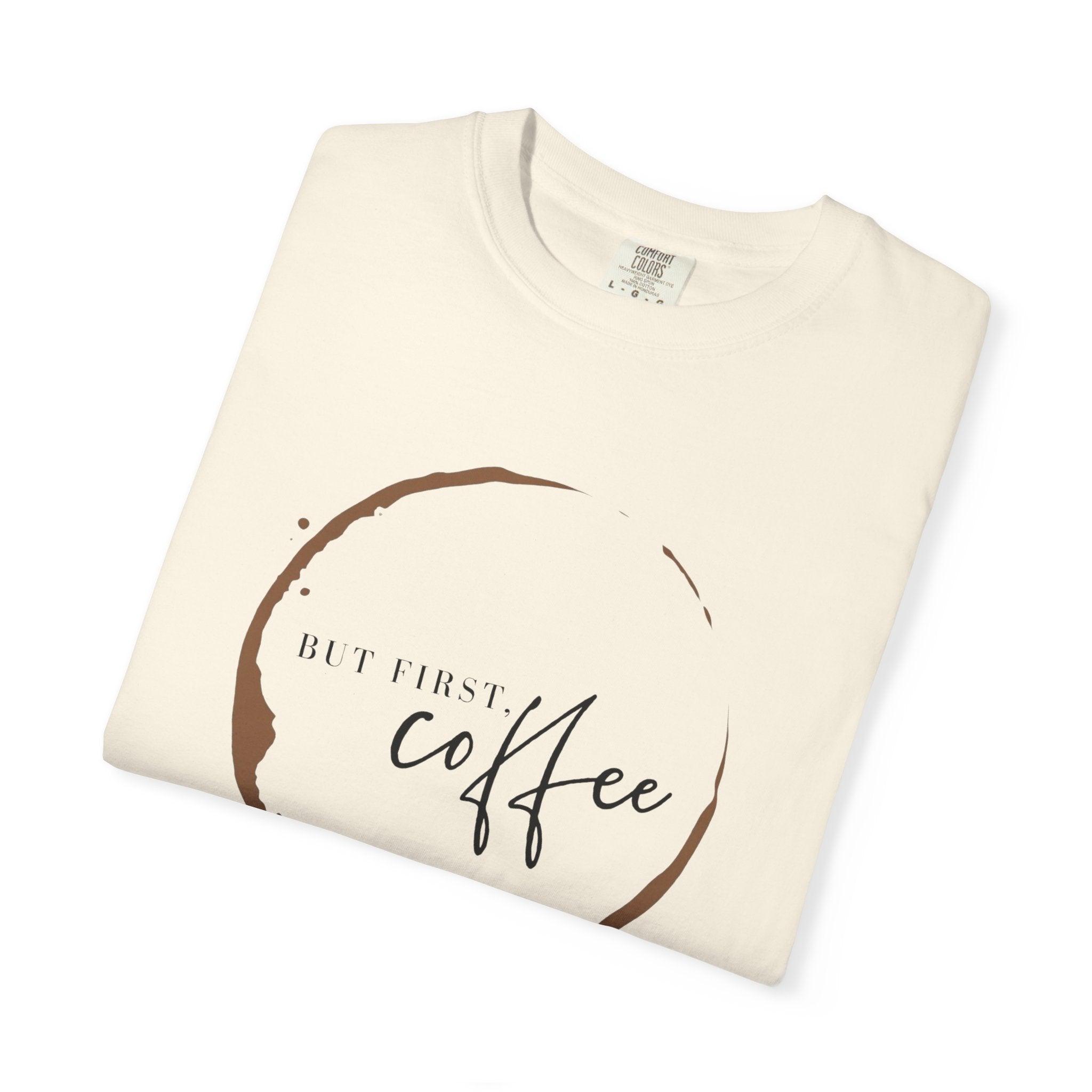 But First Coffee T-Shirt | Comfort Colors 1717 | Retro Circle Logo Graphic Tee