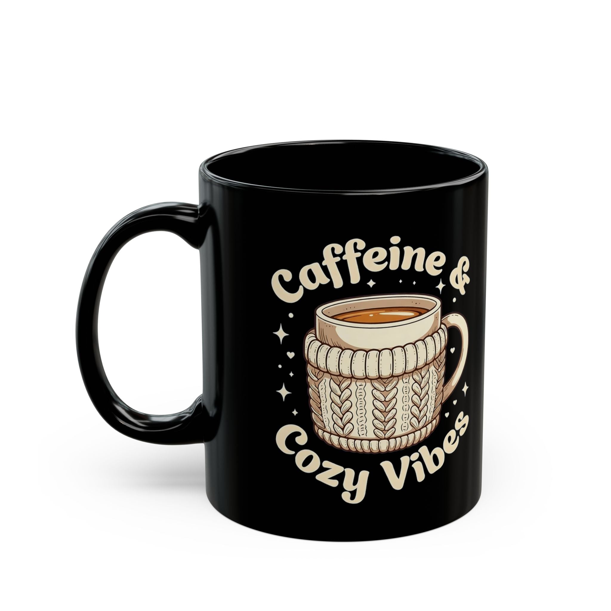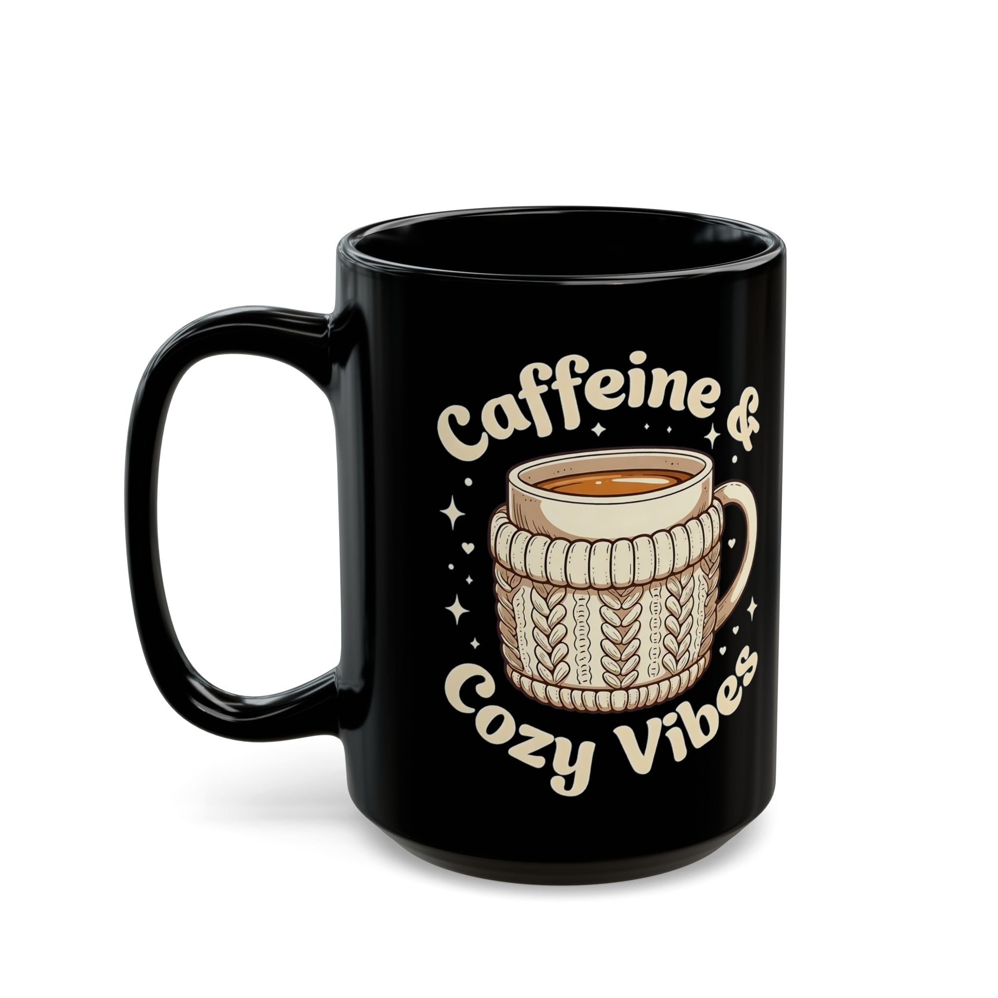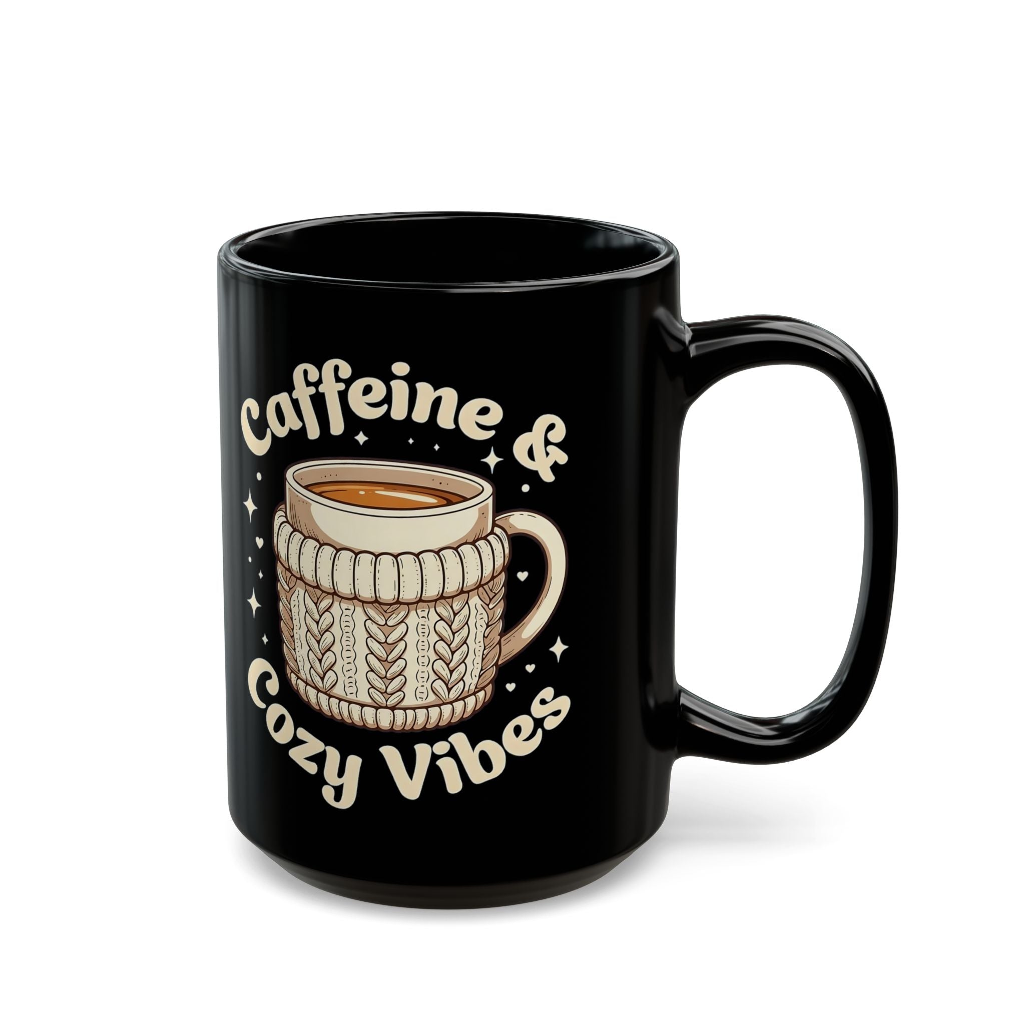 Caffeine & Cozy Vibes Mug — Black Coffee Cup (11oz/15oz)