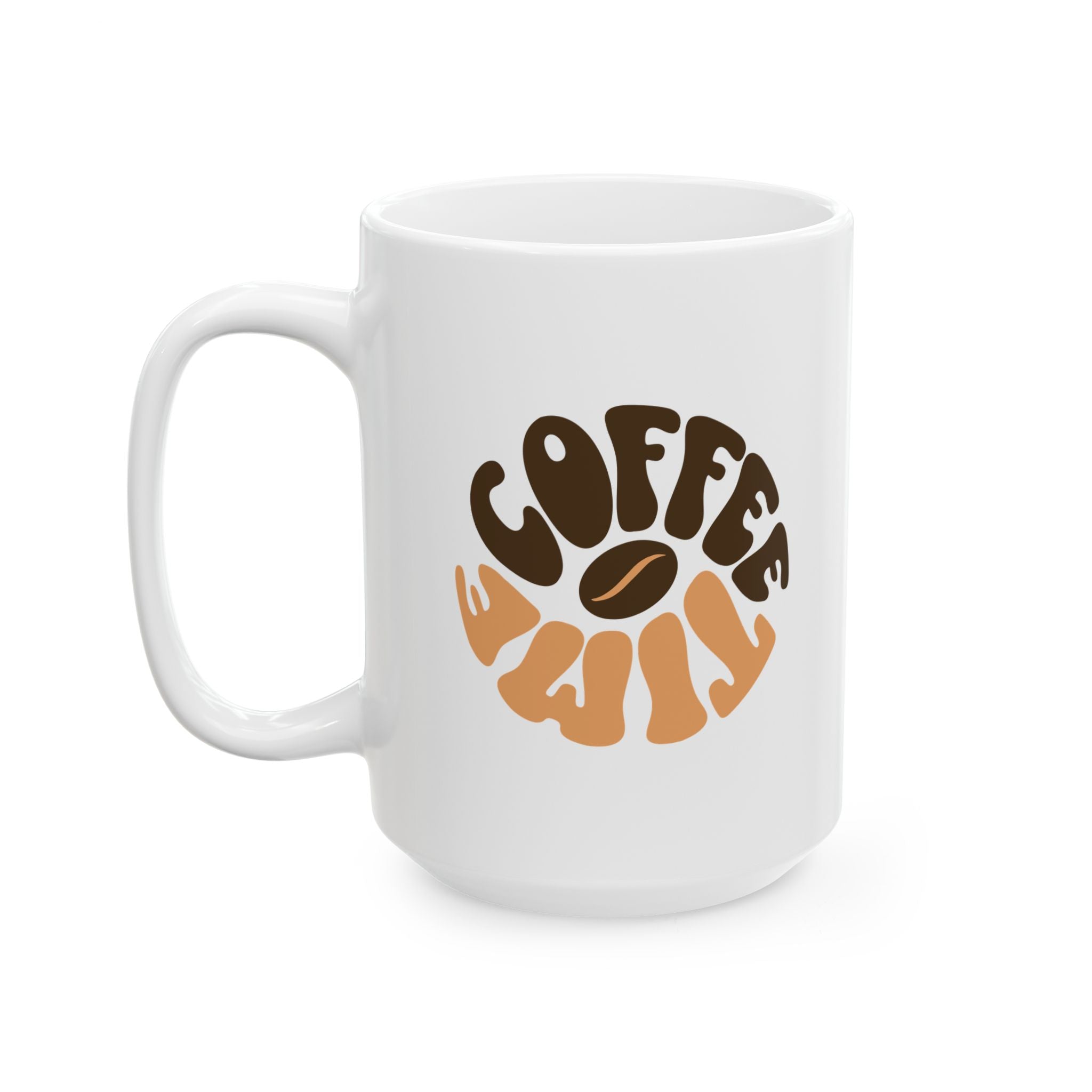 - Available in 11oz and 15oz sizes with a comfortable C-handle