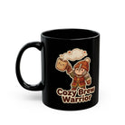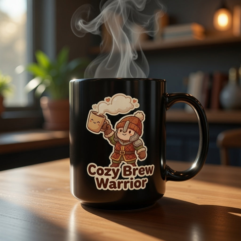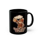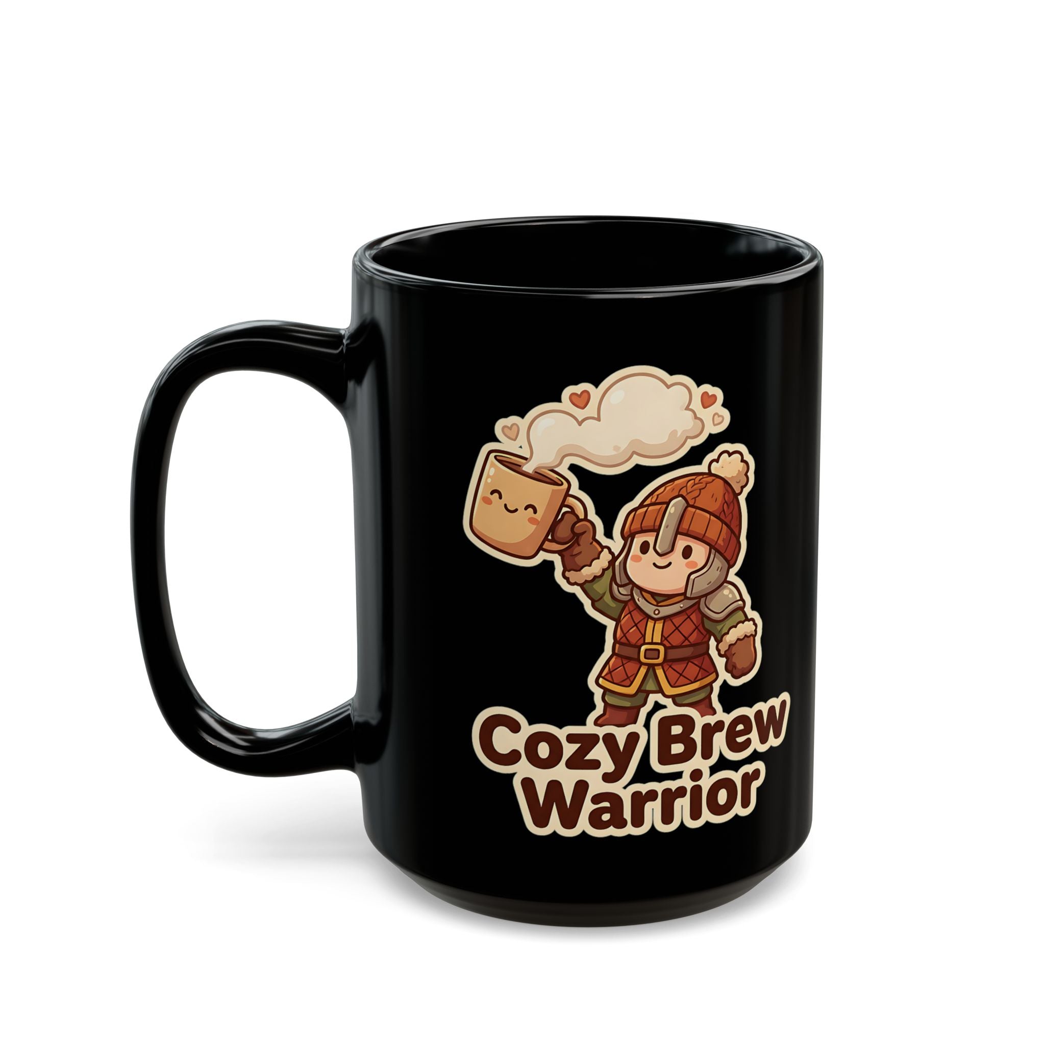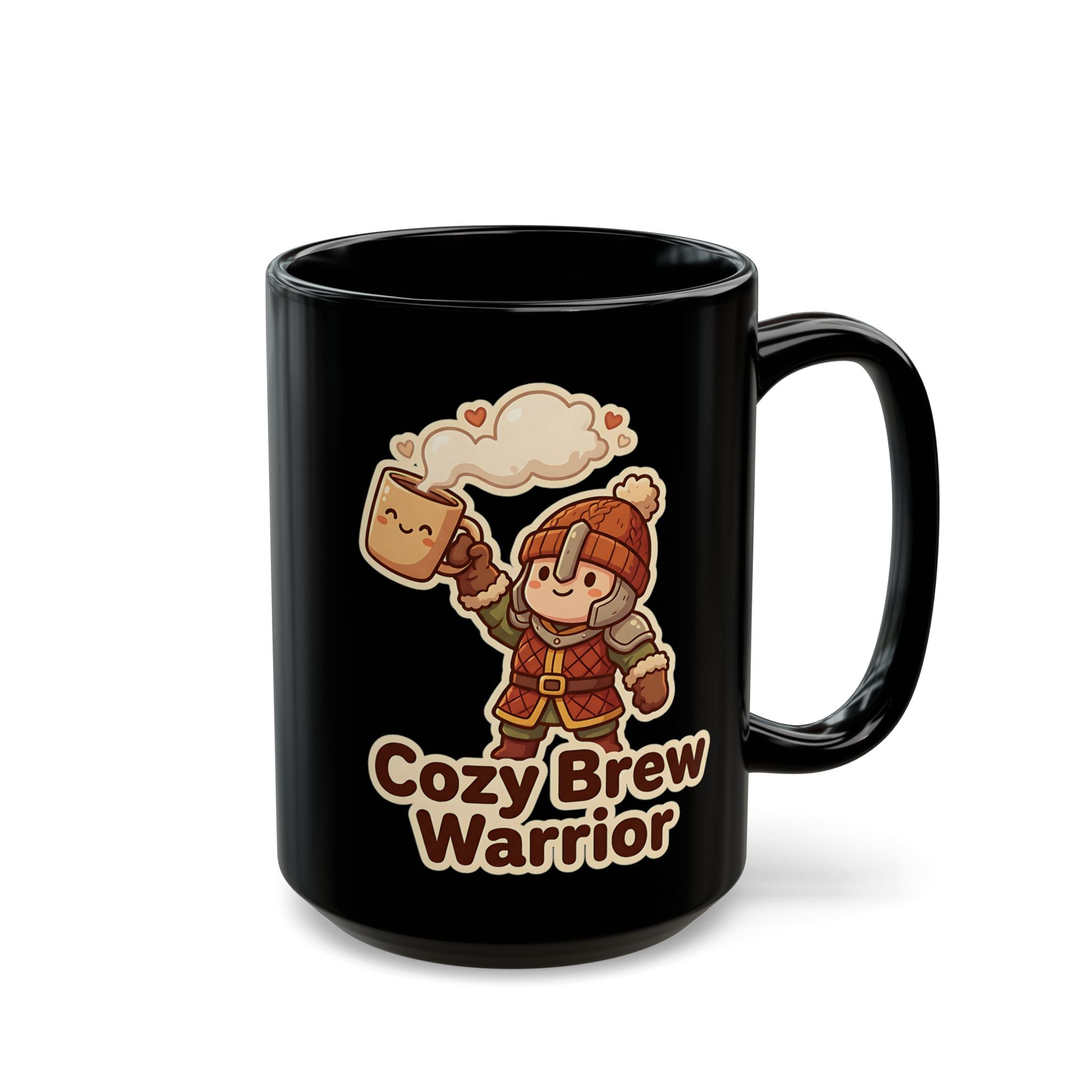 Cozy Brew Warrior Black Mug Cute Gamer Coffee Cup Whimsical Knight Design 11oz 15oz