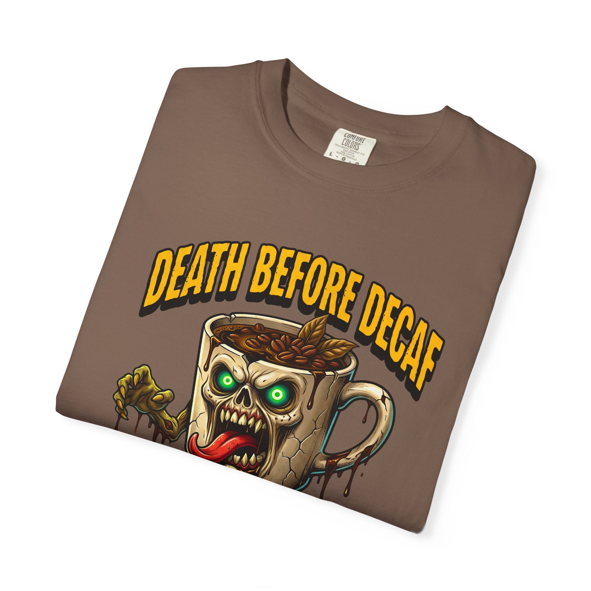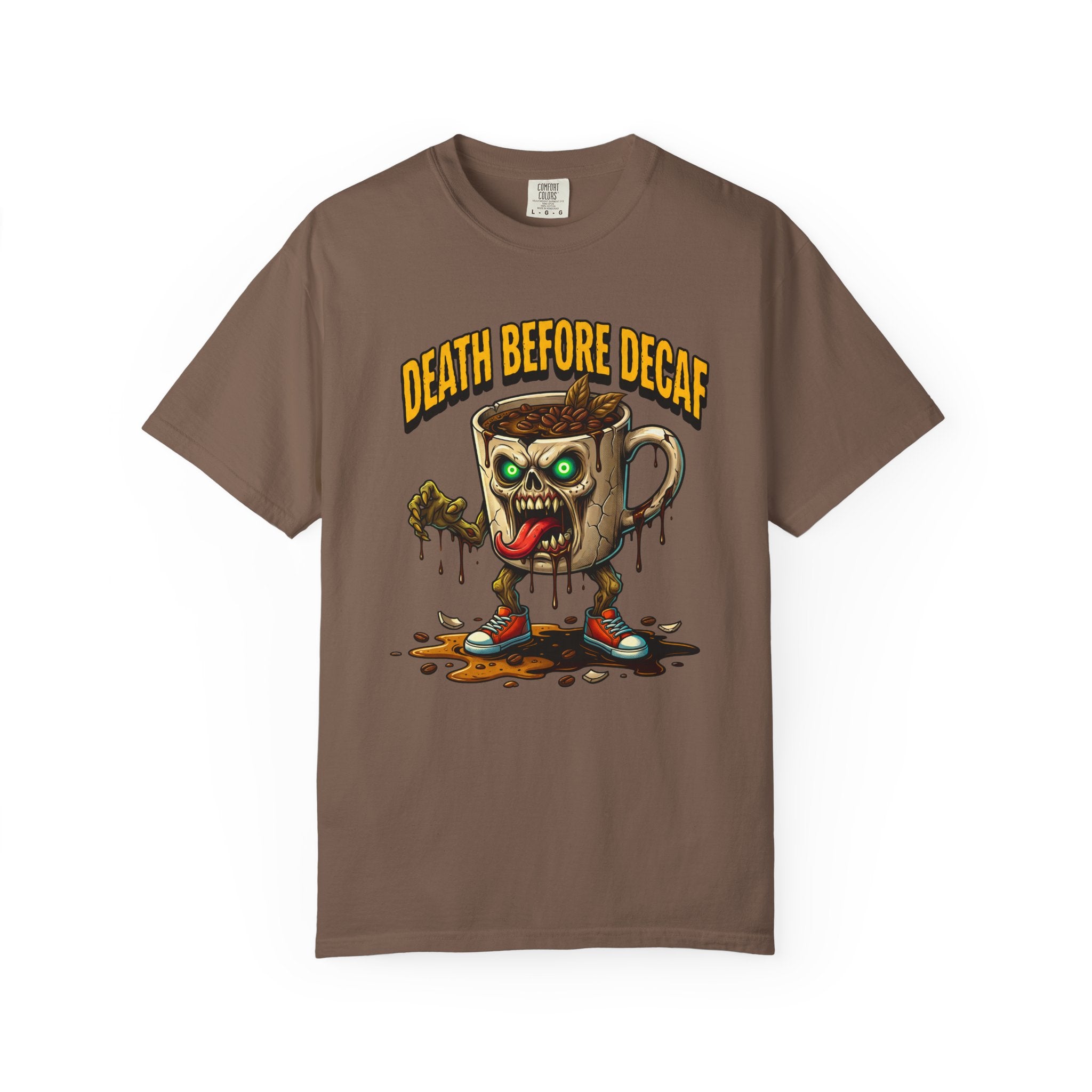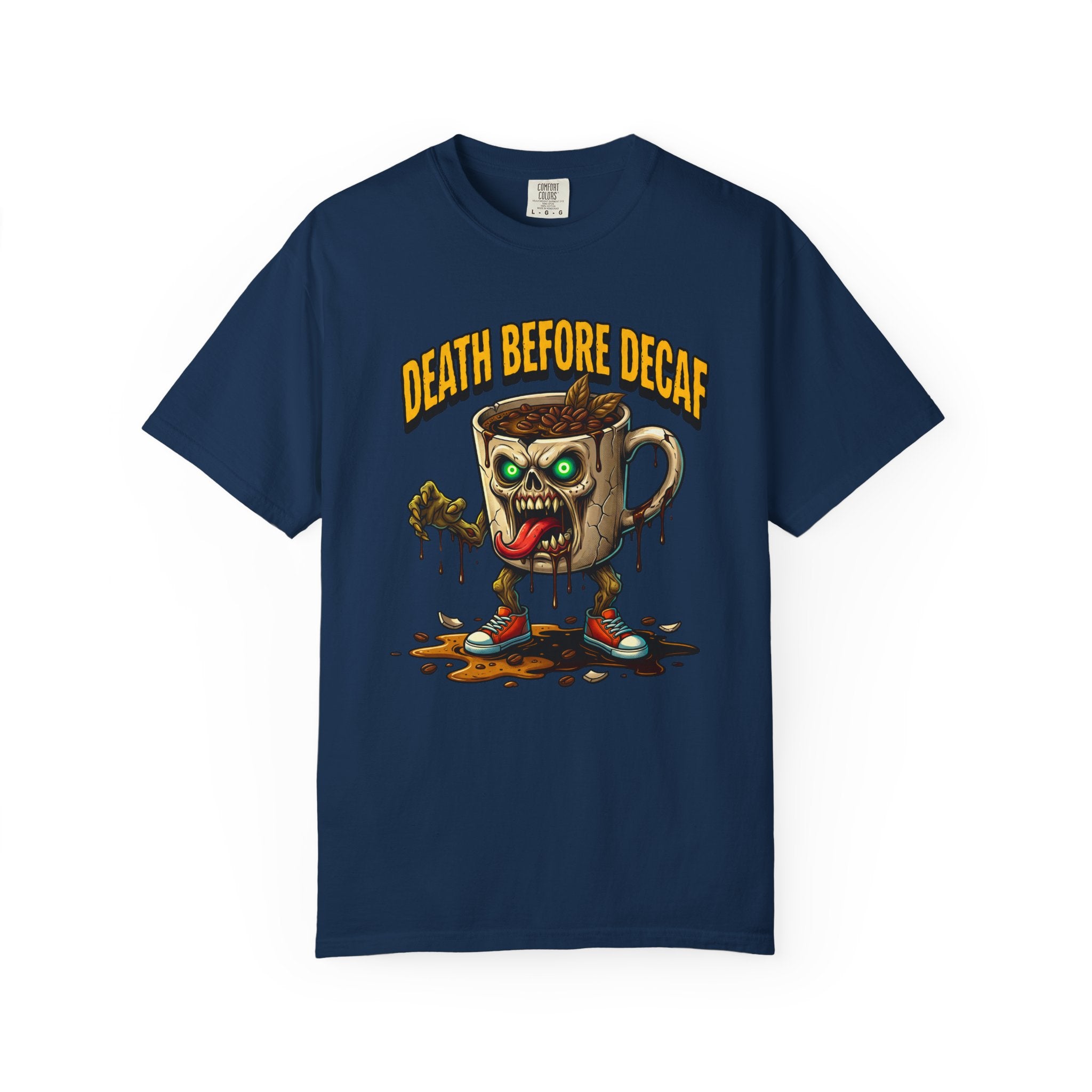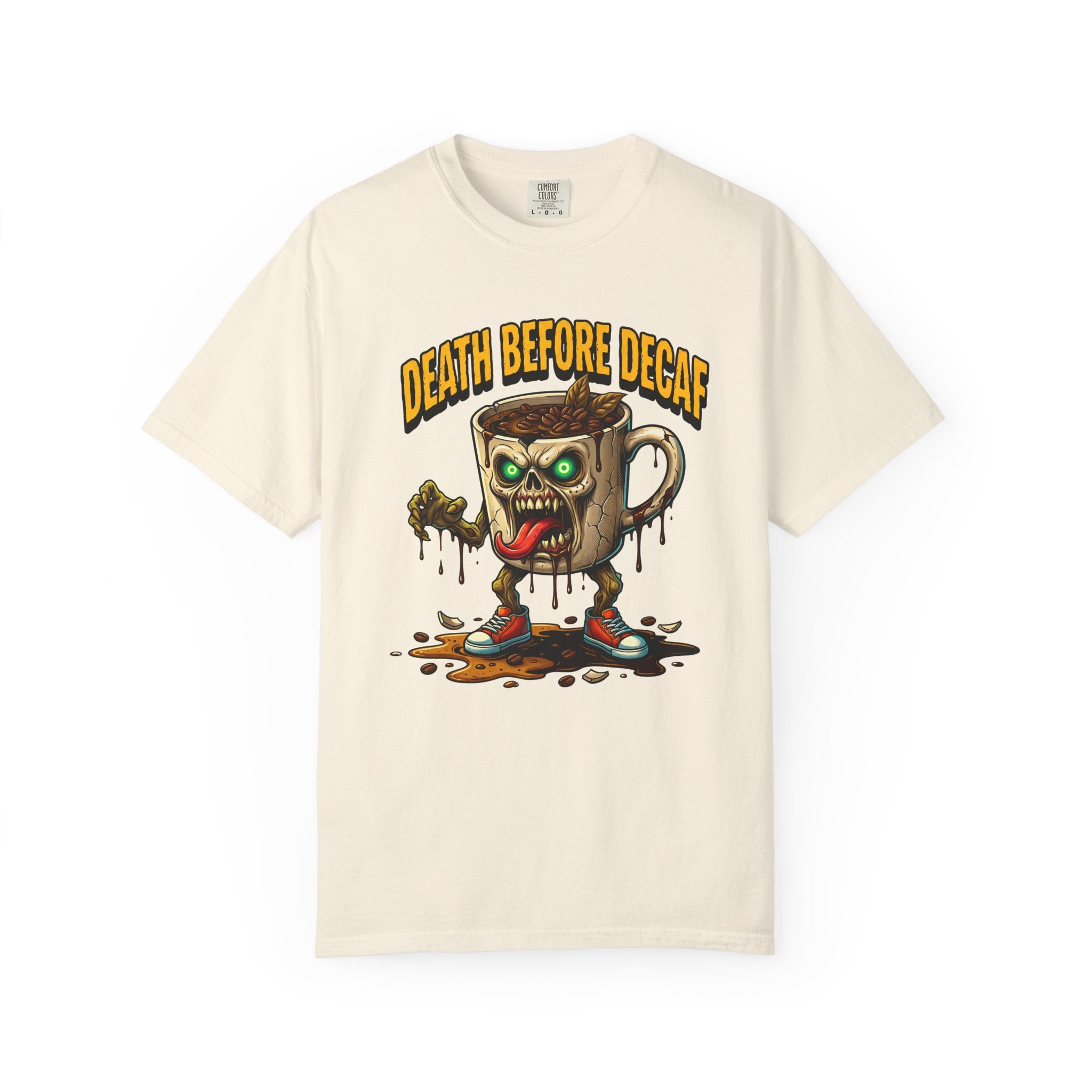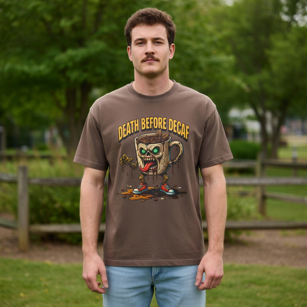 Looking for that perfect, lived-in shirt that perfectly matches your rebellious caffeine obsession? Our "Death Before Decaf" gothic zombie unisex cotton t-shirt combines effortless alternative style with unbeatable all-day comfort. Crafted from premium, heavyweight ring-spun cotton, this soft graphic tee offers a relaxed fit that makes everyday dressing an absolute breeze. Whether you are hitting an early morning coffee run, grinding through late-night work sessions, or lounging on a lazy weekend, this wicked tongue-out coffee monster design adds a bold touch of dark humor to your daily routine.