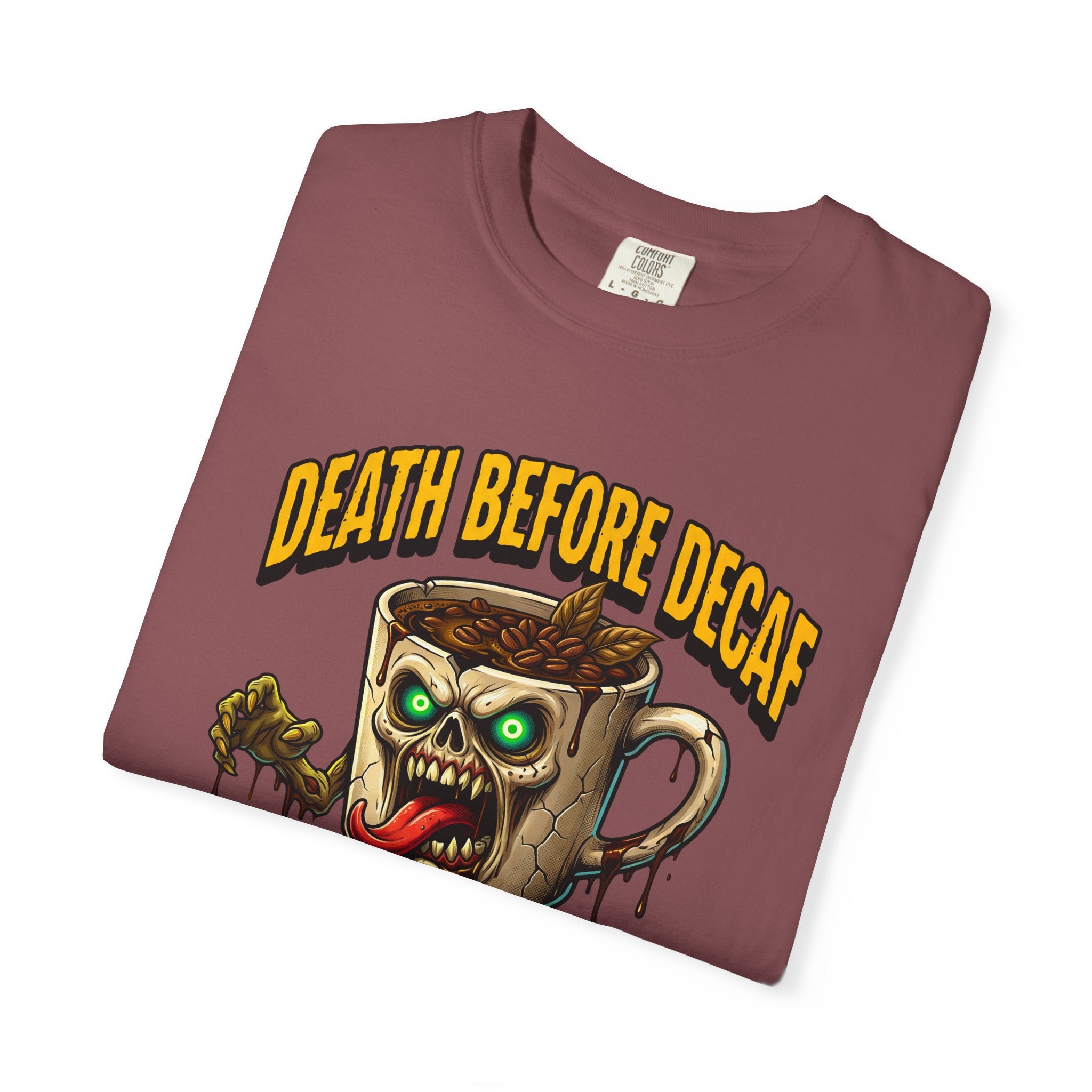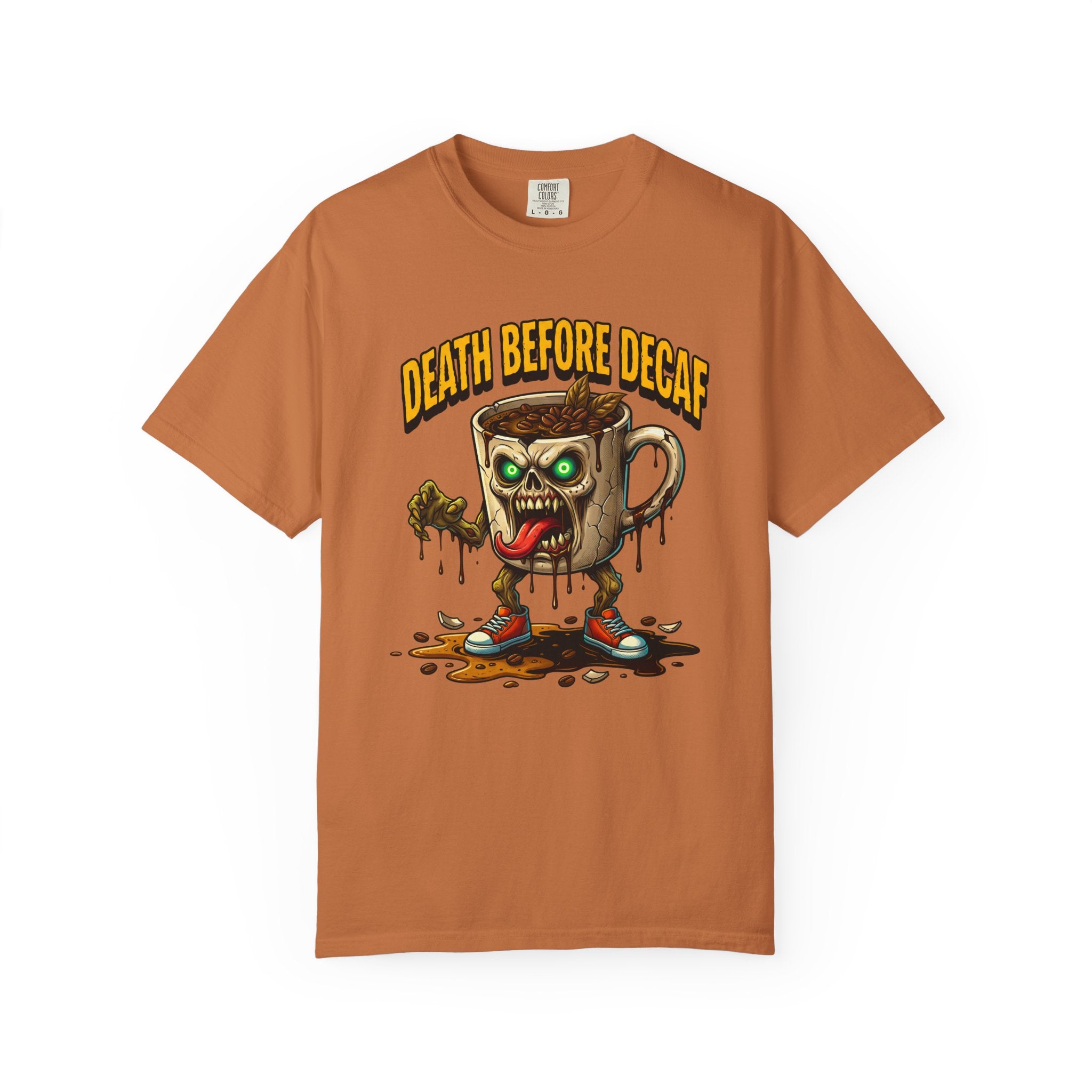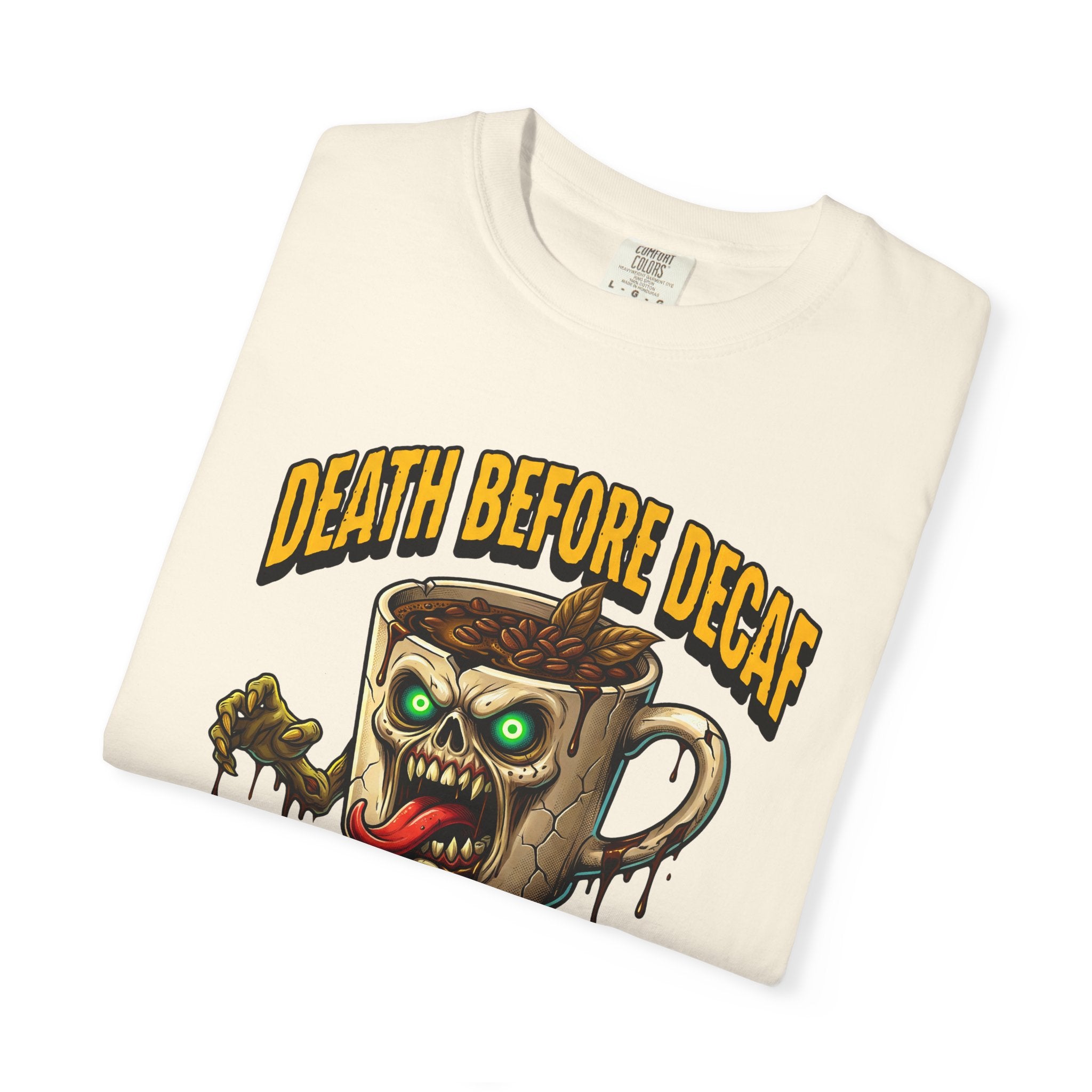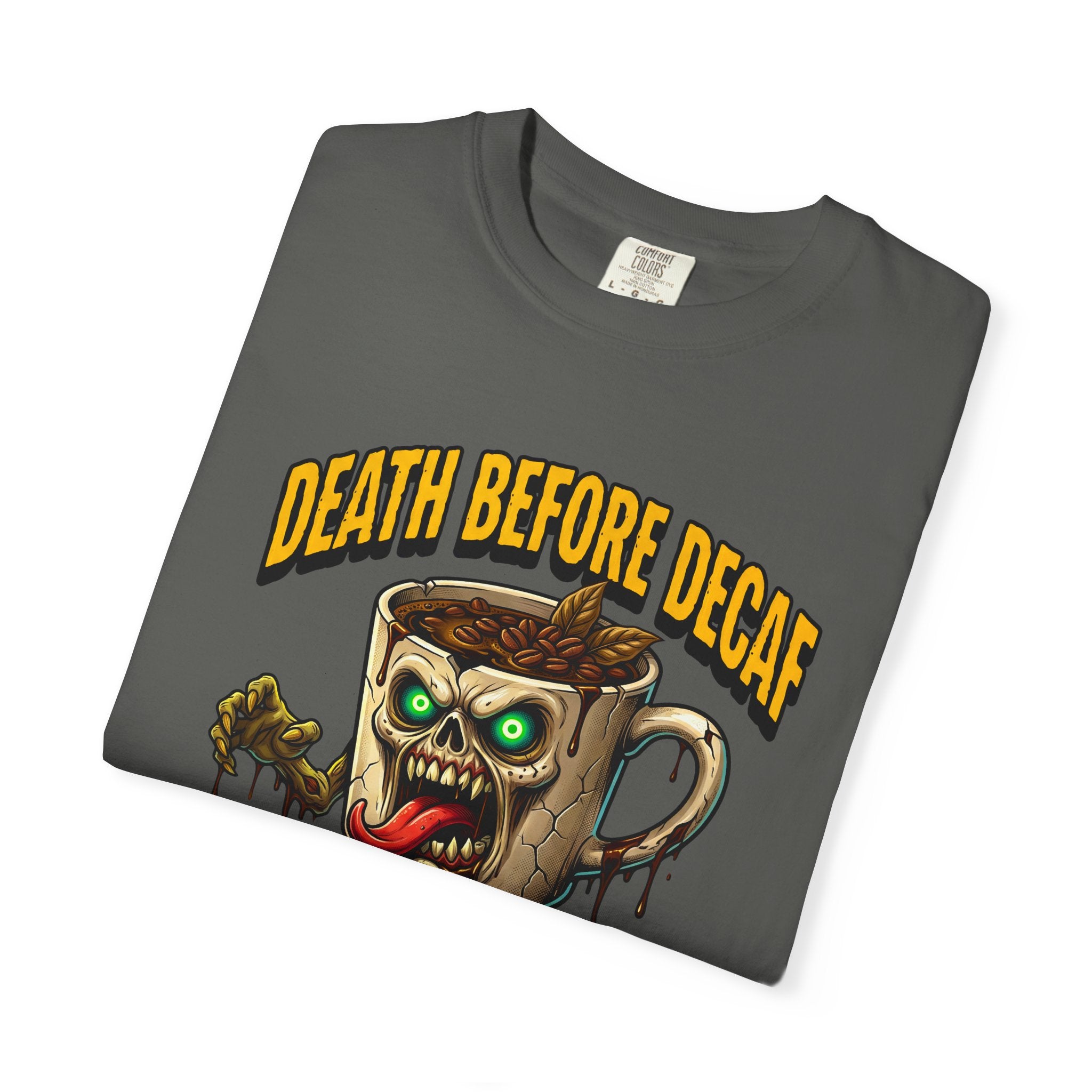 Looking for that perfect, lived-in shirt that perfectly matches your rebellious caffeine obsession? Our "Death Before Decaf" gothic zombie unisex cotton t-shirt combines effortless alternative style with unbeatable all-day comfort. Crafted from premium, heavyweight ring-spun cotton, this soft graphic tee offers a relaxed fit that makes everyday dressing an absolute breeze. Whether you are hitting an early morning coffee run, grinding through late-night work sessions, or lounging on a lazy weekend, this wicked tongue-out coffee monster design adds a bold touch of dark humor to your daily routine.