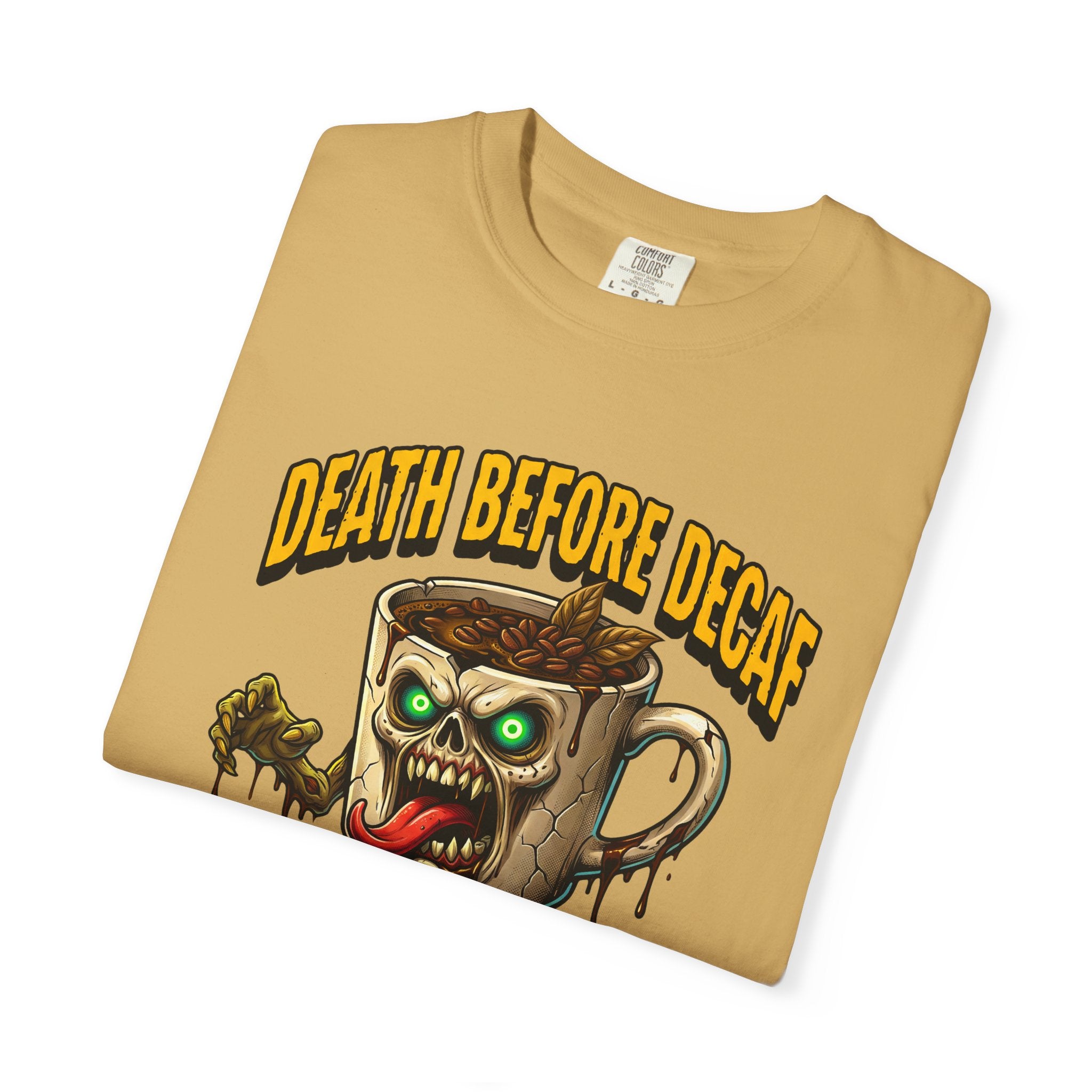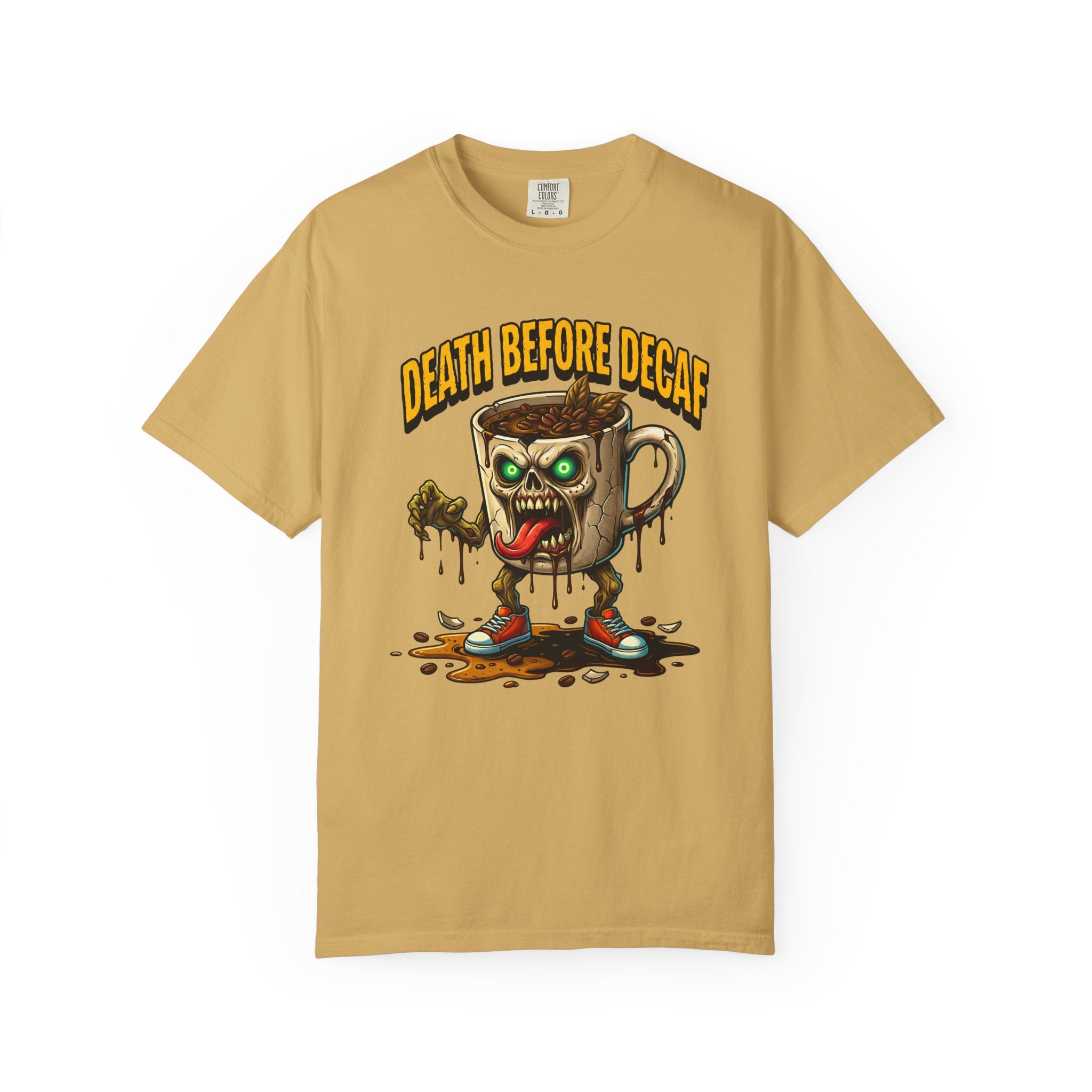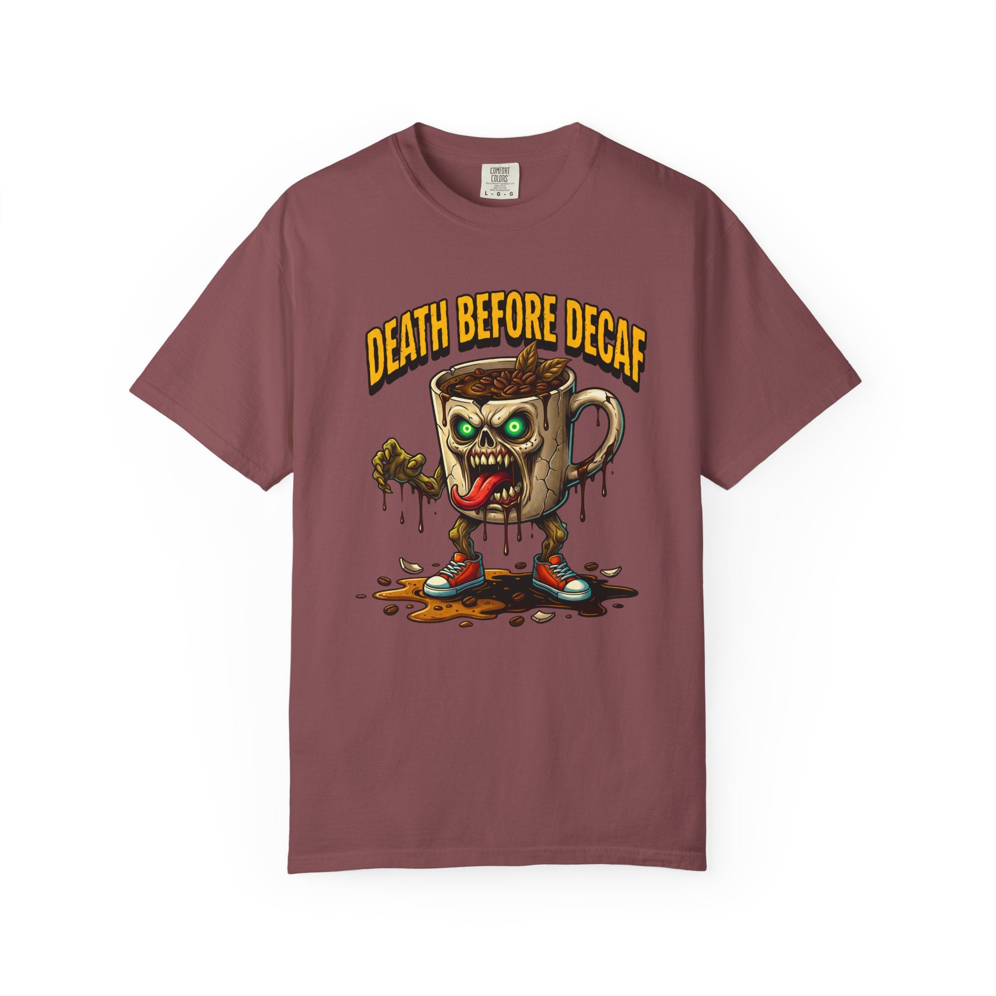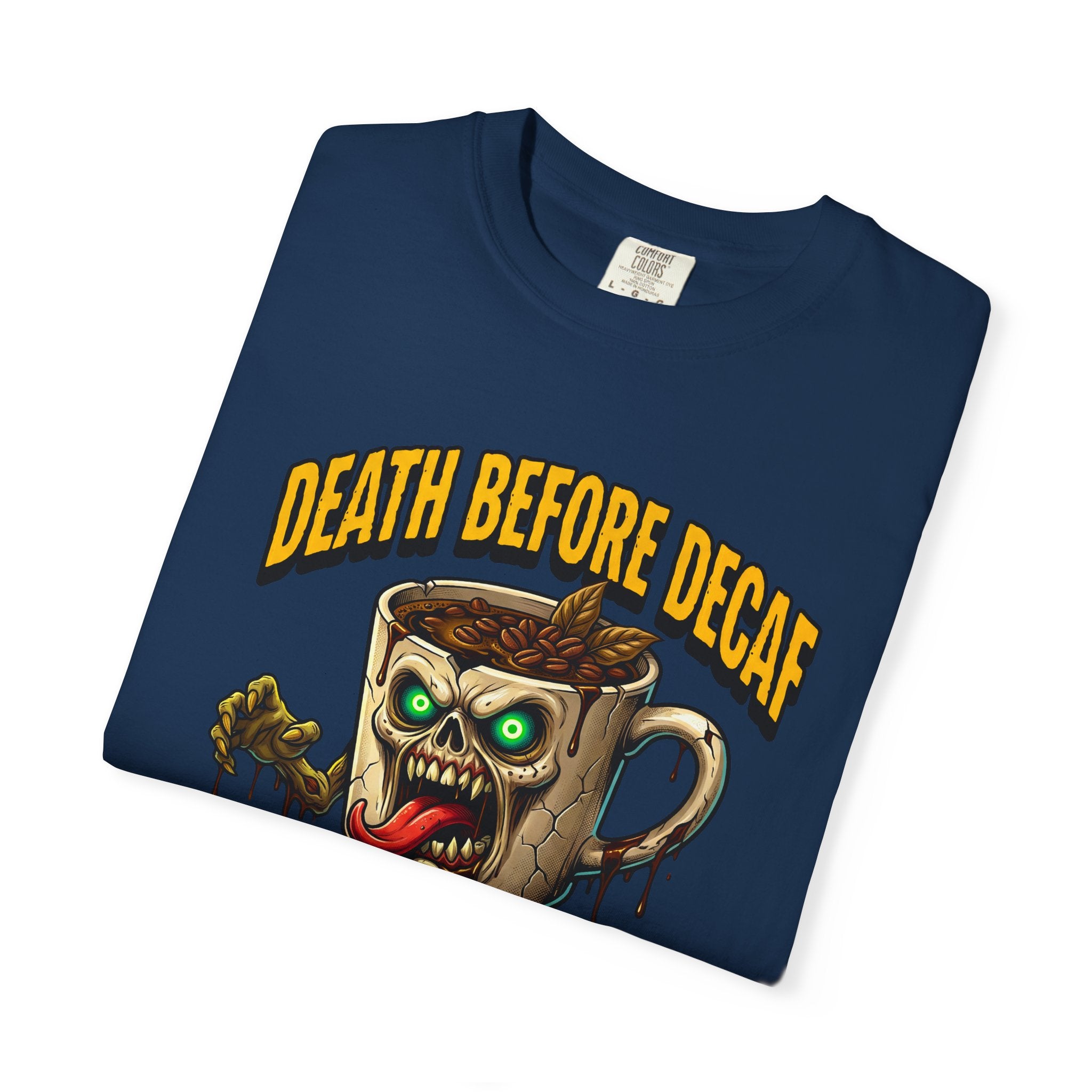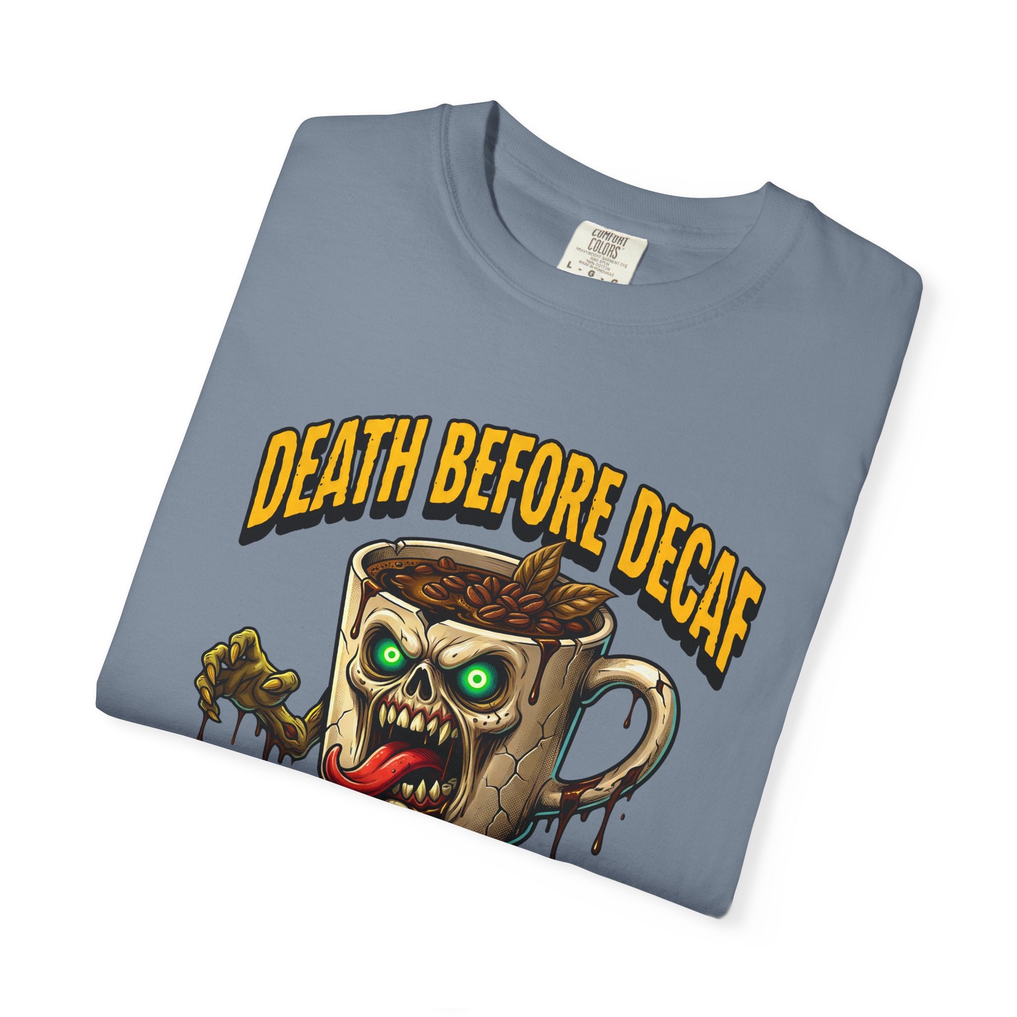 Looking for that perfect, lived-in shirt that perfectly matches your rebellious caffeine obsession? Our "Death Before Decaf" gothic zombie unisex cotton t-shirt combines effortless alternative style with unbeatable all-day comfort. Crafted from premium, heavyweight ring-spun cotton, this soft graphic tee offers a relaxed fit that makes everyday dressing an absolute breeze. Whether you are hitting an early morning coffee run, grinding through late-night work sessions, or lounging on a lazy weekend, this wicked tongue-out coffee monster design adds a bold touch of dark humor to your daily routine.