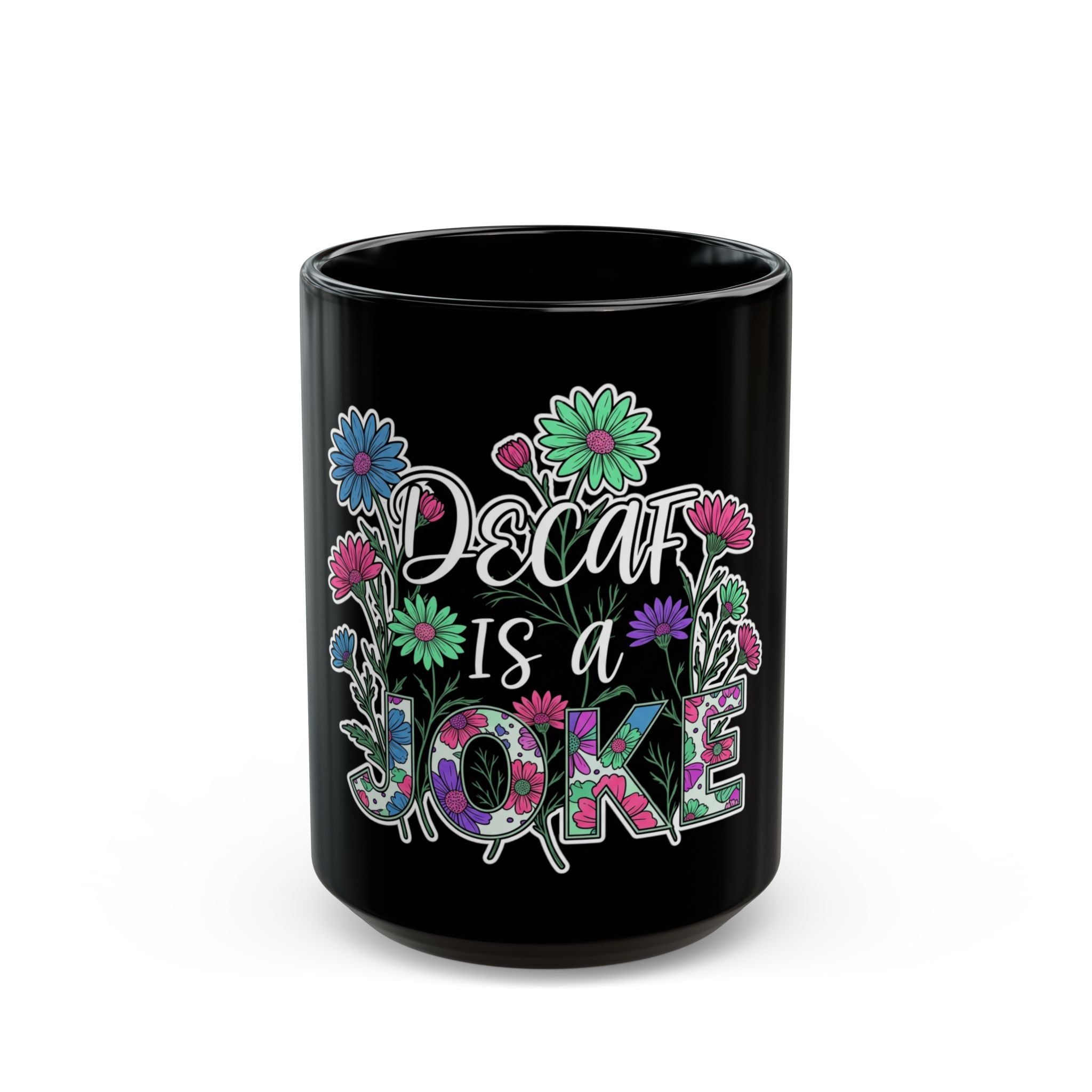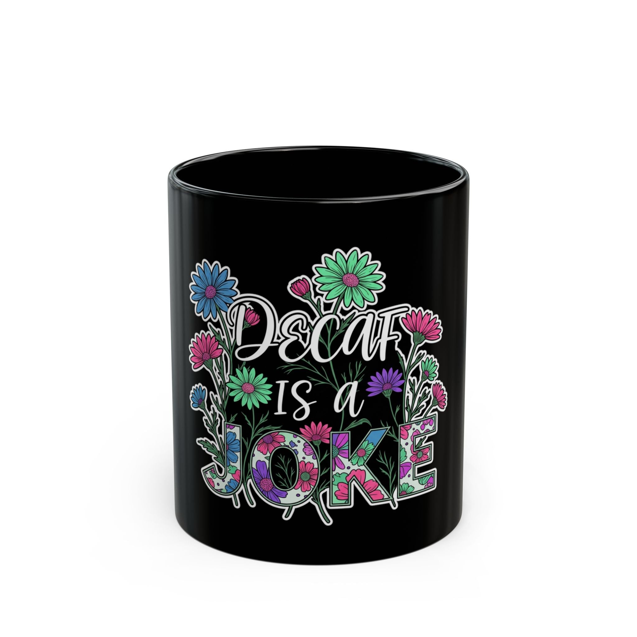 Decaf Is A Joke Black Coffee Mug — Floral Funny Coffee Lover Gift (11oz/15oz)