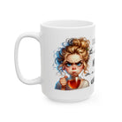 - Glossy white ceramic with comfortable C-handle