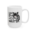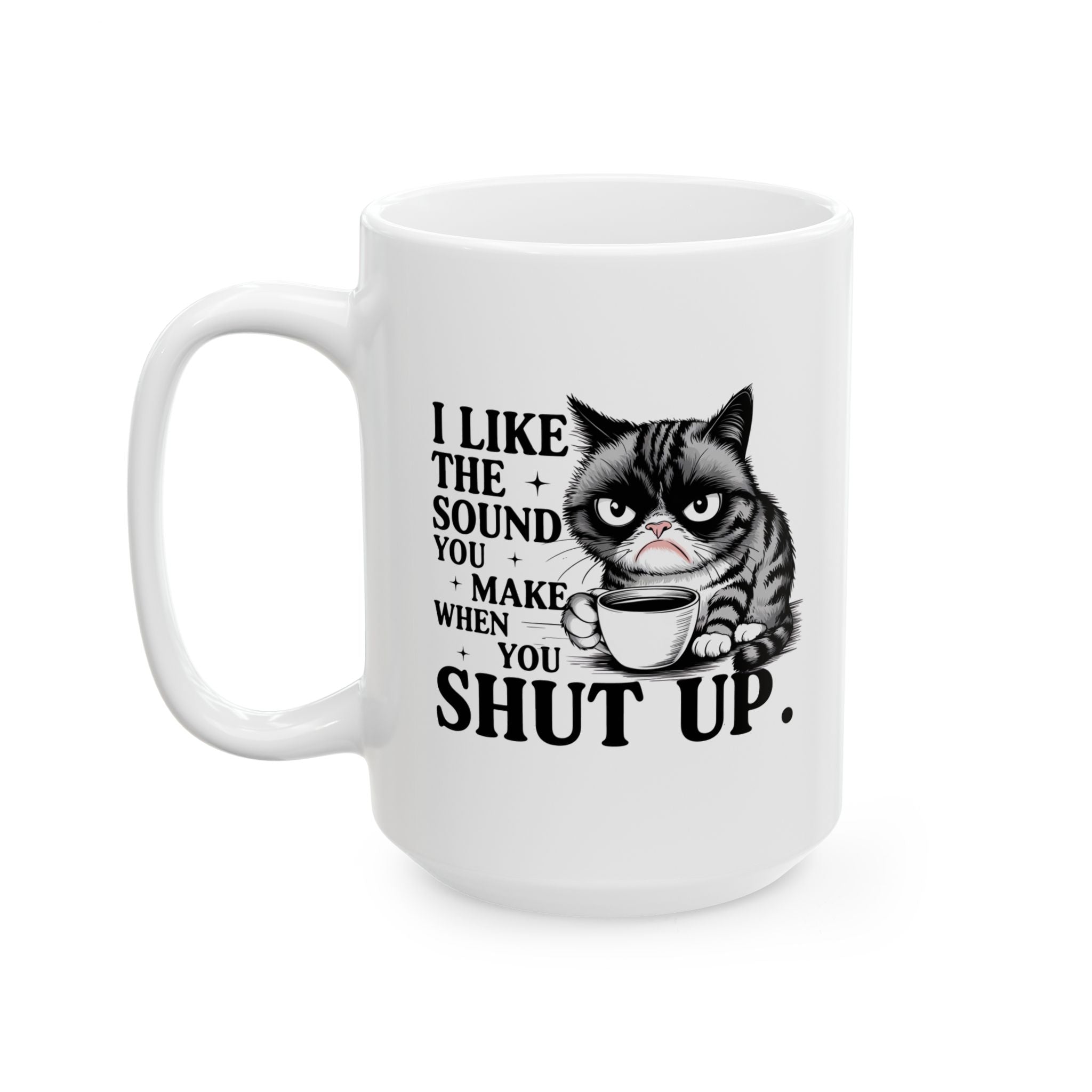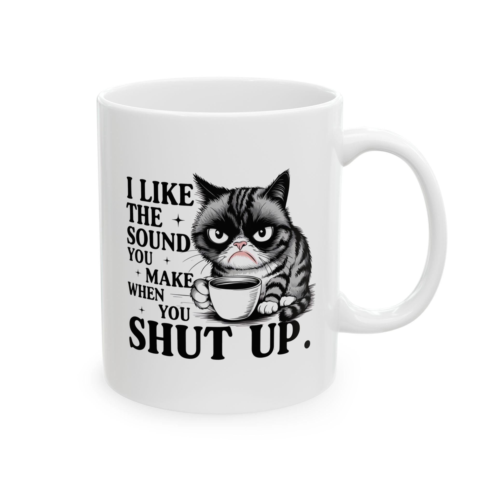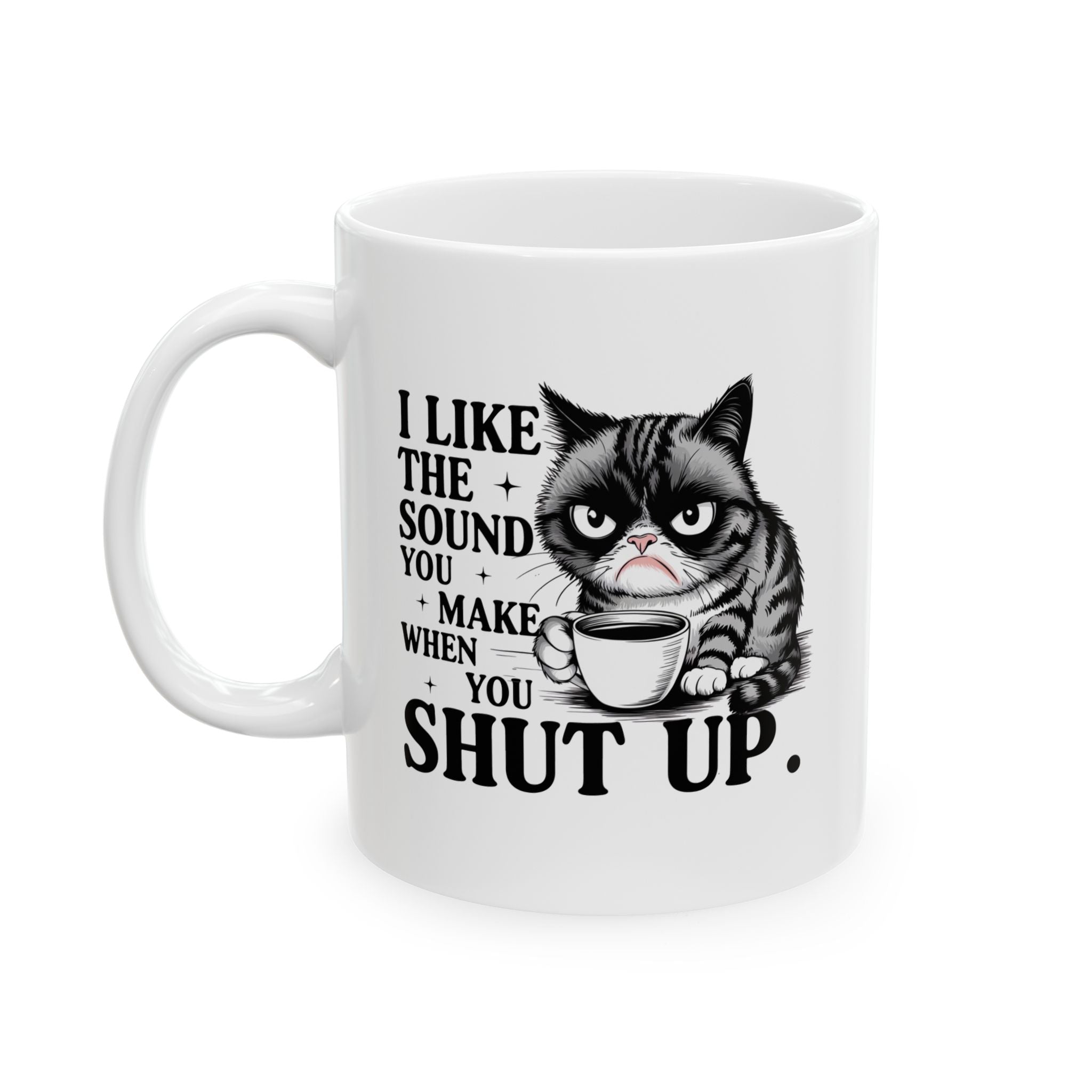 If your ideal morning involves zero conversation and a lot of caffeine, this is the mug for you. Featuring a grumpy cat and the brutally honest quote "I LIKE THE SOUND YOU MAKE WHEN YOU SHUT UP," this black ceramic mug is the perfect way to set boundaries at the office or at home.