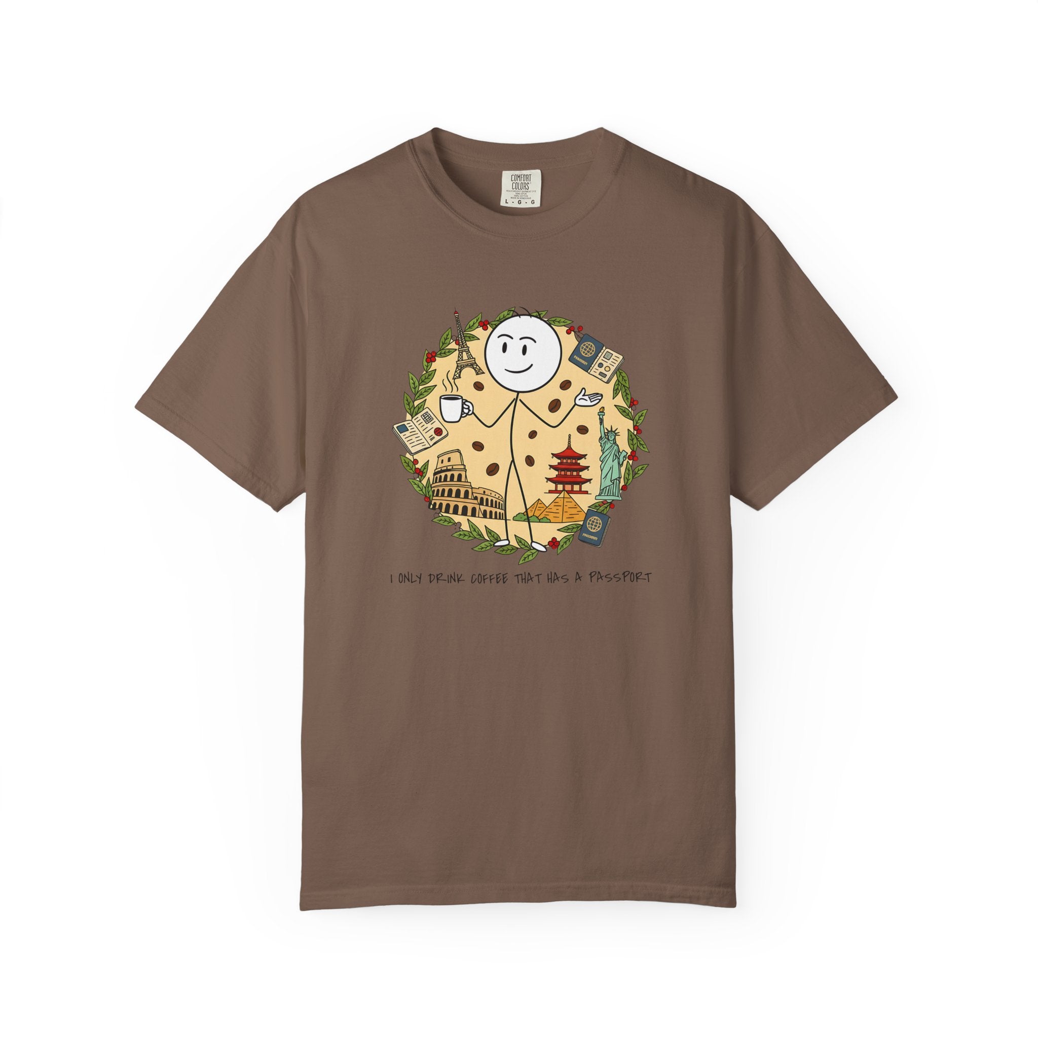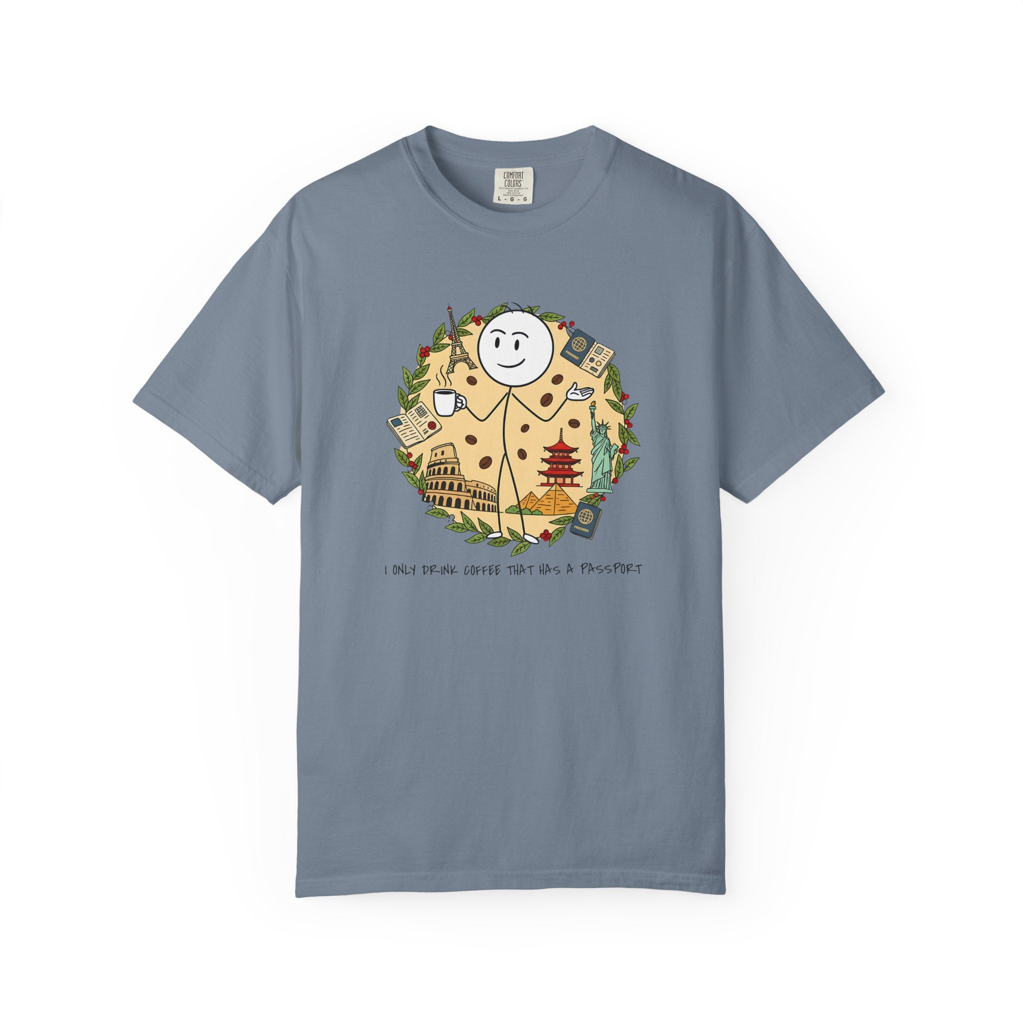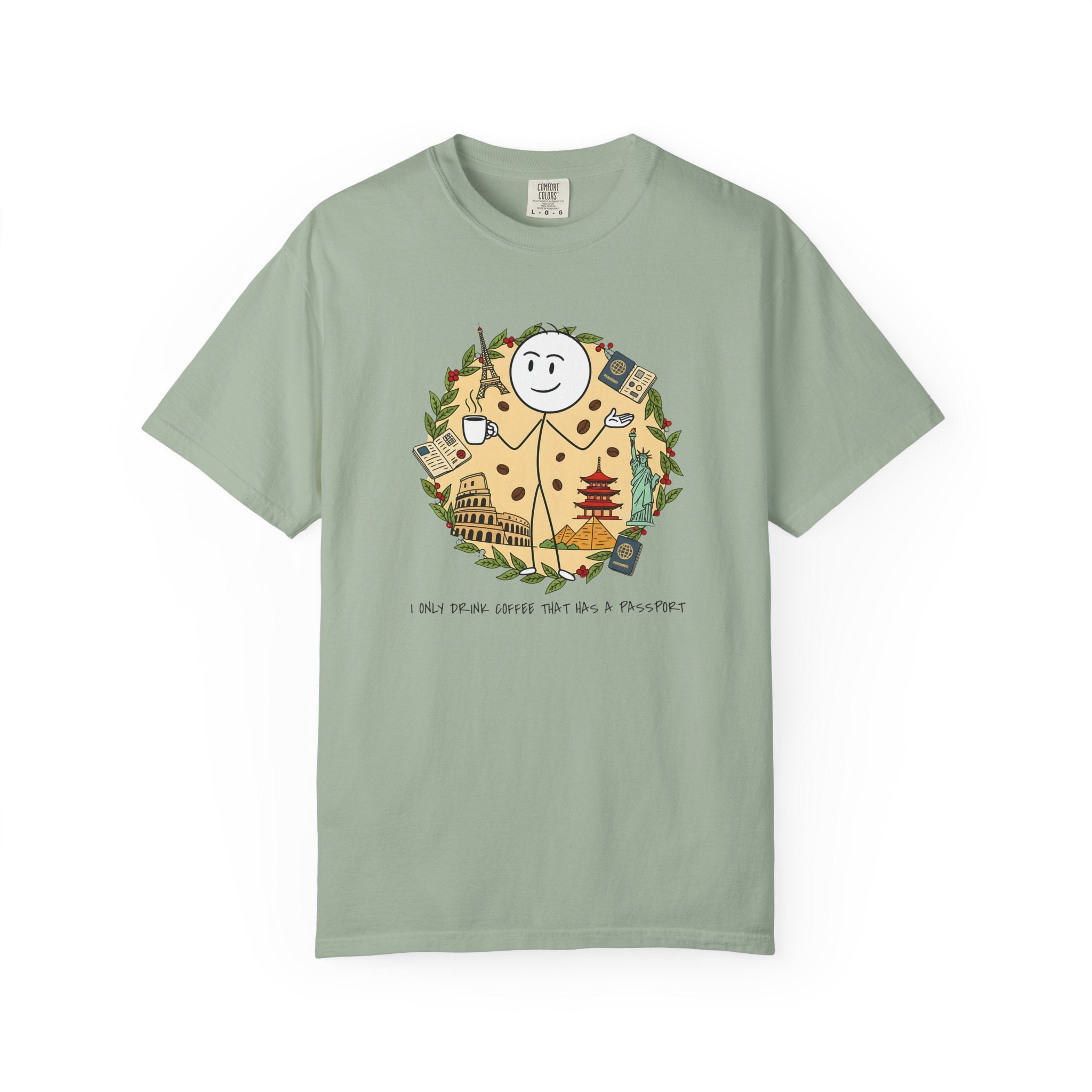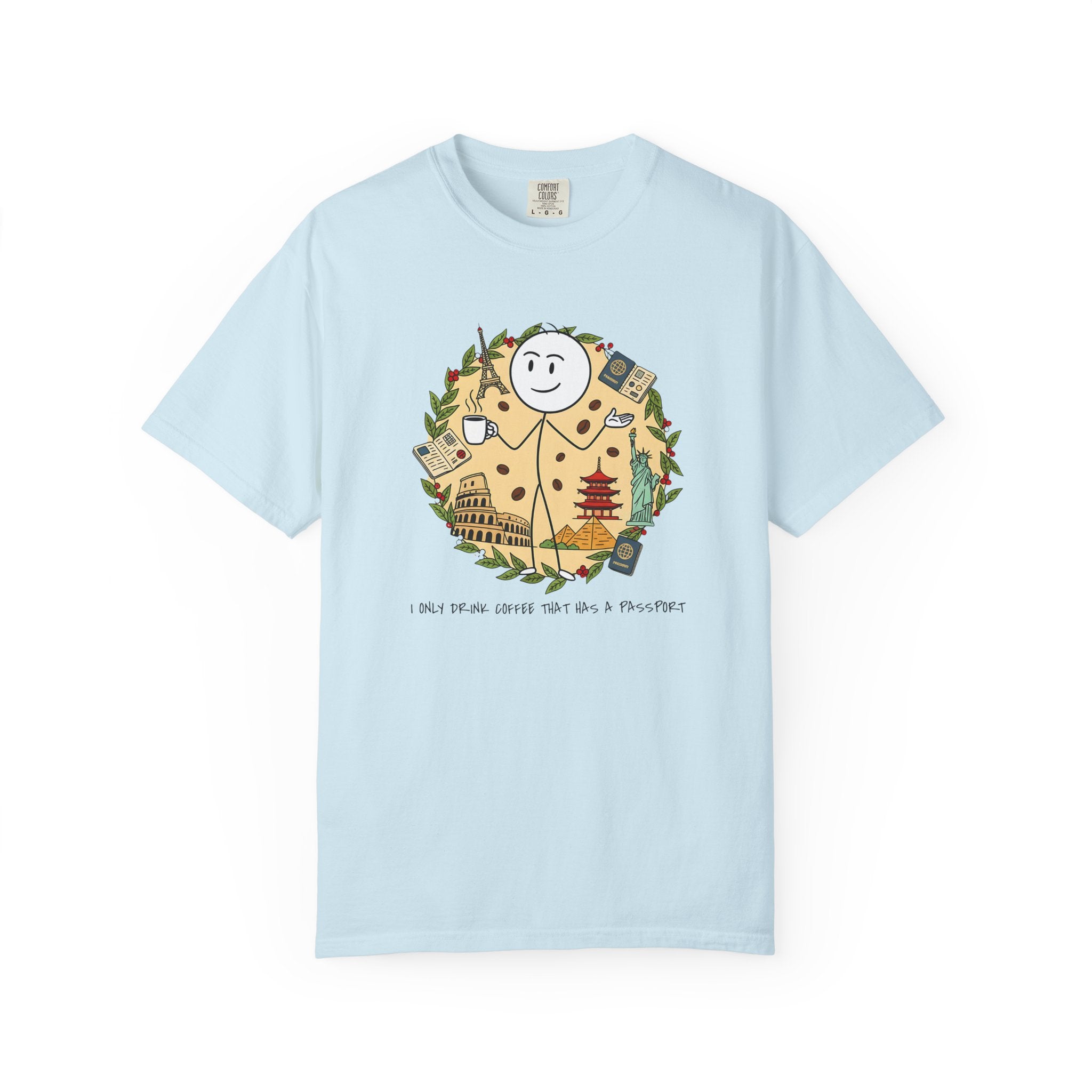 I Only Drink Coffee That Has A Passport T-Shirt - Wanderlust Coffee Lover Tee - Comfort Colors 1717 Aesthetic Traveler Gift