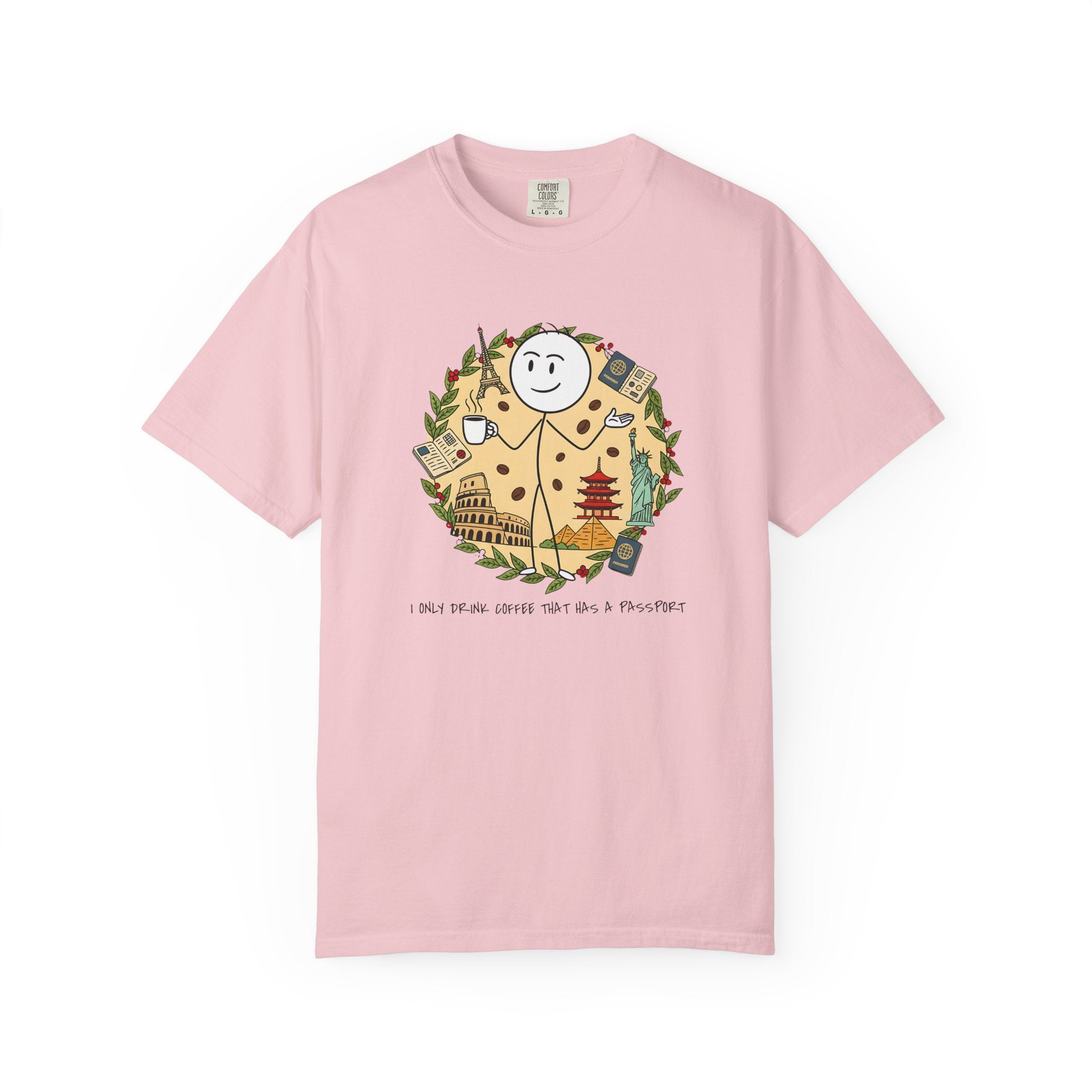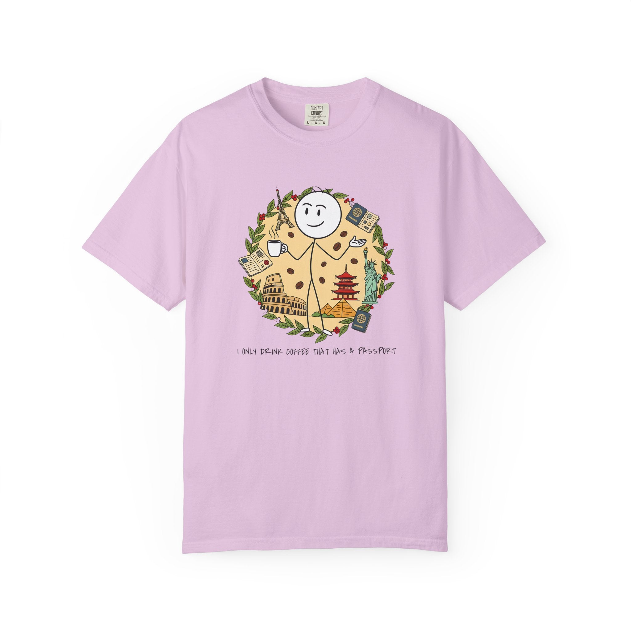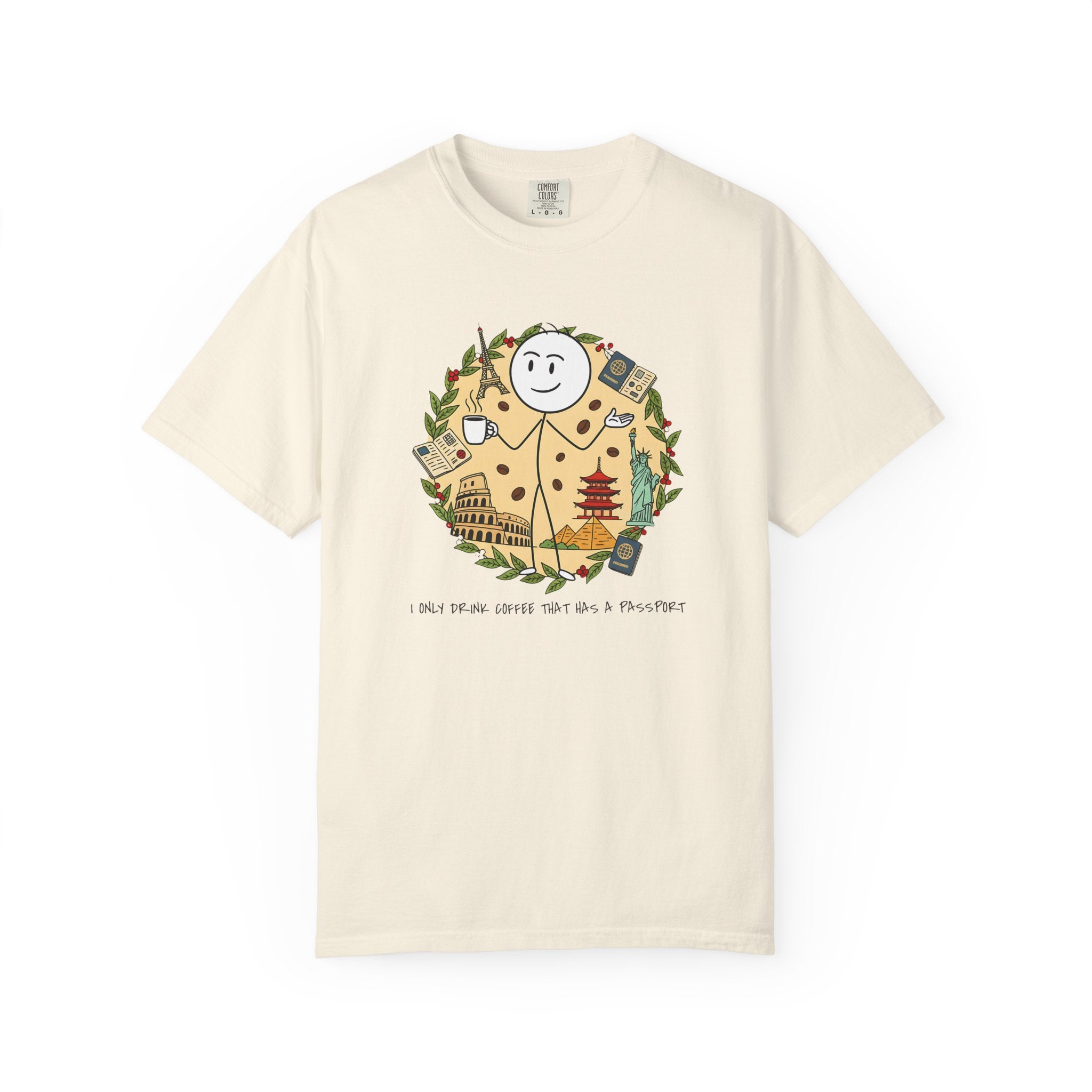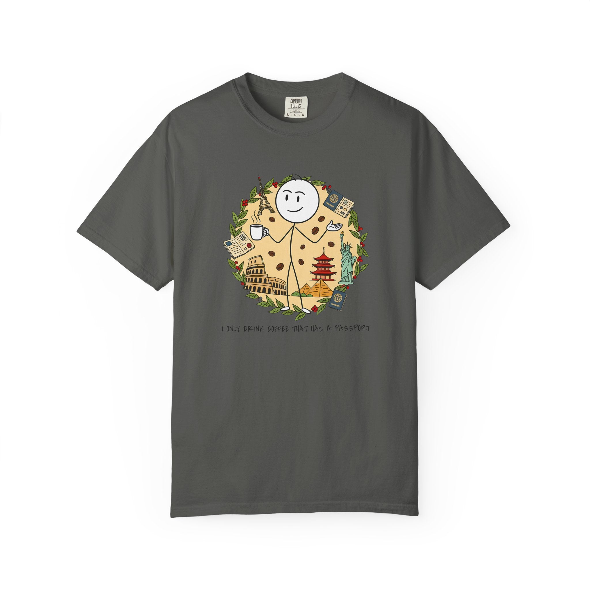 I Only Drink Coffee That Has A Passport T-Shirt - Wanderlust Coffee Lover Tee - Comfort Colors 1717 Aesthetic Traveler Gift