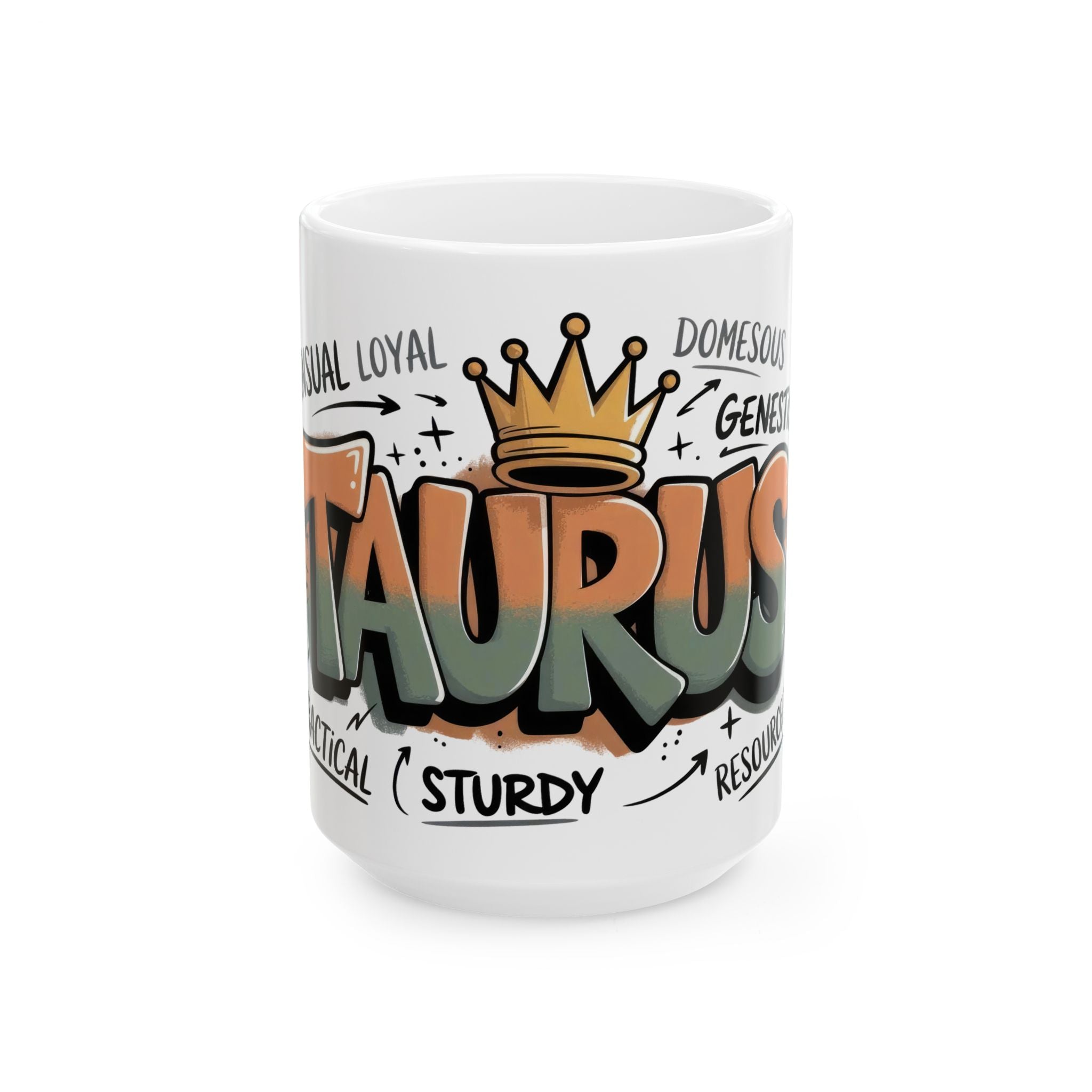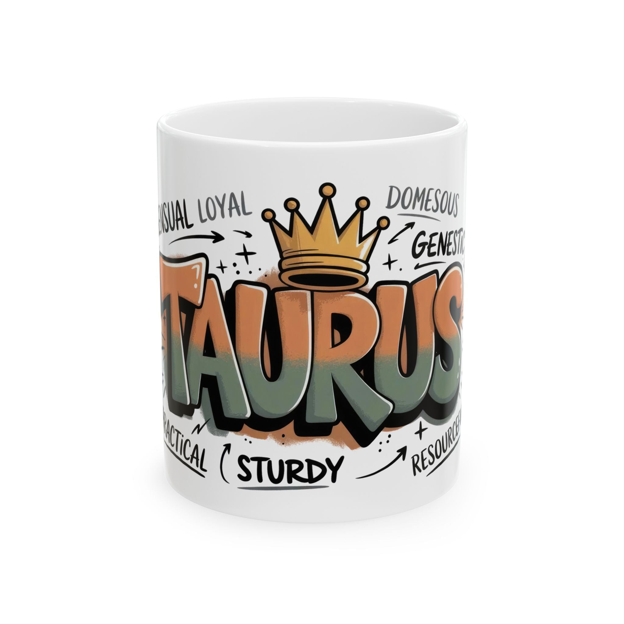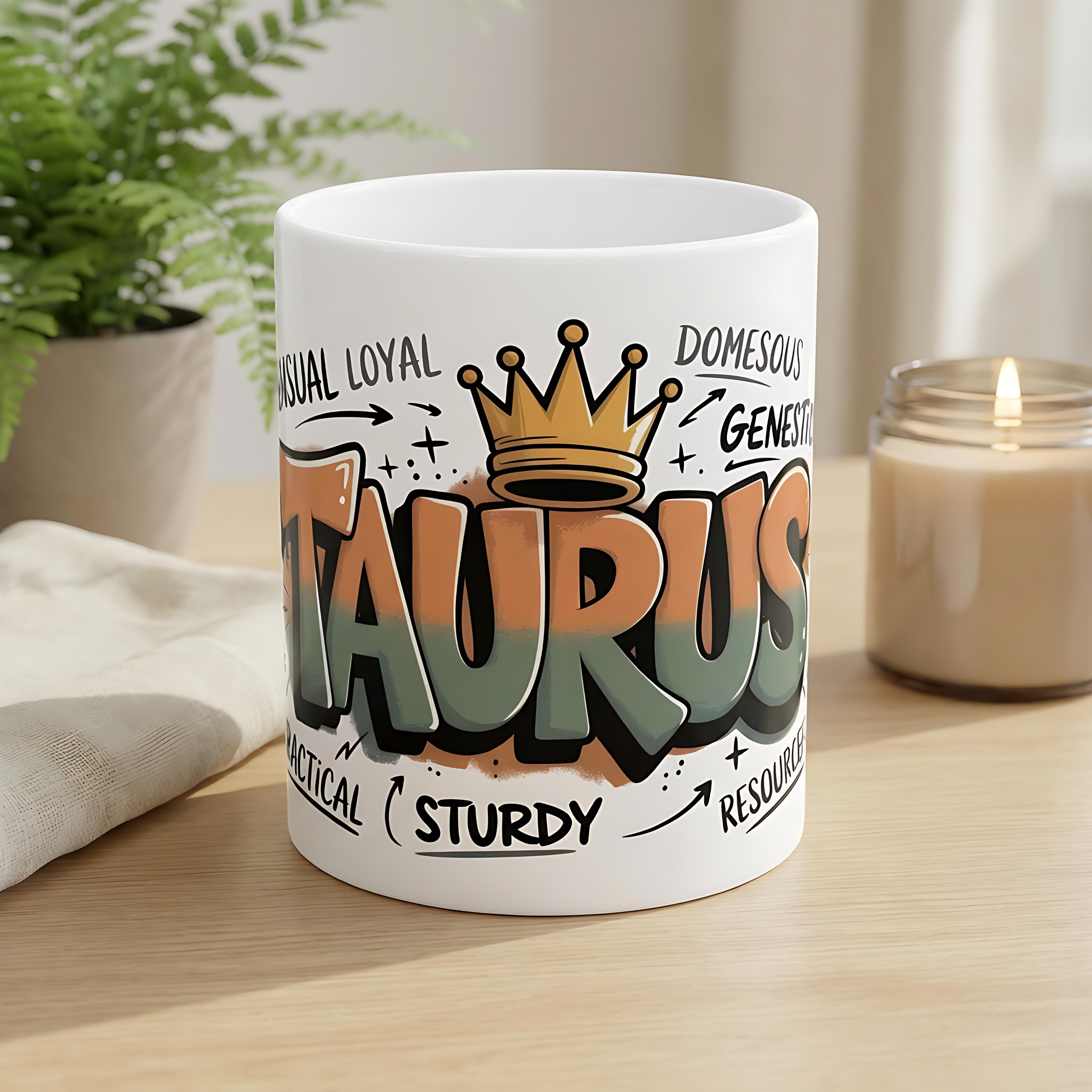 Brevity Brew Taurus Zodiac Ceramic Mug | Graffiti Style Astrology Gift