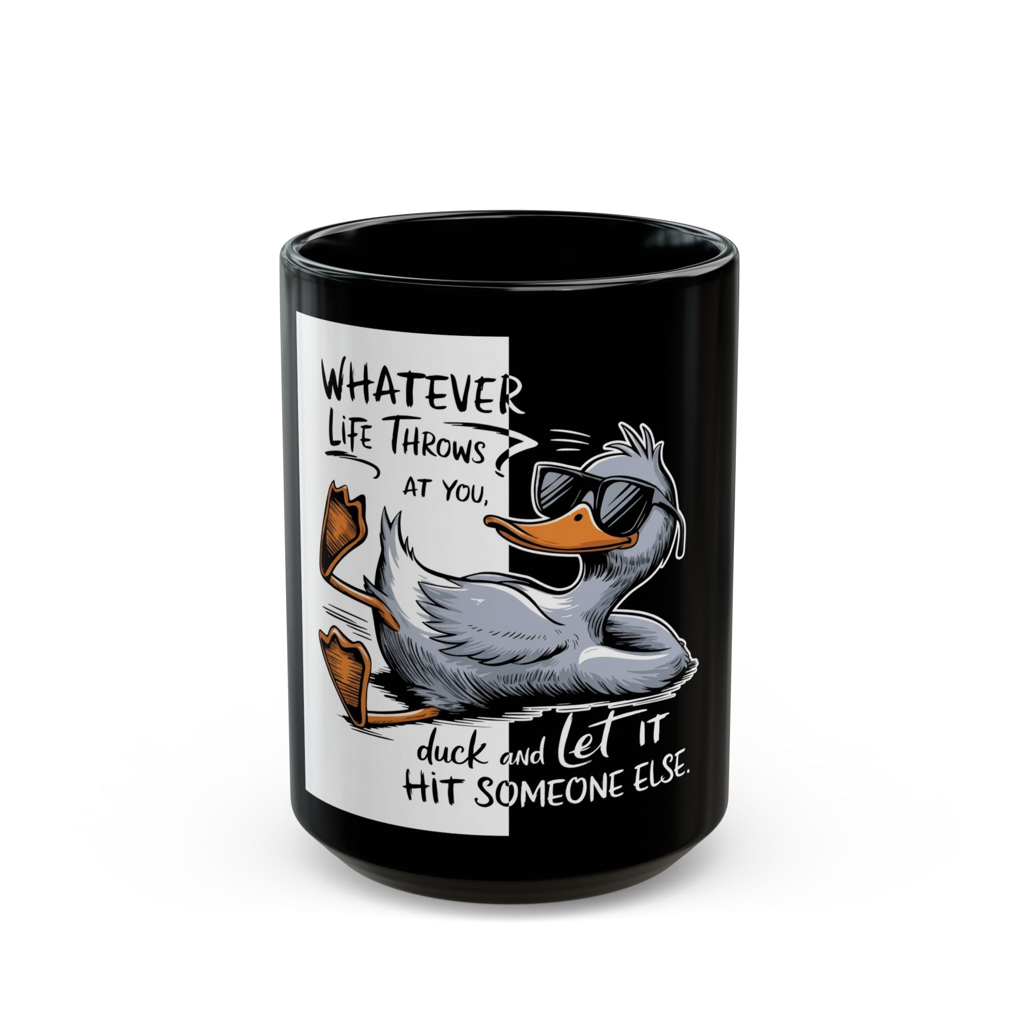 Whatever Life Throws At You Duck And Let It Hit Someone Else Funny Duck Black Coffee Mug 11oz 15oz