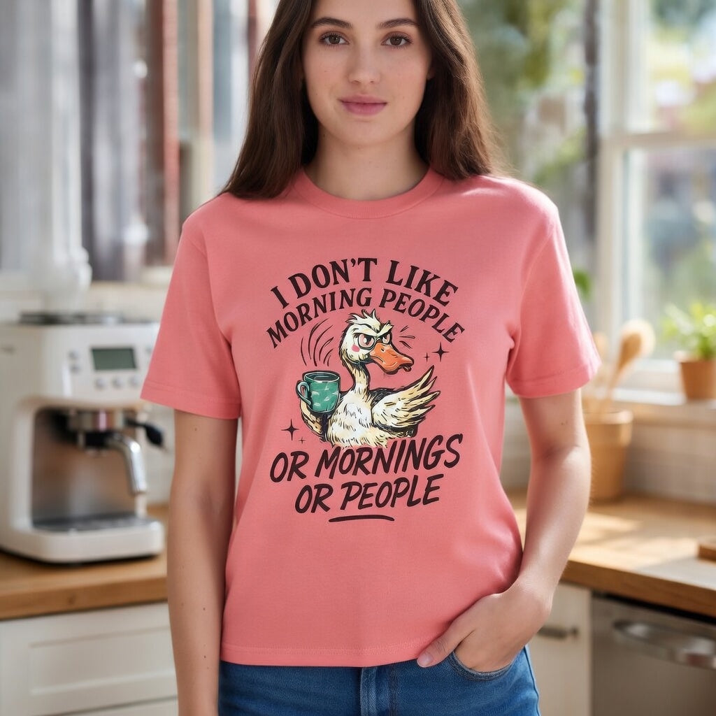 I Don't Like Morning People T-Shirt — Funny Duck Coffee Graphic Tee