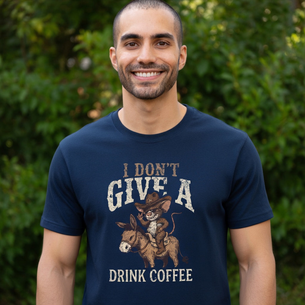 Distressed Print Funny Rat Coffee Tee | Soft Relaxed Fit Unisex Cotton Graphic Shirt