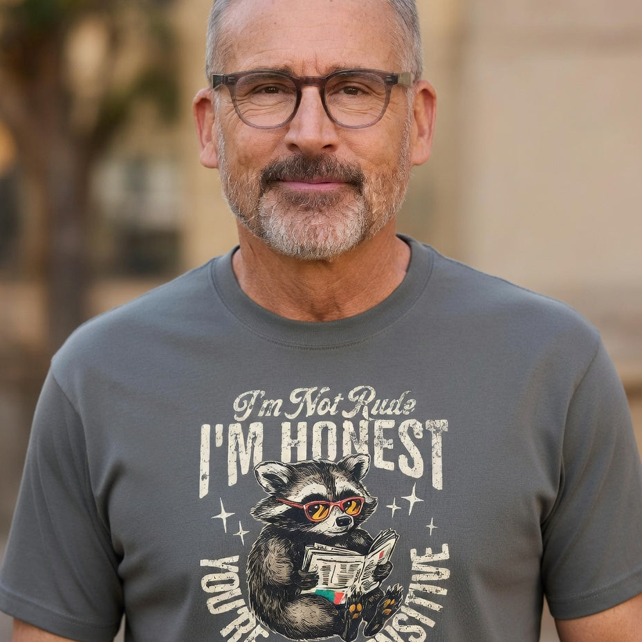 Sustainable materials & ethical productionDistressed Print Funny Raccoon Tee | Soft Relaxed Fit Unisex Cotton Graphic Shirt